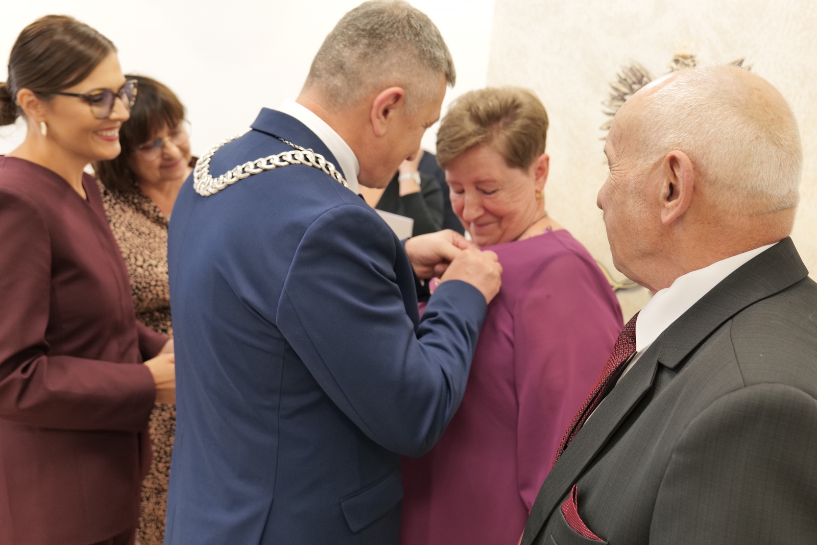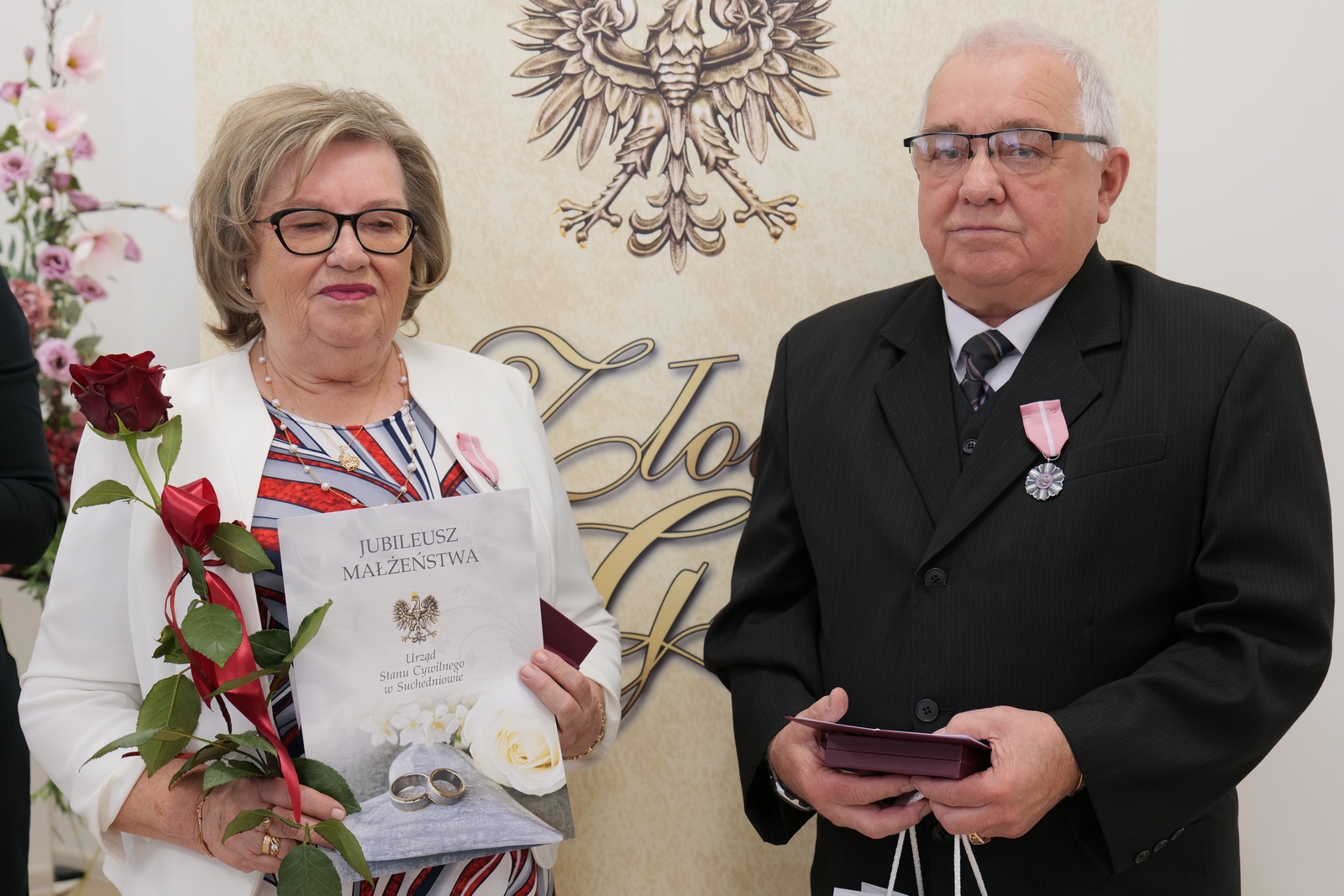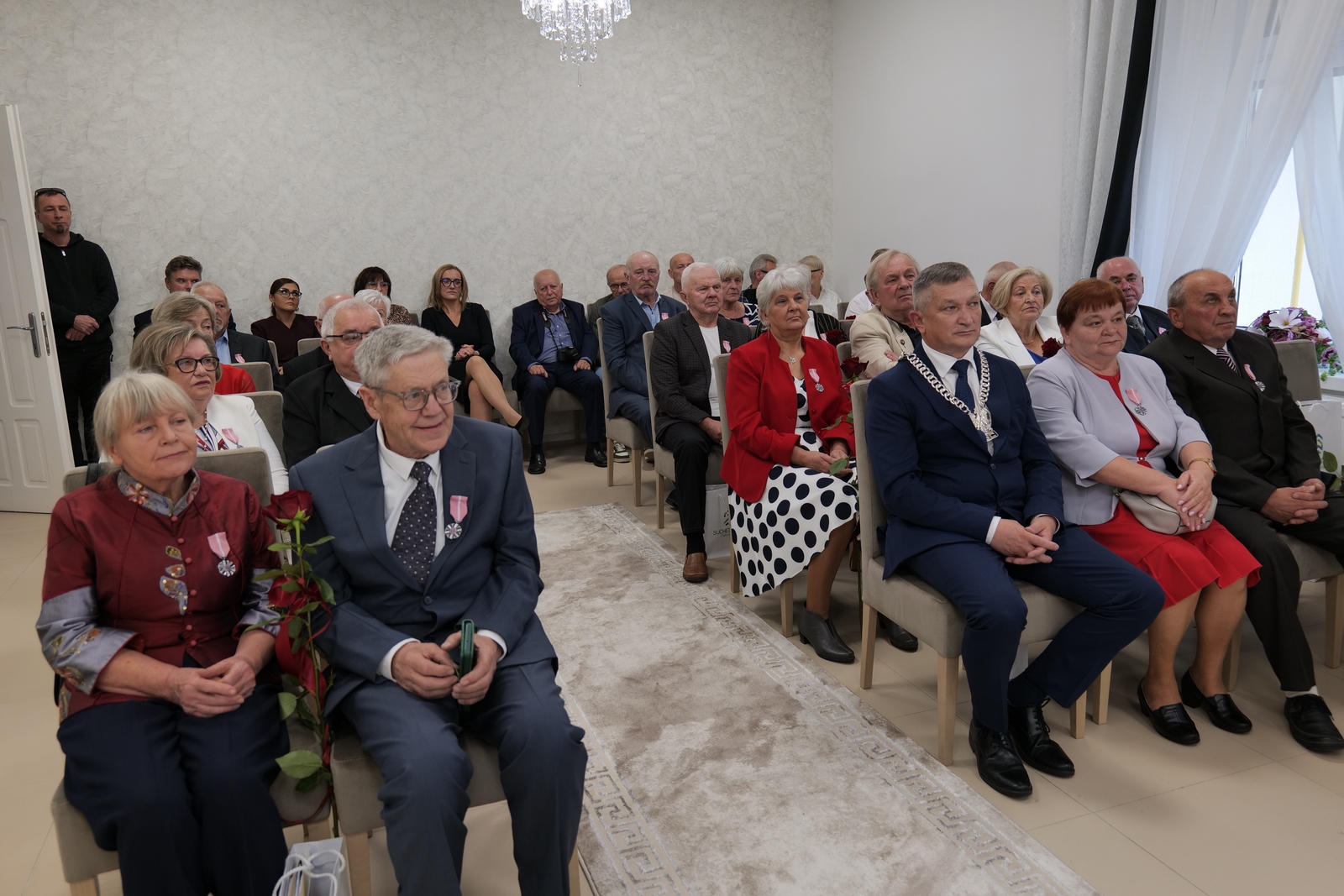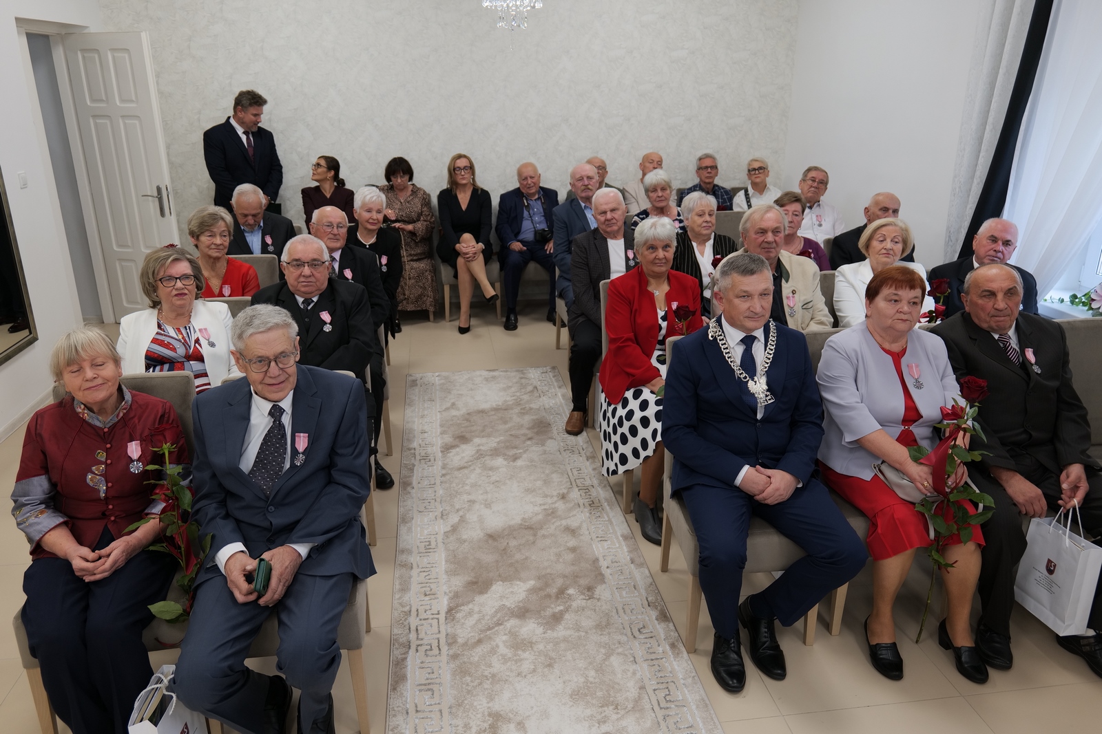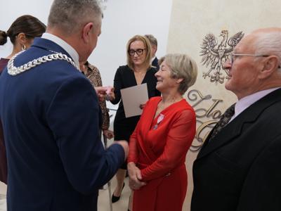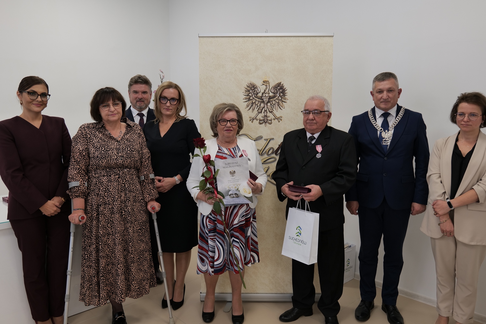 Szesnaście par małżeńskich z naszej gminy świętowało Jubileusz Złotych Godów. Piękna i wyjątkowa uroczystość odbyła się 3 października w Sali ślubów przy ul. Sportowej. Medale „Za długoletnie pożycie małżeńskie” nadane przez Prezydenta RP wręczyli: burmistrz Dariusz Miernik, przewodnicząca rady miejskiej Lidia Frątczak, zastępca burmistrza Agnieszka Jaszczur, kierownik Urzędu Stanu Cywilnego Magdalena Młodawska, jej zastępca Albert Wawrzycki i naczelnik Wydziału Organizacyjnego magistratu Anna Andrzejewska-Korytowska.