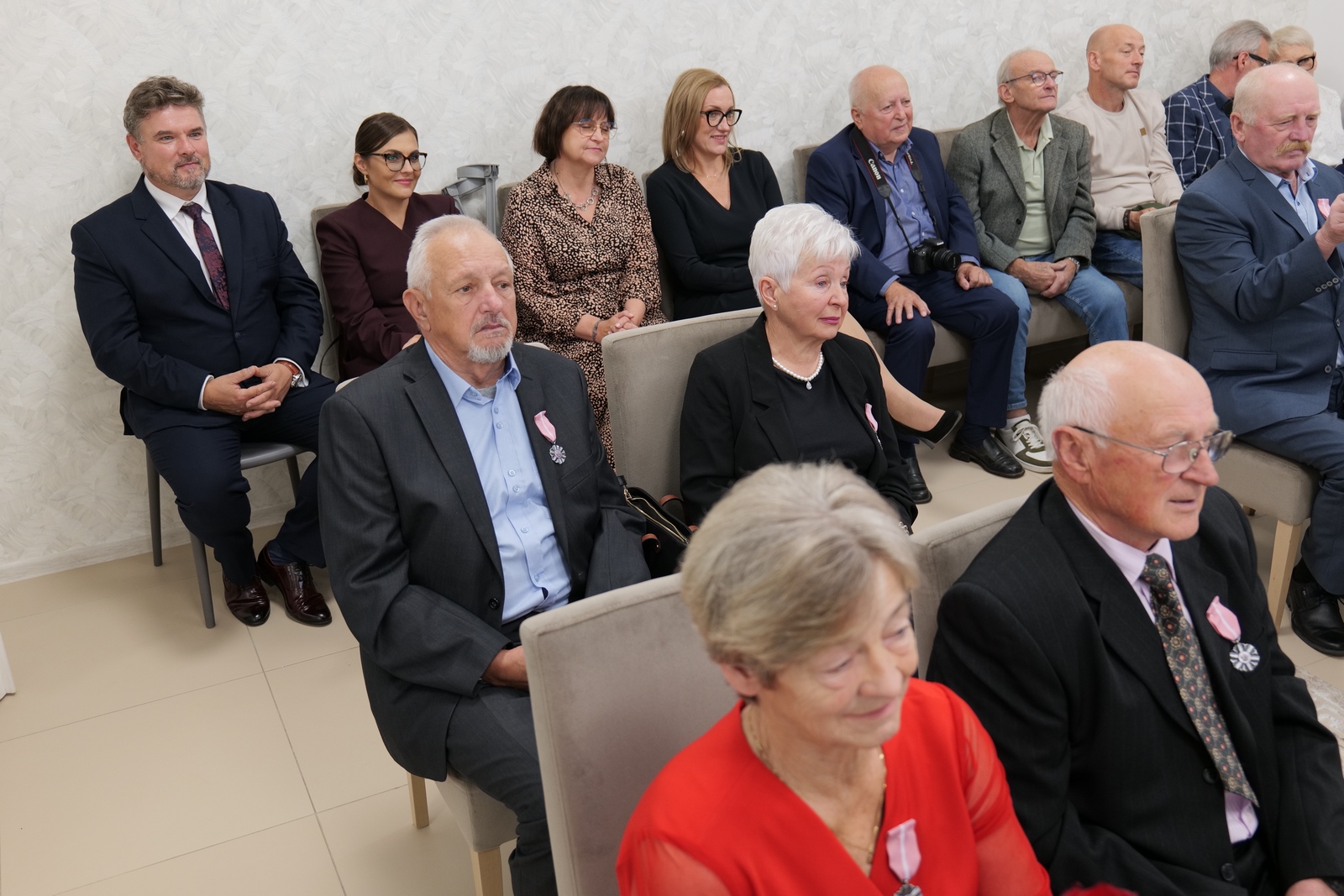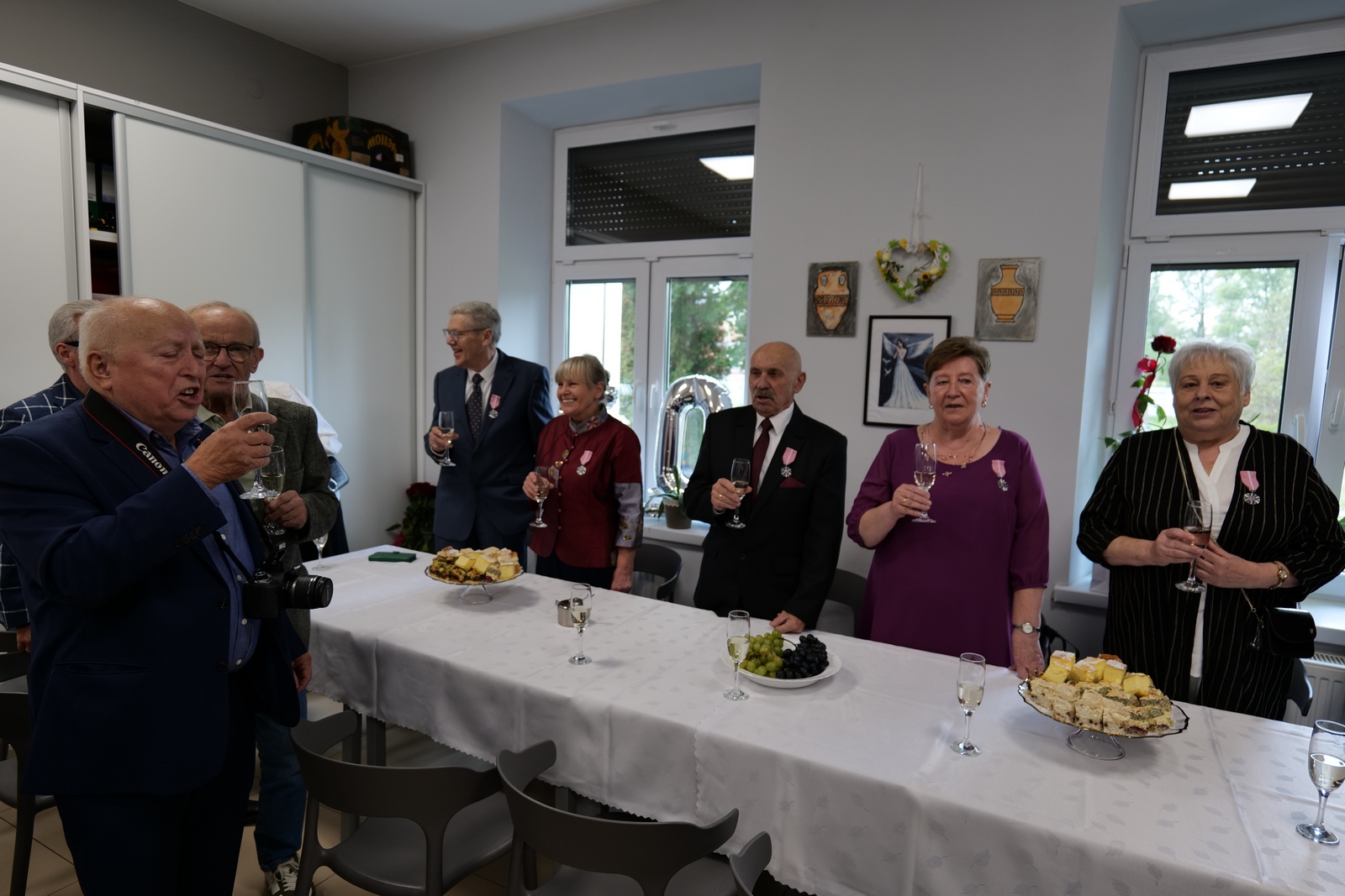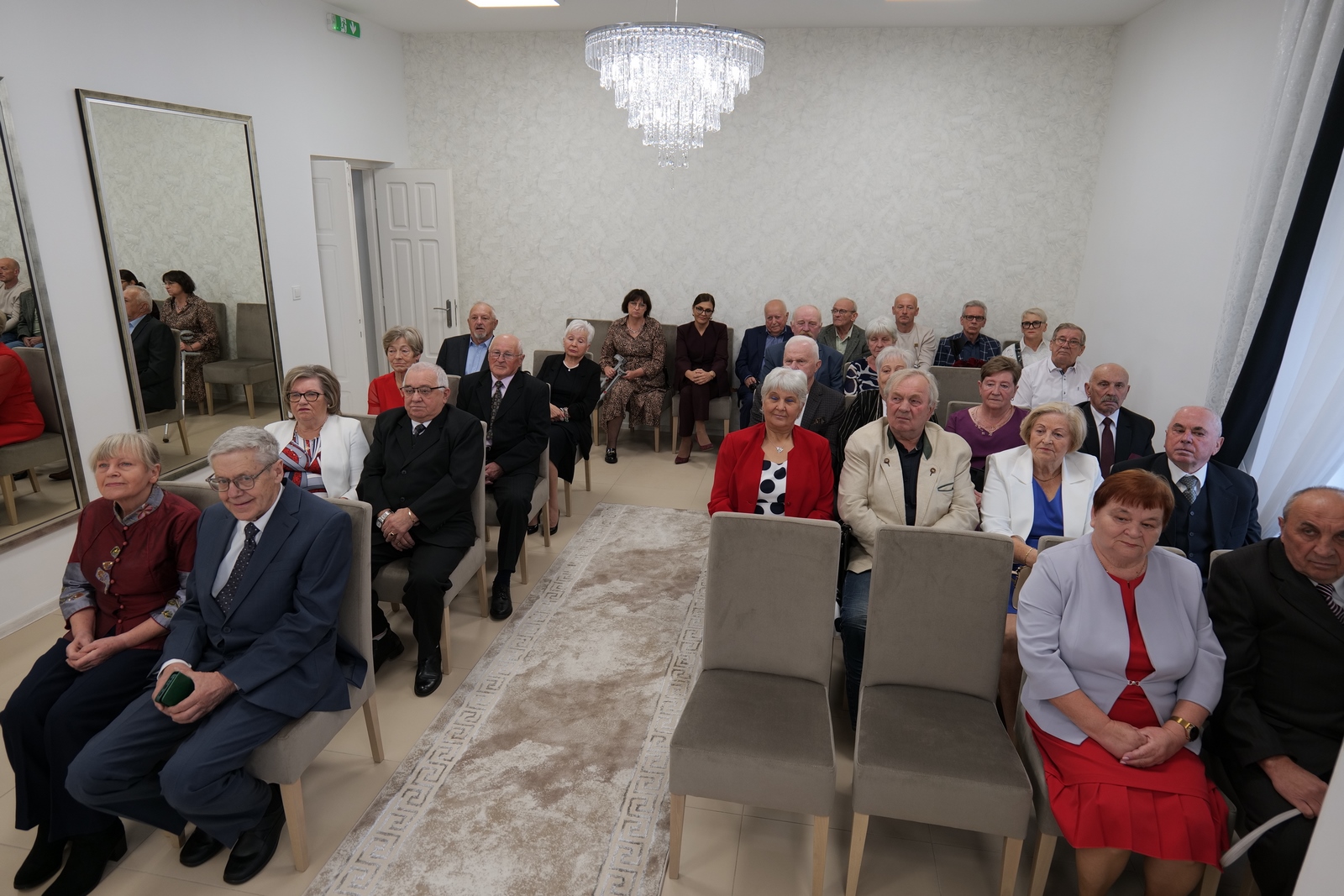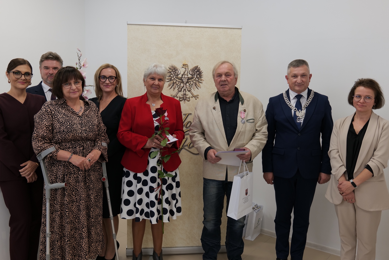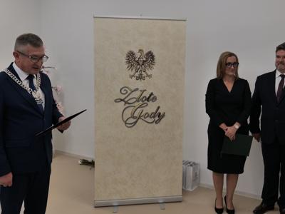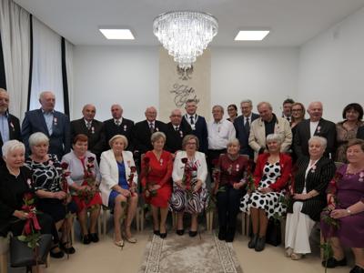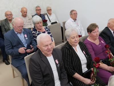 Szesnaście par małżeńskich z naszej gminy świętowało Jubileusz Złotych Godów. Piękna i wyjątkowa uroczystość odbyła się 3 października w Sali ślubów przy ul. Sportowej. Medale „Za długoletnie pożycie małżeńskie” nadane przez Prezydenta RP wręczyli: burmistrz Dariusz Miernik, przewodnicząca rady miejskiej Lidia Frątczak, zastępca burmistrza Agnieszka Jaszczur, kierownik Urzędu Stanu Cywilnego Magdalena Młodawska, jej zastępca Albert Wawrzycki i naczelnik Wydziału Organizacyjnego magistratu Anna Andrzejewska-Korytowska.
