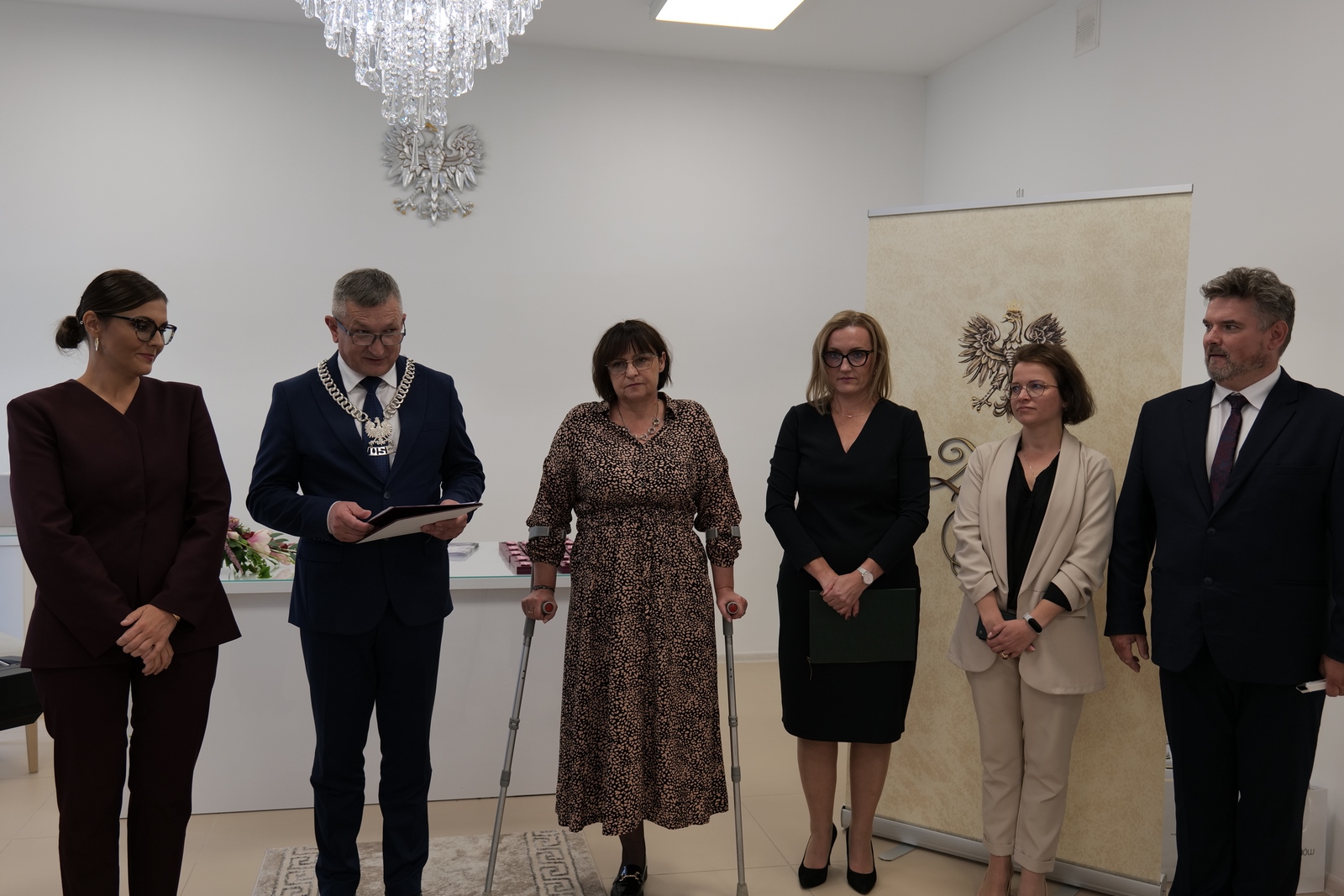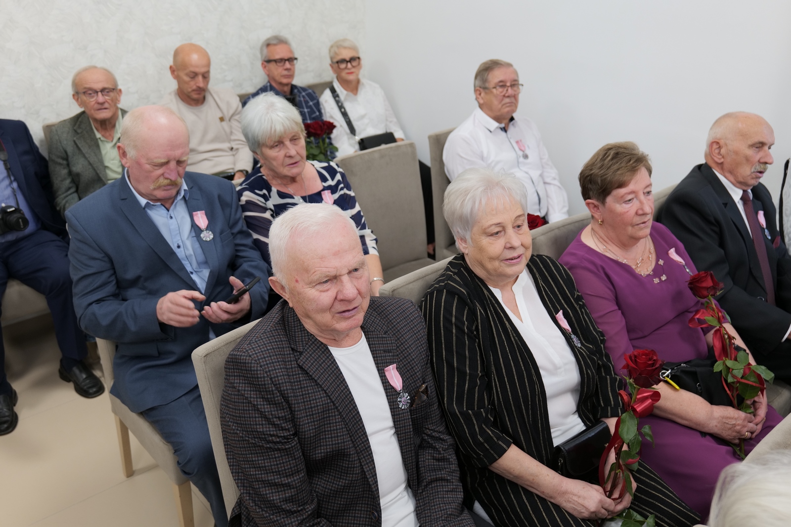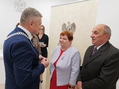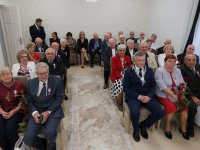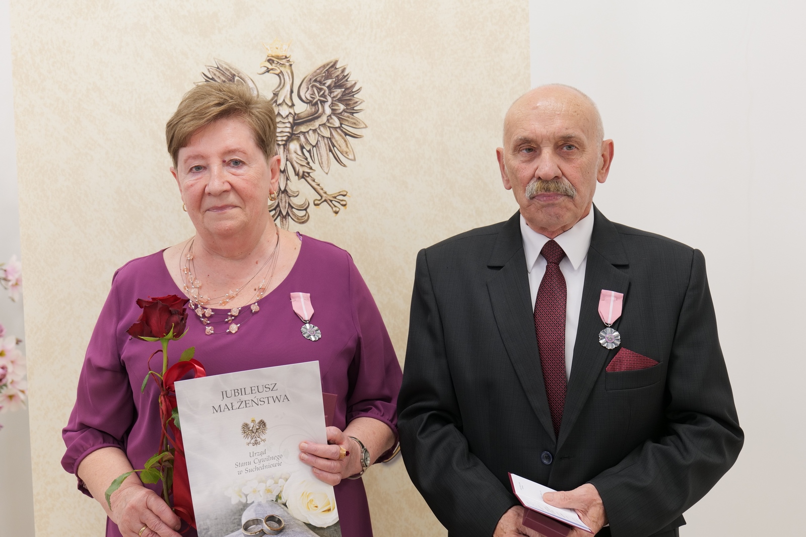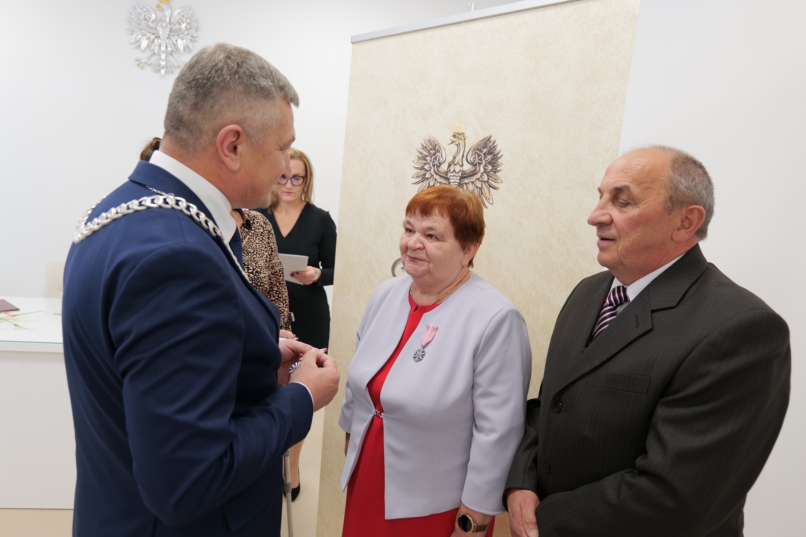 Szesnaście par małżeńskich z naszej gminy świętowało Jubileusz Złotych Godów. Piękna i wyjątkowa uroczystość odbyła się 3 października w Sali ślubów przy ul. Sportowej. Medale „Za długoletnie pożycie małżeńskie” nadane przez Prezydenta RP wręczyli: burmistrz Dariusz Miernik, przewodnicząca rady miejskiej Lidia Frątczak, zastępca burmistrza Agnieszka Jaszczur, kierownik Urzędu Stanu Cywilnego Magdalena Młodawska, jej zastępca Albert Wawrzycki i naczelnik Wydziału Organizacyjnego magistratu Anna Andrzejewska-Korytowska.