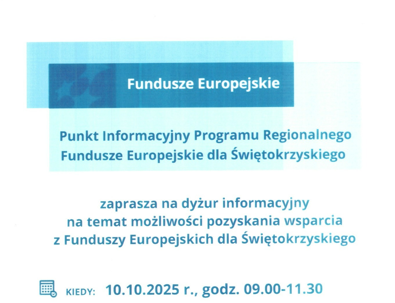 Dyżur informacyjny na temat możliwości pozyskania wsparcia z Funduszy Europejskich dla Świętokrzyskiego