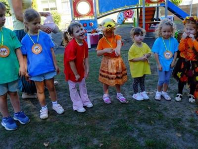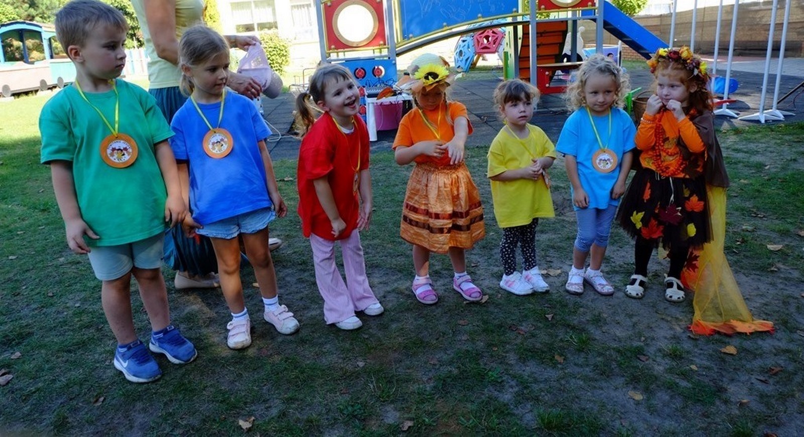 Na zakończenie przedstawiciele poszczególnych grup otrzymali od Pani Jesieni pamiątkowe medale. Po tak licznych atrakcjach na uczestników zabaw czekały pyszne ziemniaczki oraz kiełbaski. Jesień została oficjalnie powitana! Dziękujemy Rodzicom dzieci z grupy Tygryski za zaangażowanie i przygotowanie pięknych jesiennych kapeluszy.
