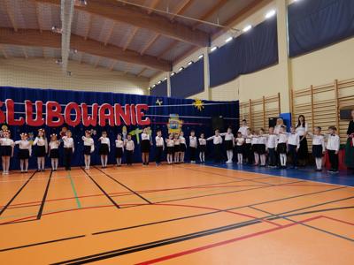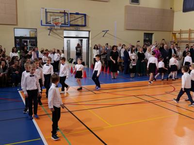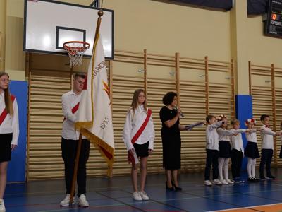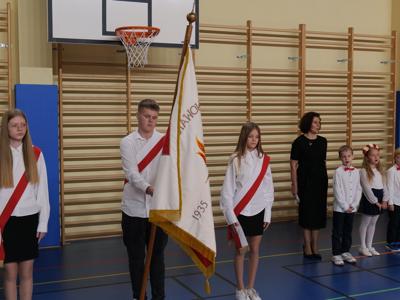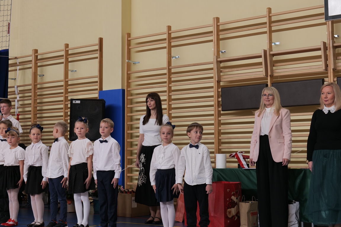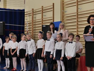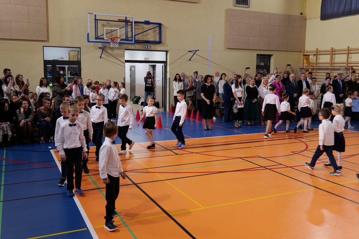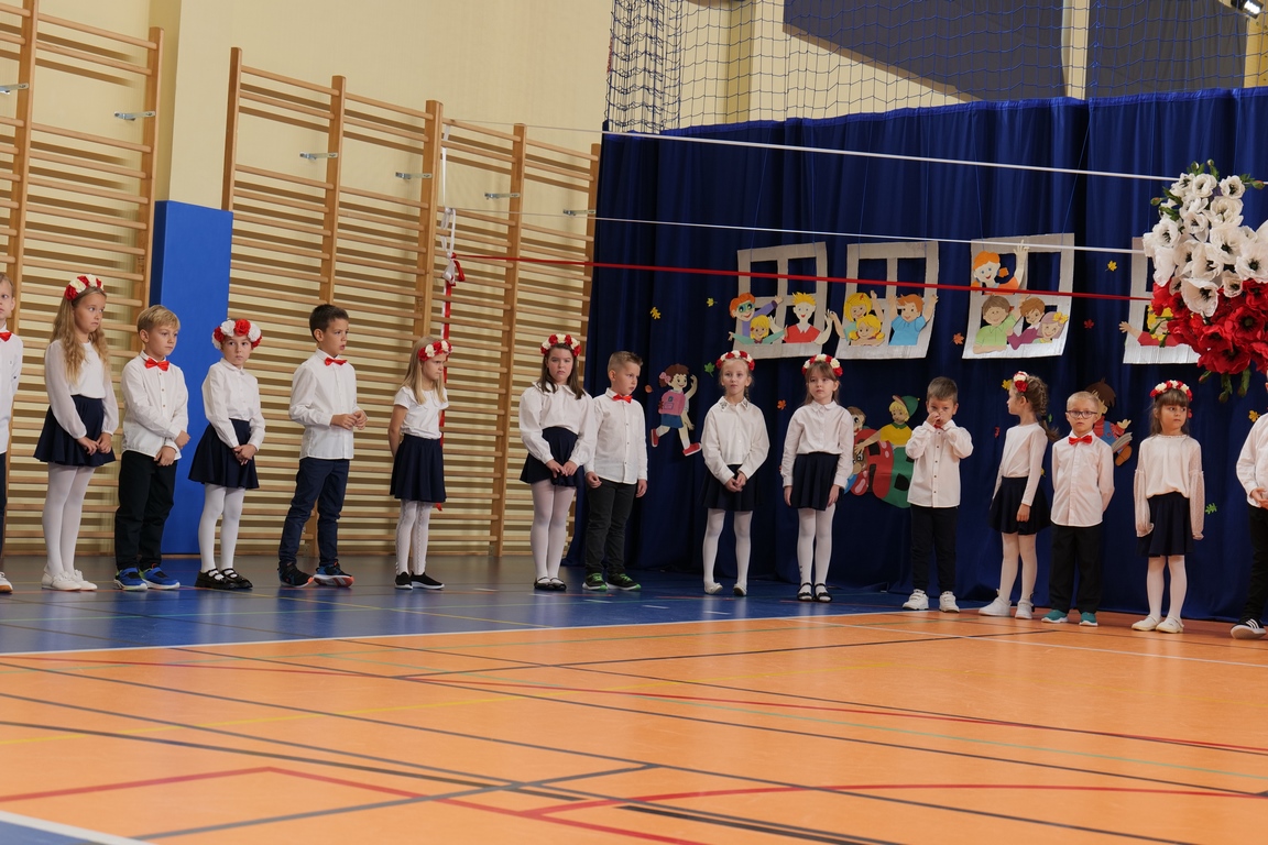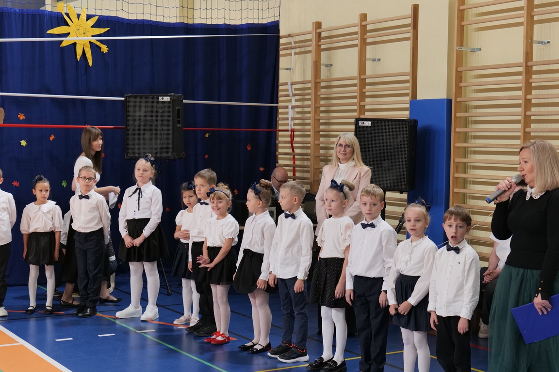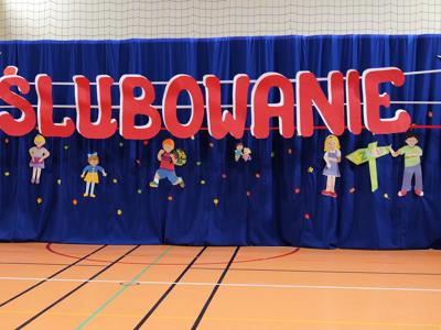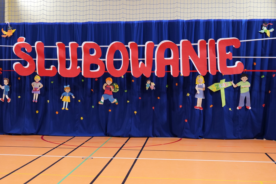 Po wprowadzeniu pocztu sztandarowego i odśpiewaniu „Mazurka Dąbrowskiego” uczniowie złożyli uroczyste ślubowanie i przez dyrektor szkoły zostali pasowani na ucznia. Otrzymali też legitymacje szkolne oraz mnóstwo życzeń i prezentów od gości. W imieniu burmistrza Dariusz Miernika, życzenia przekazała jego zastępczyni Agnieszka Jaszczur.