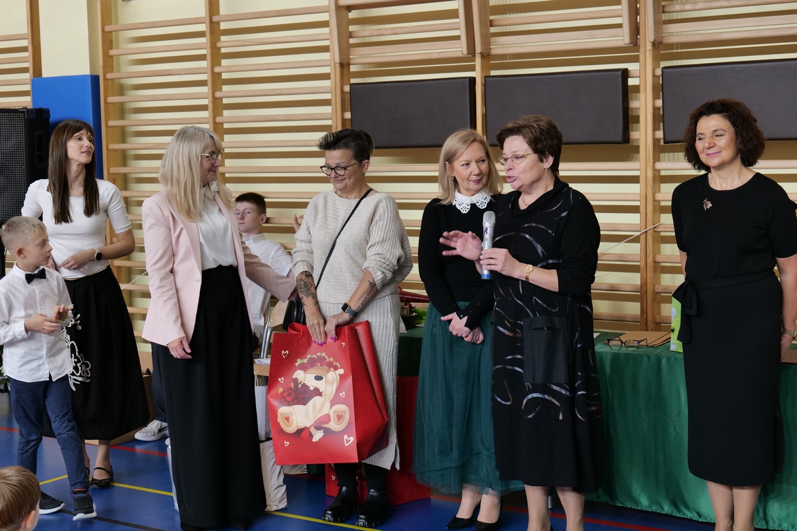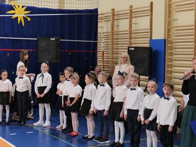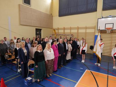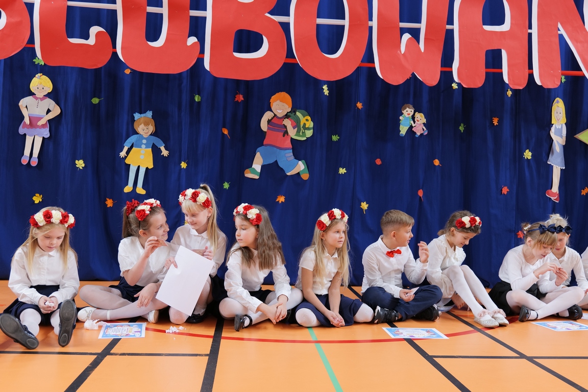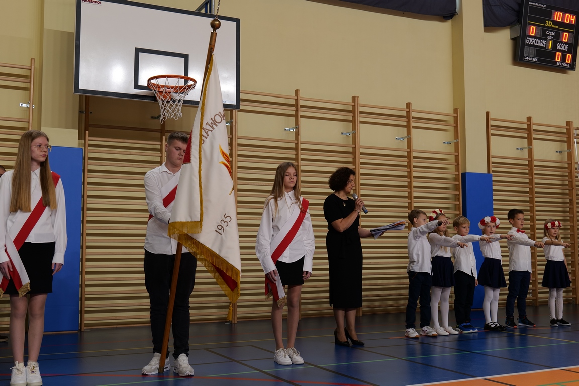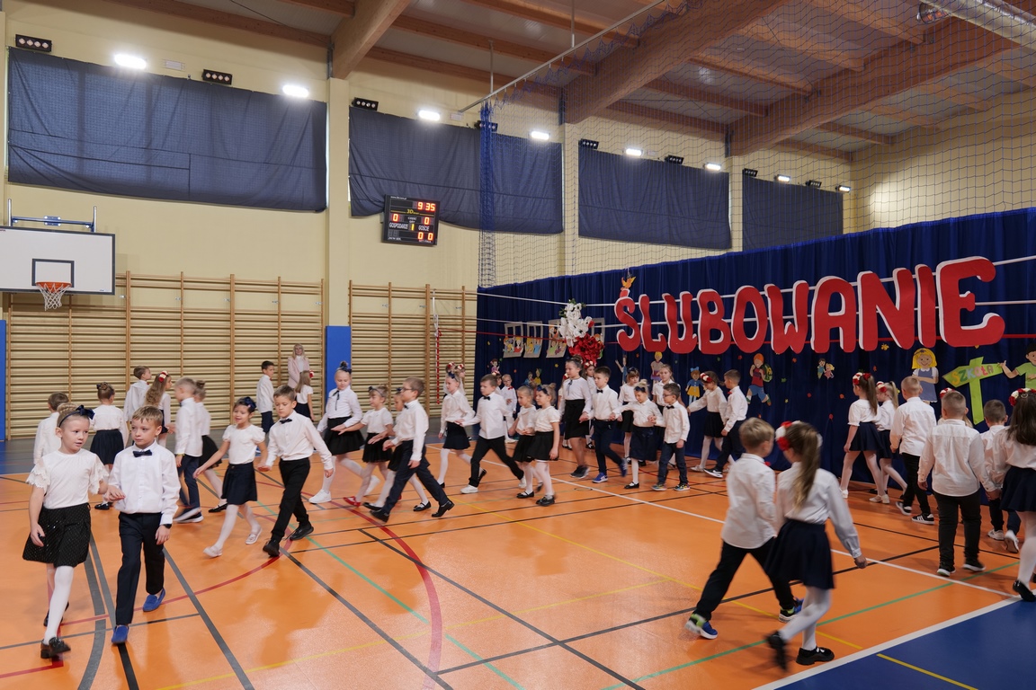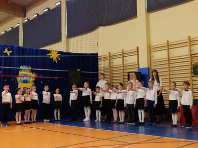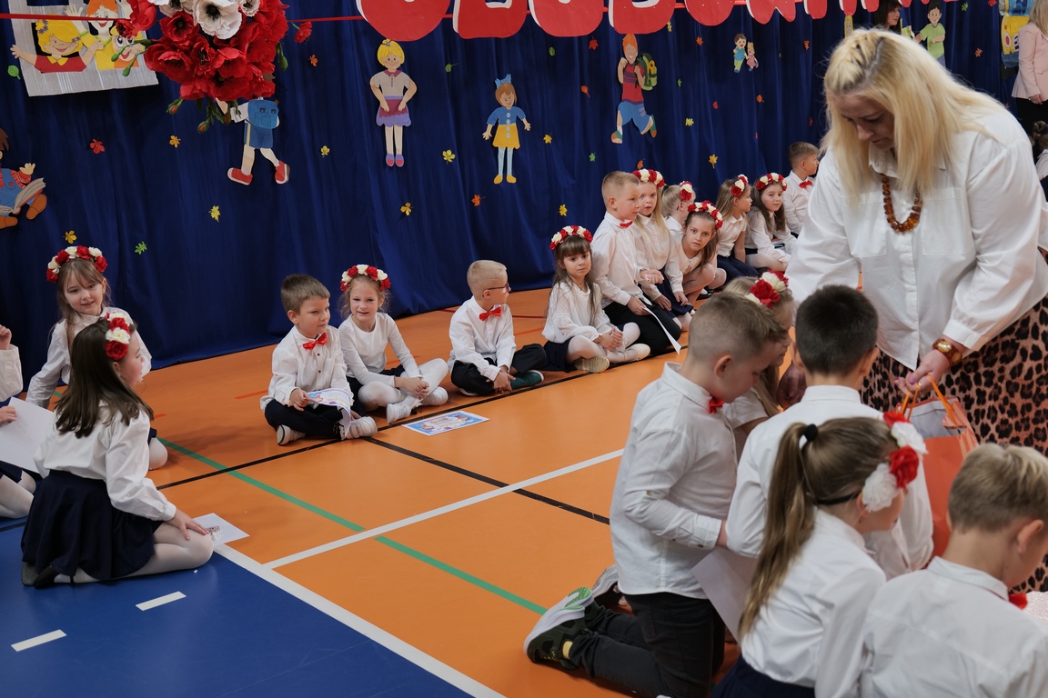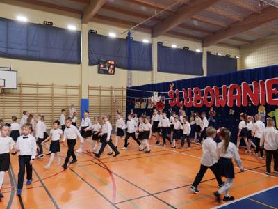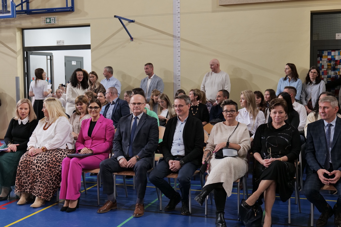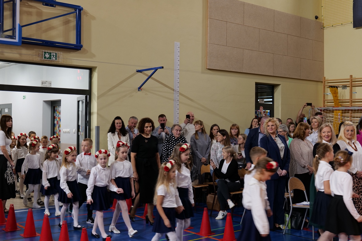 Po wprowadzeniu pocztu sztandarowego i odśpiewaniu „Mazurka Dąbrowskiego” uczniowie złożyli uroczyste ślubowanie i przez dyrektor szkoły zostali pasowani na ucznia. Otrzymali też legitymacje szkolne oraz mnóstwo życzeń i prezentów od gości. W imieniu burmistrza Dariusz Miernika, życzenia przekazała jego zastępczyni Agnieszka Jaszczur.