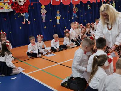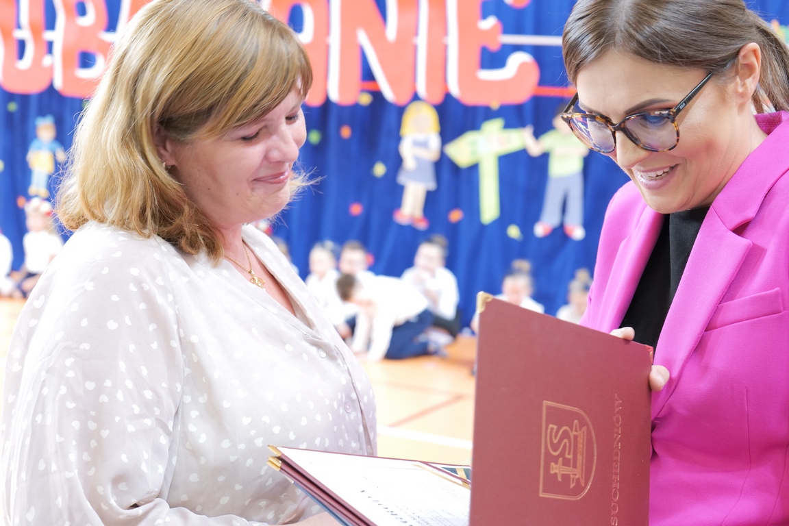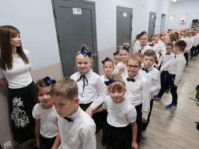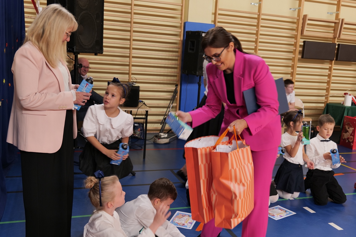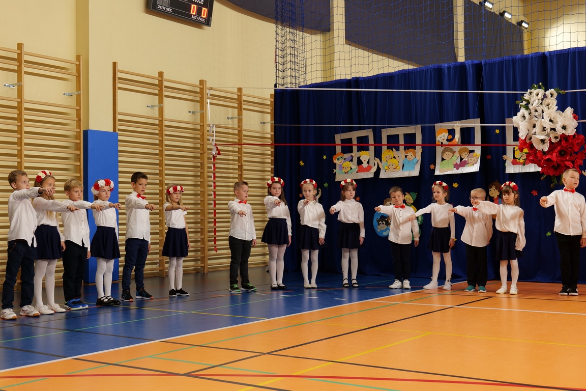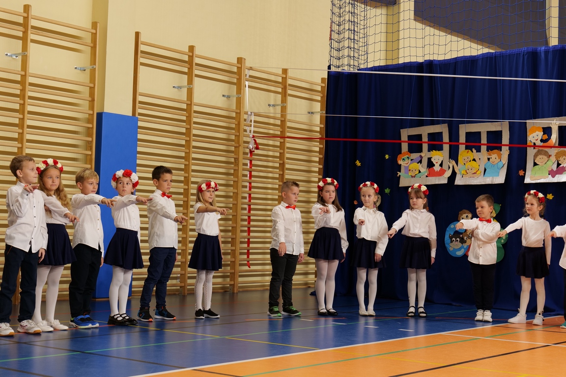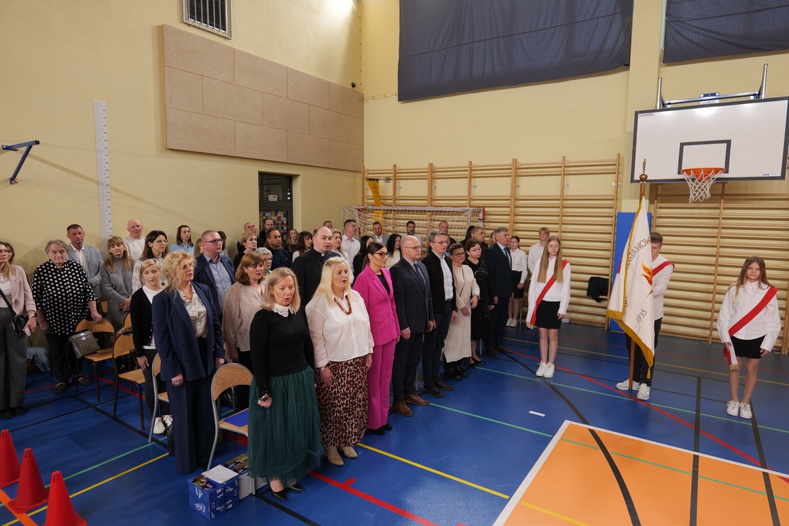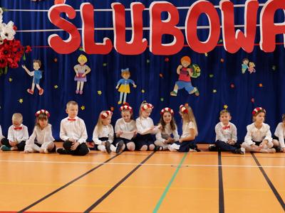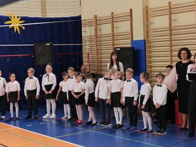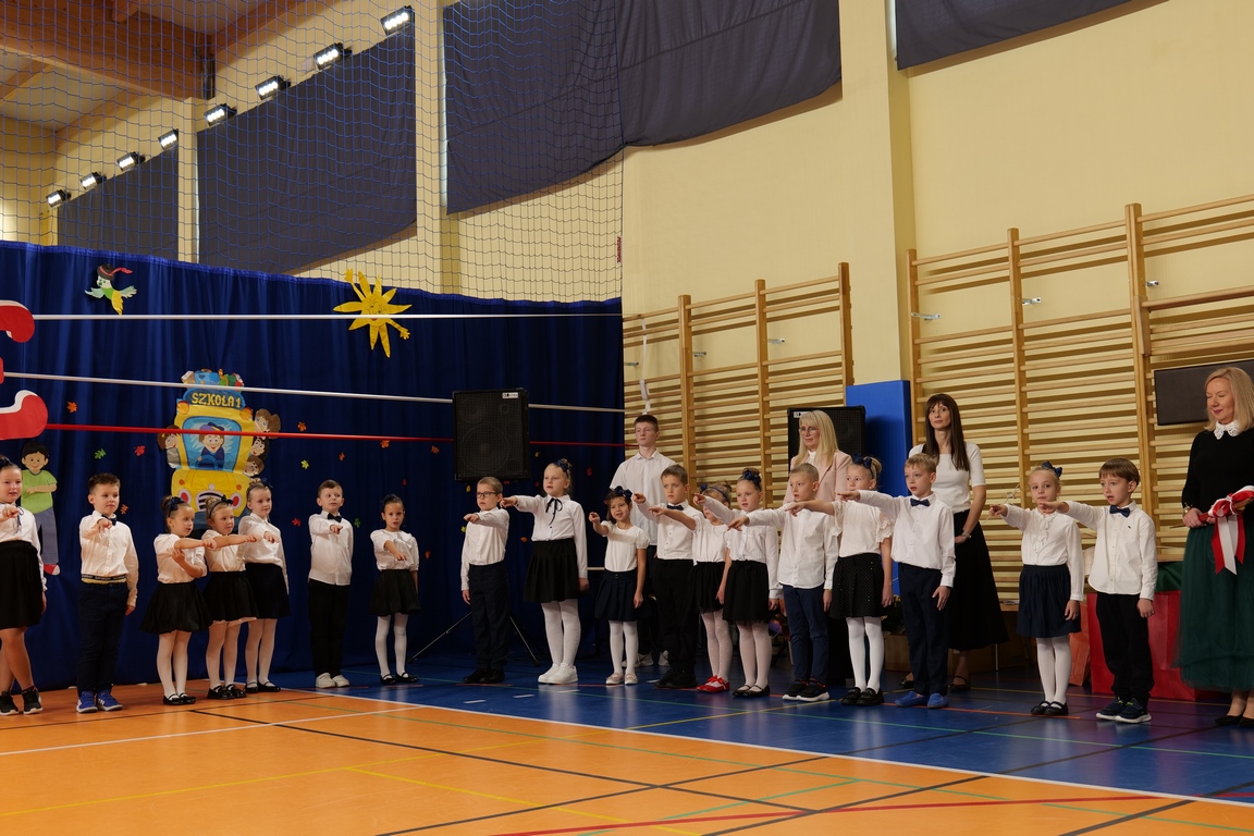 Po wprowadzeniu pocztu sztandarowego i odśpiewaniu „Mazurka Dąbrowskiego” uczniowie złożyli uroczyste ślubowanie i przez dyrektor szkoły zostali pasowani na ucznia. Otrzymali też legitymacje szkolne oraz mnóstwo życzeń i prezentów od gości. W imieniu burmistrza Dariusz Miernika, życzenia przekazała jego zastępczyni Agnieszka Jaszczur.