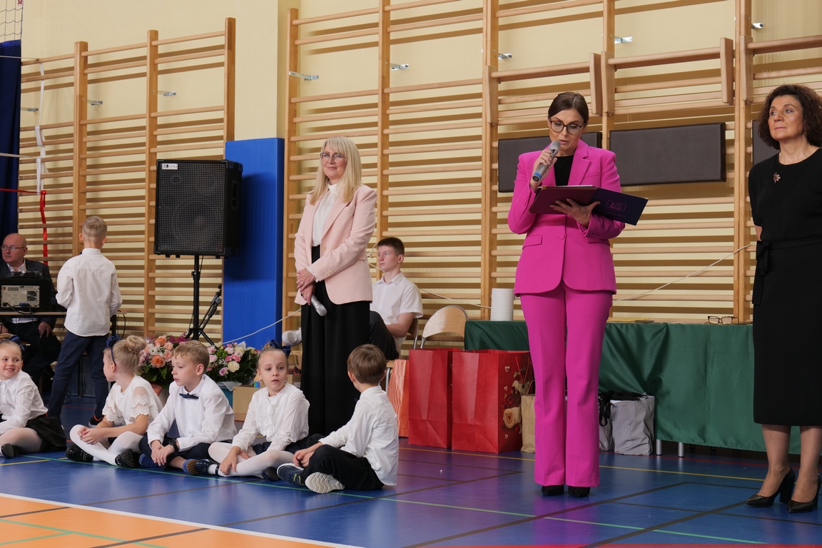 Zabierając na początek głos dyrektor szkoły Ewelina Zielonka powiedziała: - Obiecujemy wam pomoc w odnajdywaniu waszych talentów, pomożemy odnosić sukcesy, ale udzielimy też pomocy, gdy będzie wam trudno. Rodzicom gratuluję wspaniałych młodych ludzi i dziękujemy wam za zaufanie dla nas. Ich sukcesy, będą waszymi sukcesami, a my postaramy się nie zawieść waszych oczekiwań.