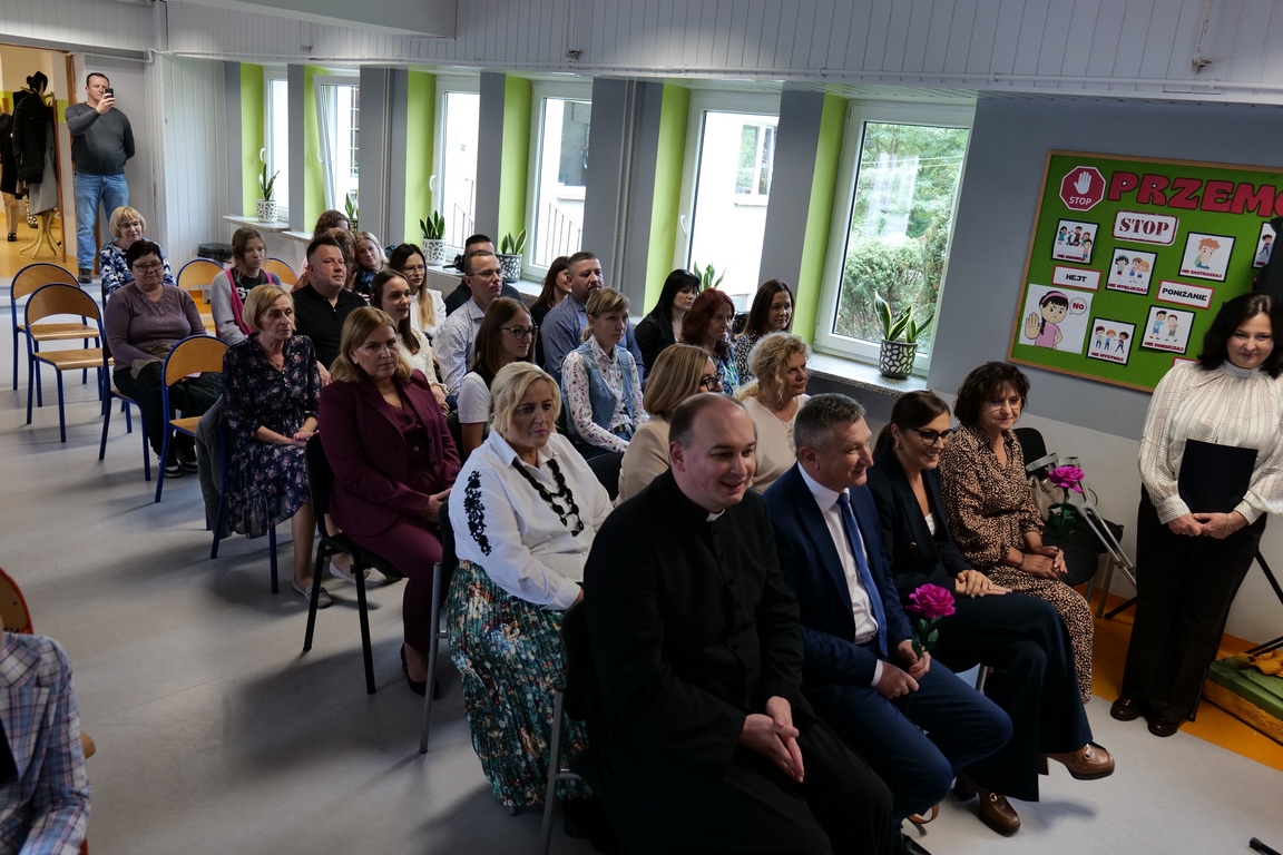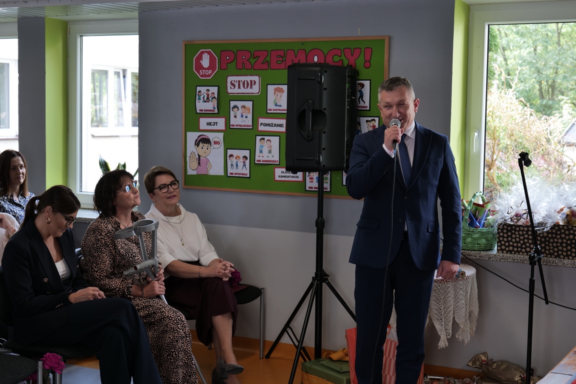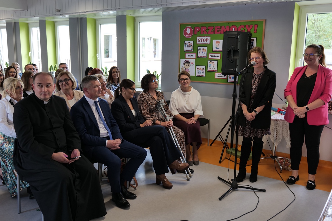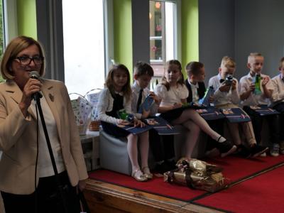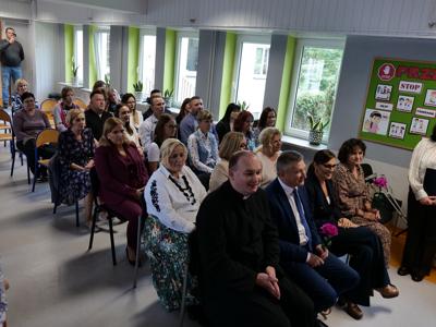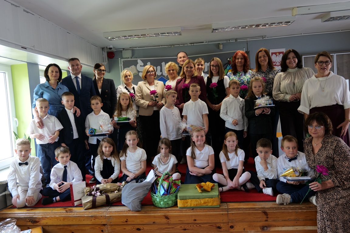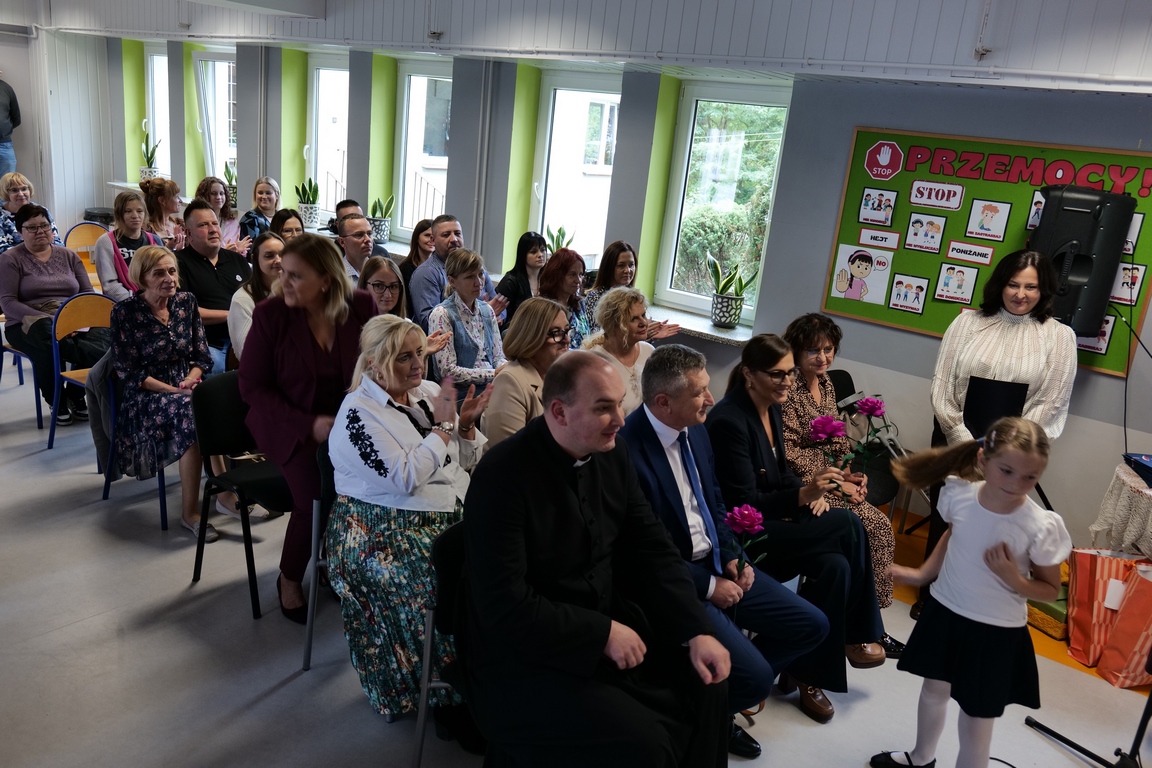 Przybyłych na uroczystość powitały dyrektor szkoły Renata Wikło i jej zastępczyni Magdalena Przygoda. Wśród gości byli: burmistrz Dariusz Miernik, przewodnicząca rady miejskiej Lidia Frątczak, ks. proboszcz Dariusz Pląsek, zastępca przewodniczącej Anna Salwa, zastępca burmistrza Agnieszka Jaszczur, inspektor ds. oświaty Beata Kaszuba, prezes Banku Spółdzielczego Agnieszka Fąfara-Markiewicz, dyrektor MGBP Małgorzata Wiśniewska, prezes ZNP Małgorzata Opala i zastępca przewodniczącego rady rodziców Paulina Duda.