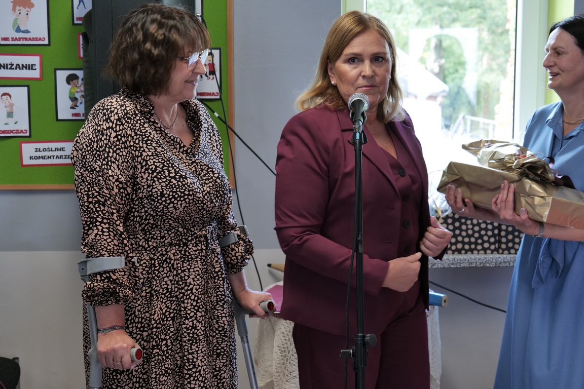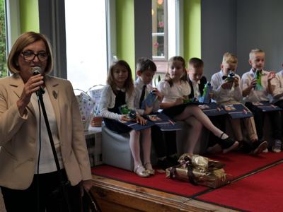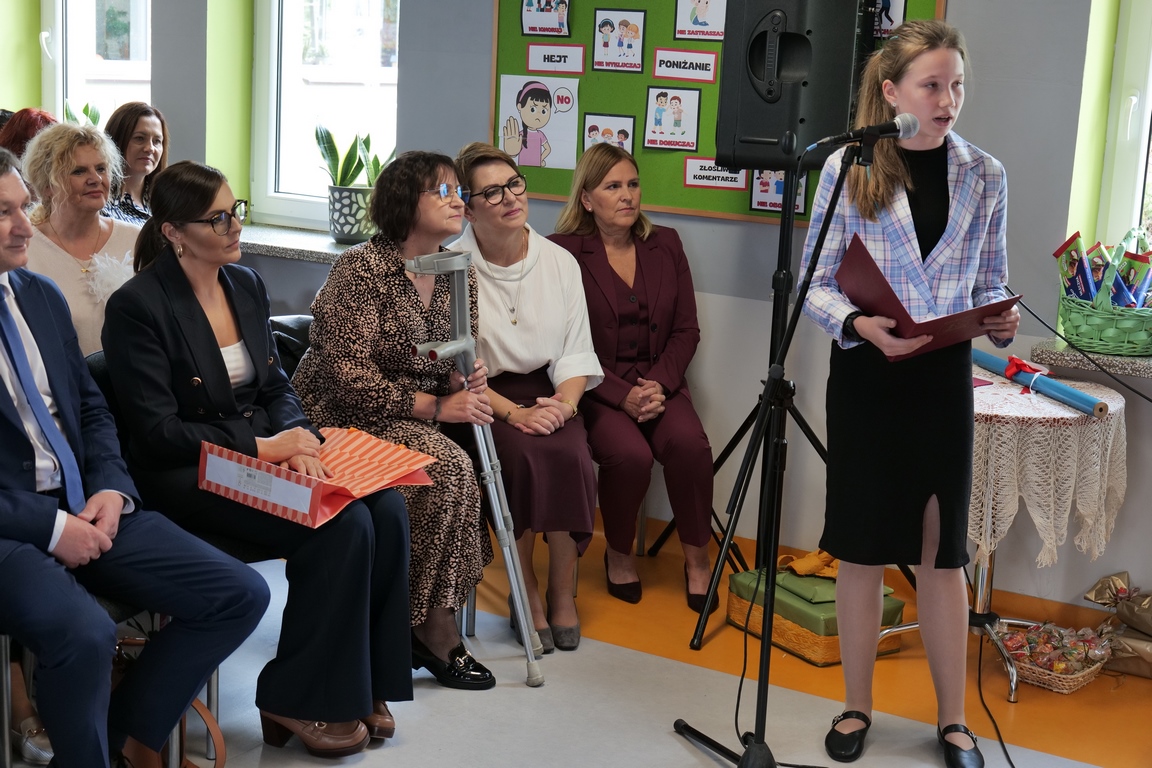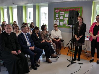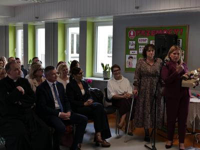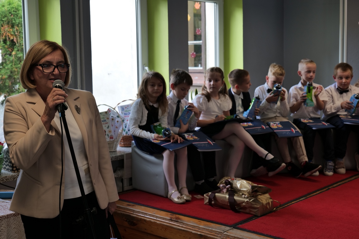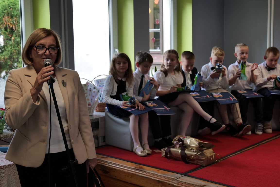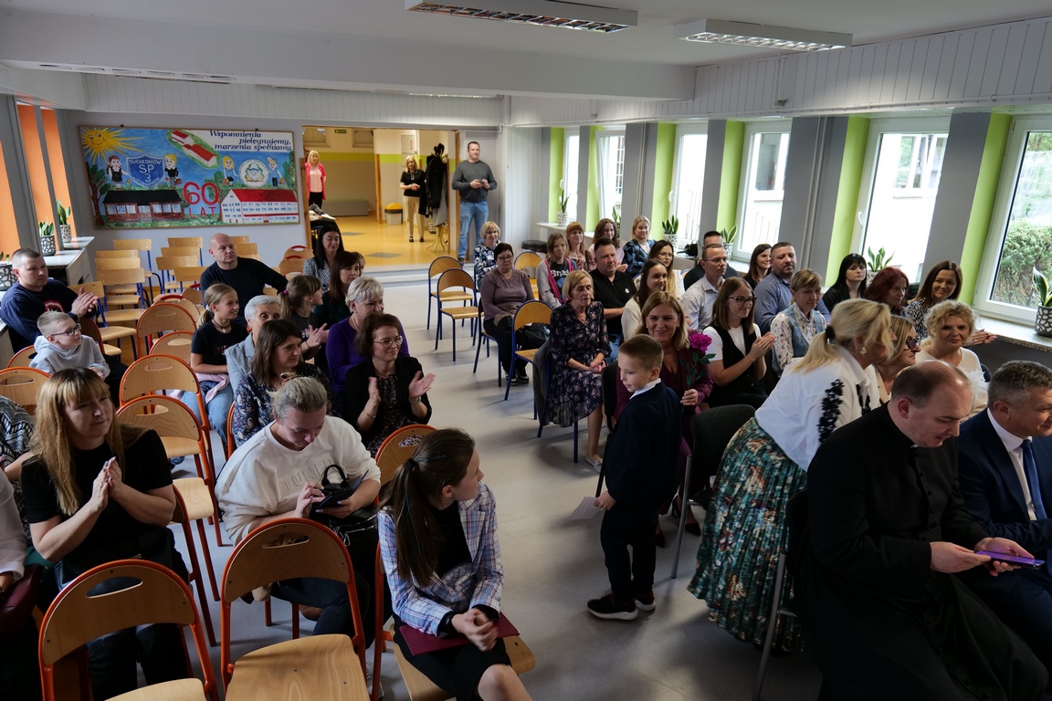 Przybyłych na uroczystość powitały dyrektor szkoły Renata Wikło i jej zastępczyni Magdalena Przygoda. Wśród gości byli: burmistrz Dariusz Miernik, przewodnicząca rady miejskiej Lidia Frątczak, ks. proboszcz Dariusz Pląsek, zastępca przewodniczącej Anna Salwa, zastępca burmistrza Agnieszka Jaszczur, inspektor ds. oświaty Beata Kaszuba, prezes Banku Spółdzielczego Agnieszka Fąfara-Markiewicz, dyrektor MGBP Małgorzata Wiśniewska, prezes ZNP Małgorzata Opala i zastępca przewodniczącego rady rodziców Paulina Duda.