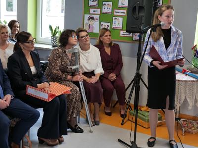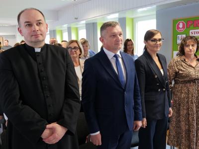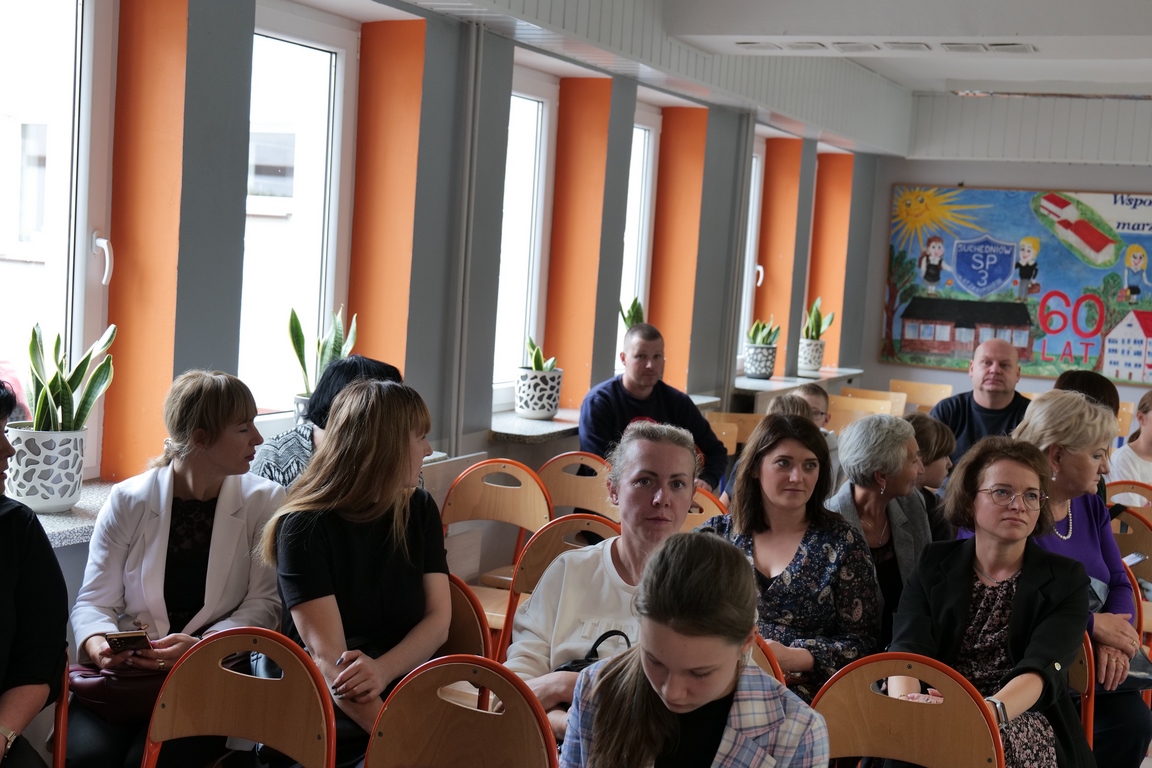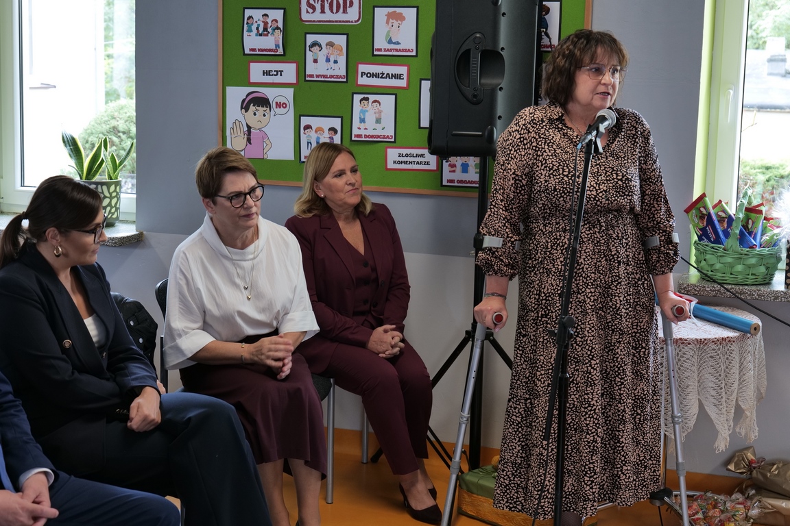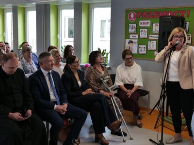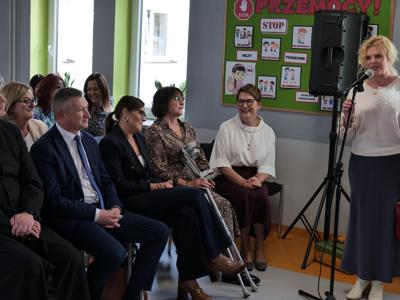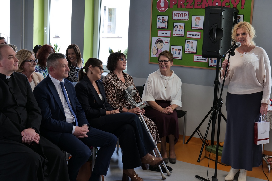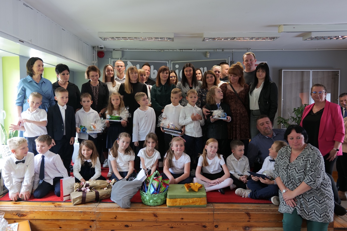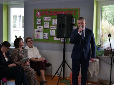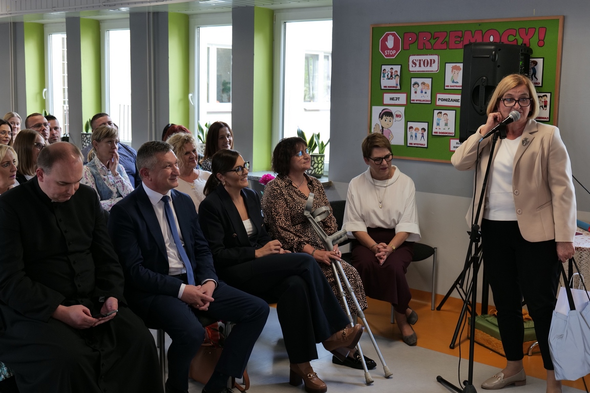 Przybyłych na uroczystość powitały dyrektor szkoły Renata Wikło i jej zastępczyni Magdalena Przygoda. Wśród gości byli: burmistrz Dariusz Miernik, przewodnicząca rady miejskiej Lidia Frątczak, ks. proboszcz Dariusz Pląsek, zastępca przewodniczącej Anna Salwa, zastępca burmistrza Agnieszka Jaszczur, inspektor ds. oświaty Beata Kaszuba, prezes Banku Spółdzielczego Agnieszka Fąfara-Markiewicz, dyrektor MGBP Małgorzata Wiśniewska, prezes ZNP Małgorzata Opala i zastępca przewodniczącego rady rodziców Paulina Duda.