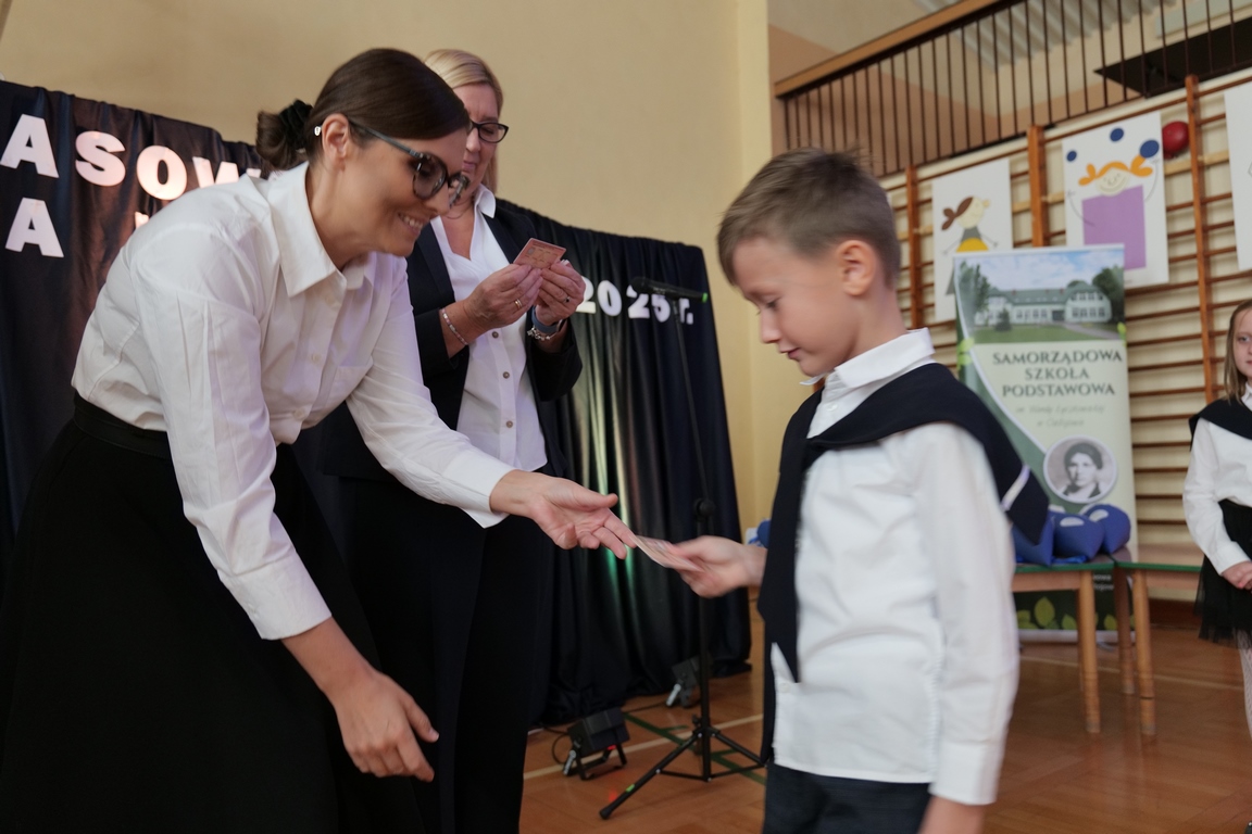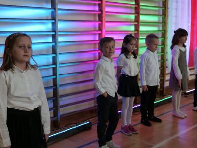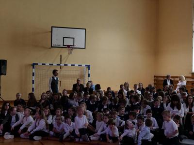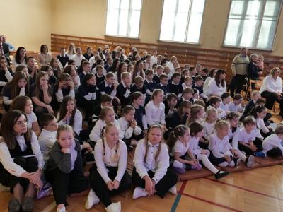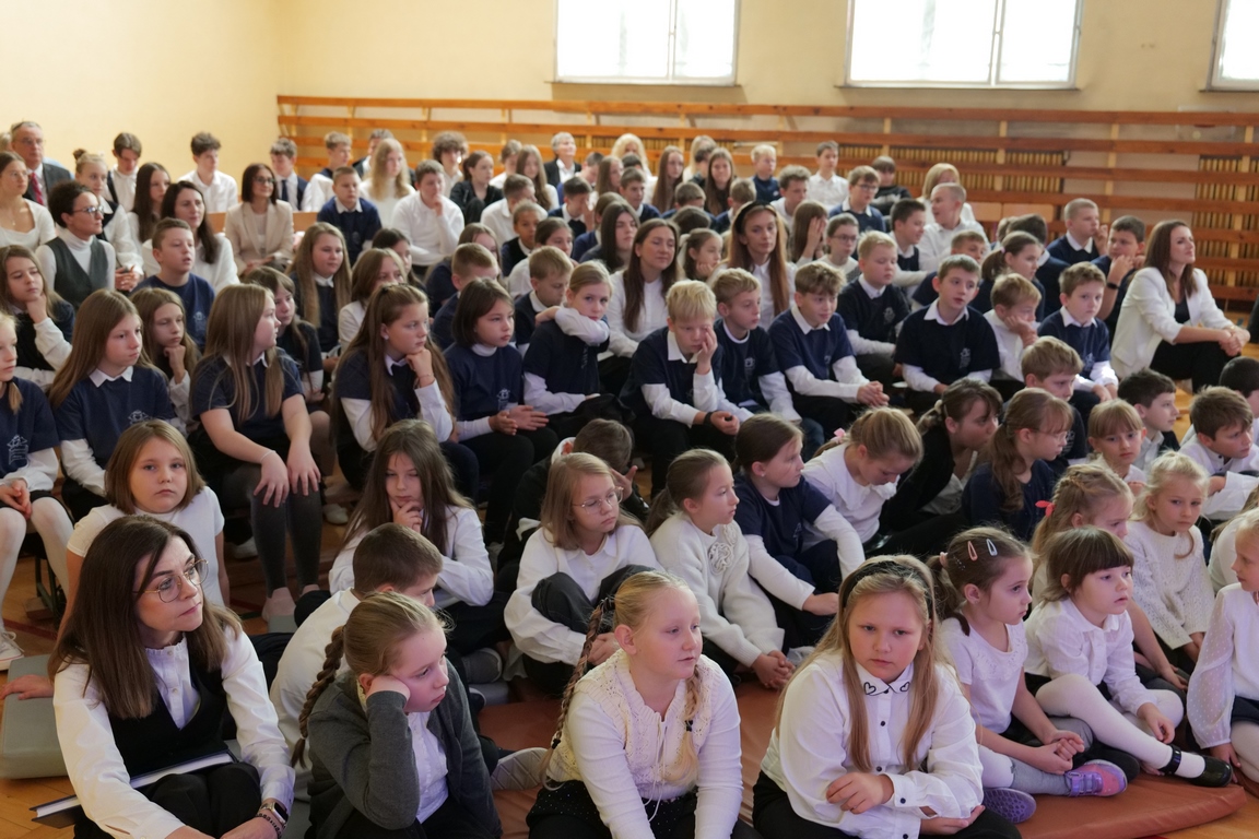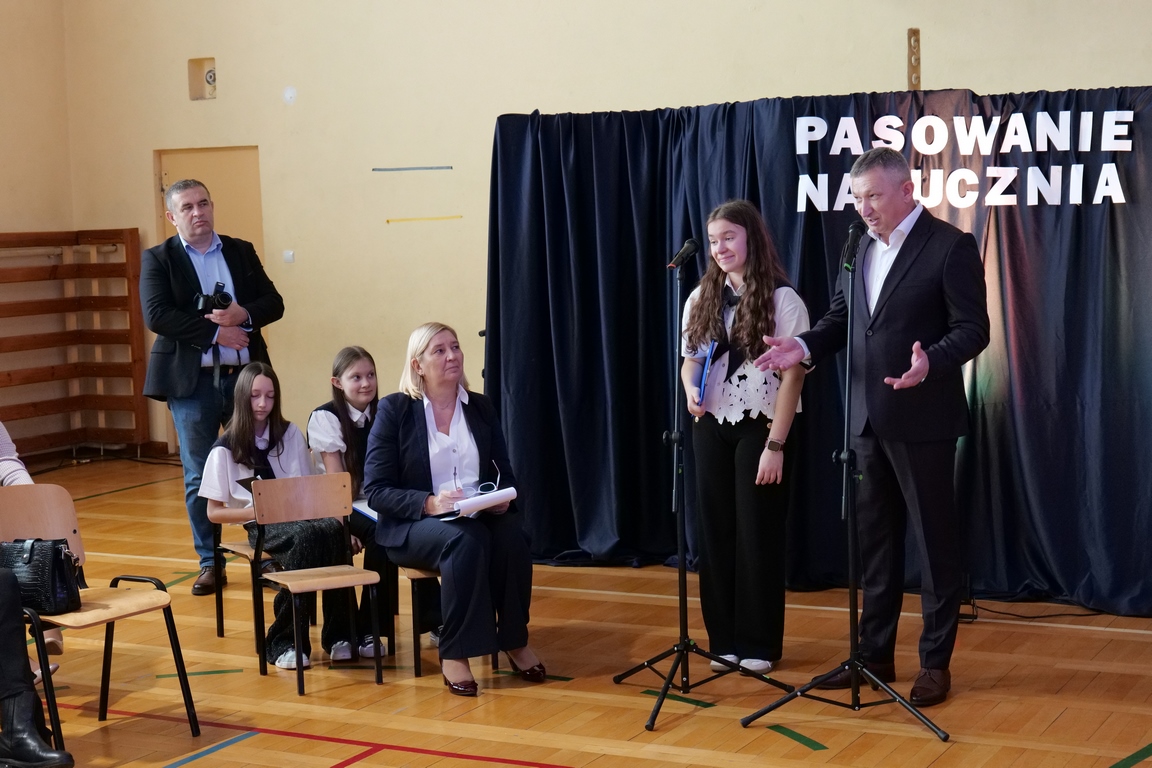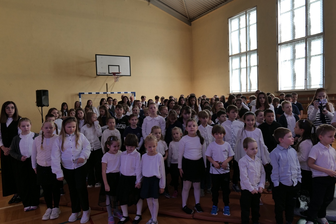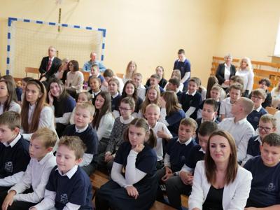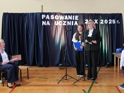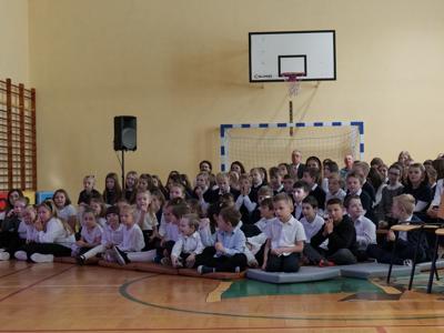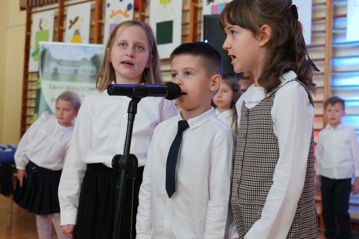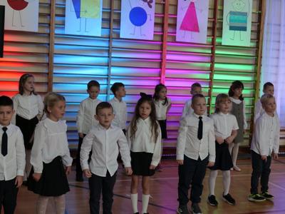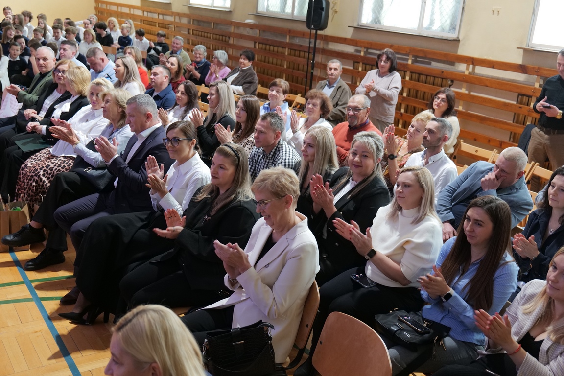 Następnie rozpoczęła się część artystyczna w wykonaniu pierwszoklasistów. Mali artyści, przygotowani przez wychowawczynię Agnieszkę Brzezińską, z wielkim zaangażowaniem śpiewali, recytowali i tańczyli, pokazując, że są już gotowi, by stać się pełnoprawnymi uczniami. Ich występ został nagrodzony gromkimi brawami. Całość uroczystości współprowadziła uczennica klasy VIII Zuzanna Połeć, przewodnicząca samorządu uczniowskiego..
