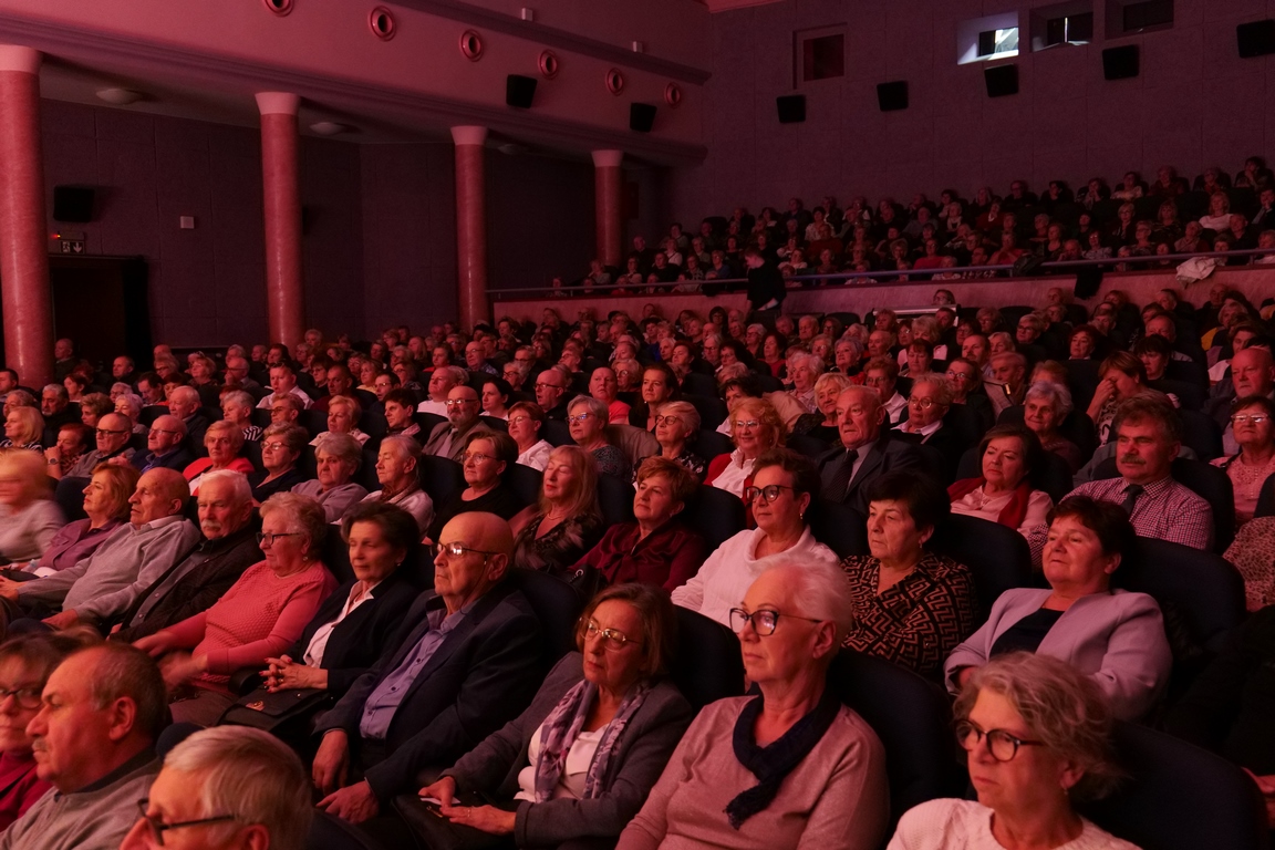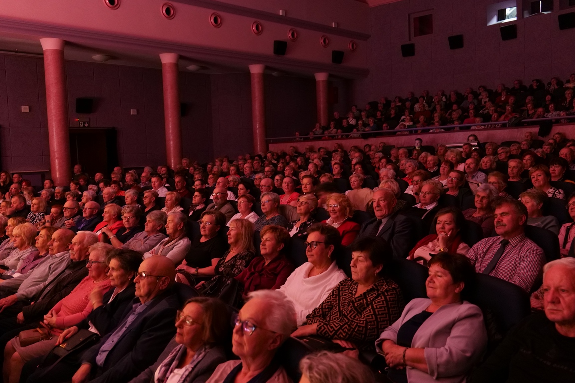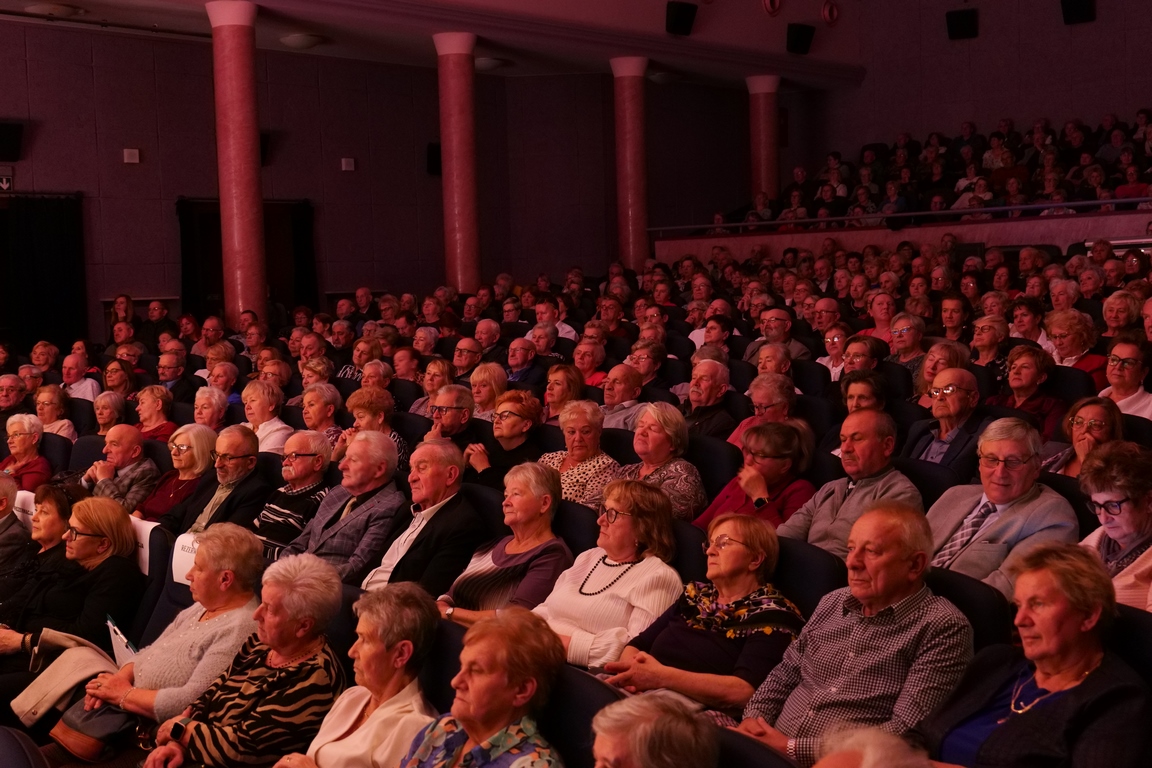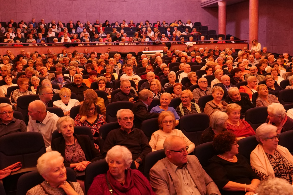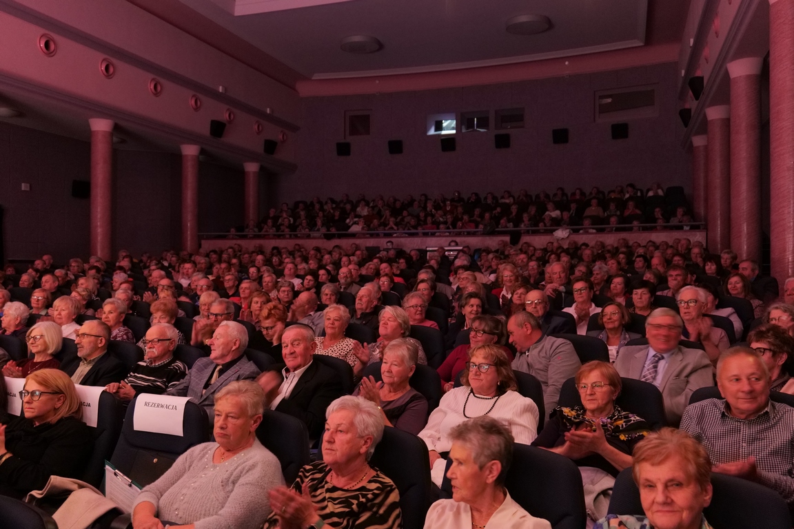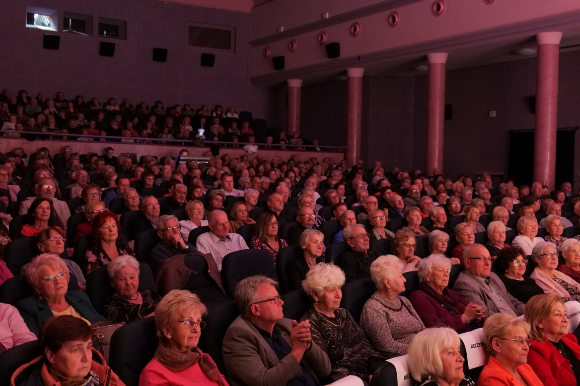 Salę widowiskową wypełniło ponad czterysta osób, licznie dopisali goście, których powitali w imieniu organizatorów członek zarządu powiatu Cezary Błach oraz Anna Jóżwik, przewodnicząca Rady Seniorów Powiatu Skarżyskiego. Poza panią minister, wśród gości był wicewojewoda świętokrzyski Michał Skotnicki, władze powiatu i gminne, dyrektor MCK-u Agnieszka Włodarczyk-Mazurek. W programie wydarzenia znalazł się wyjątkowy koncert zespołu śpiewaków i wirtuozów instrumentalistów ARTES ENSEMBLE pod dyrekcją artystyczną Andrzeja Janaszka. Muzycy przenieśli nas w klimat dwudziestolecia międzywojennego, a w programie widowiskowego koncertu usłyszeliśmy m.in. niezapomniane przeboje Hanki Ordonówny, szlagiery Zuli Pogorzelskiej, wielkie przeboje pierwszego amanta polskiego przedwojennego kina – Eugeniusza Bodo czy przepiękne klasyczne „Tango milonga” w stylowej interpretacji Mieczysława Fogga.