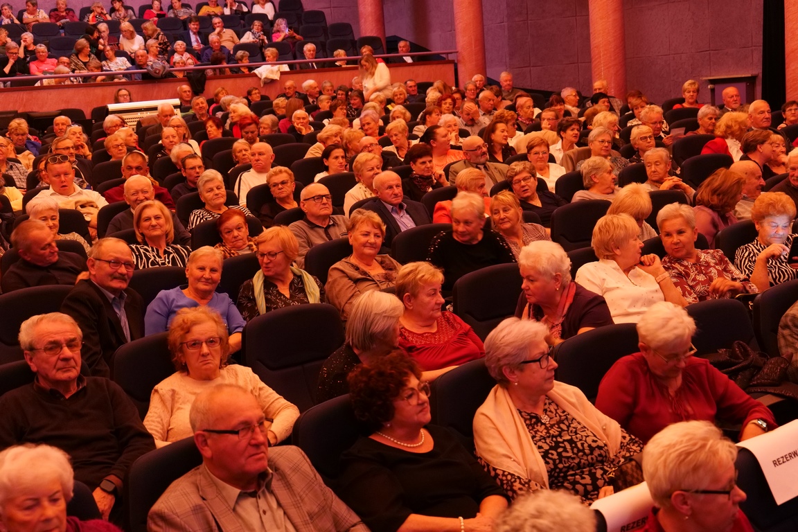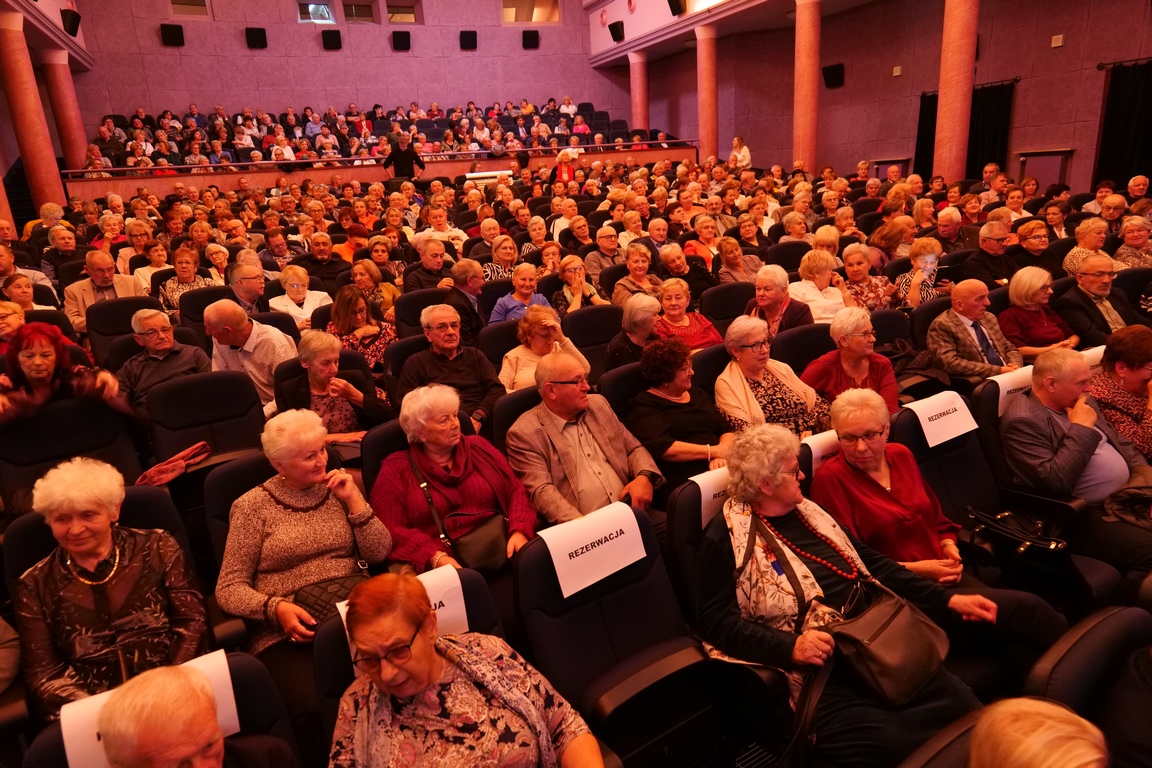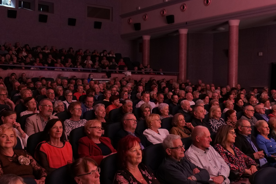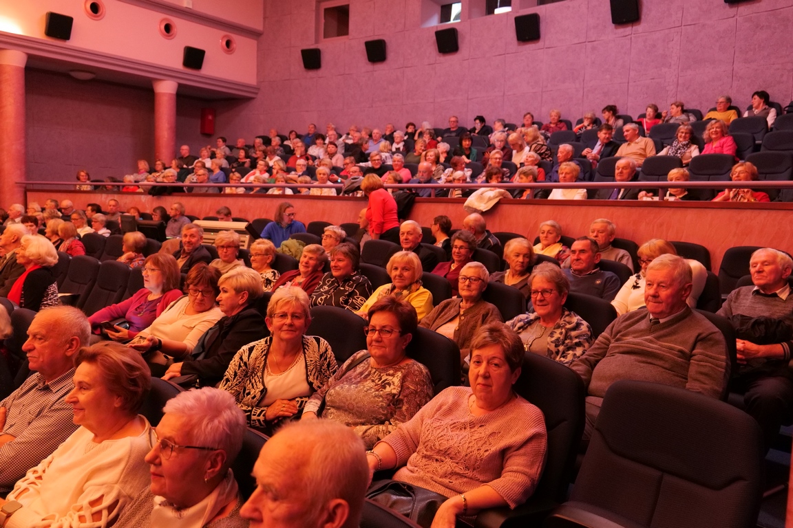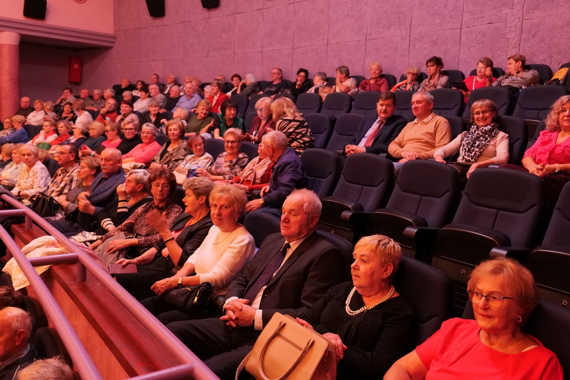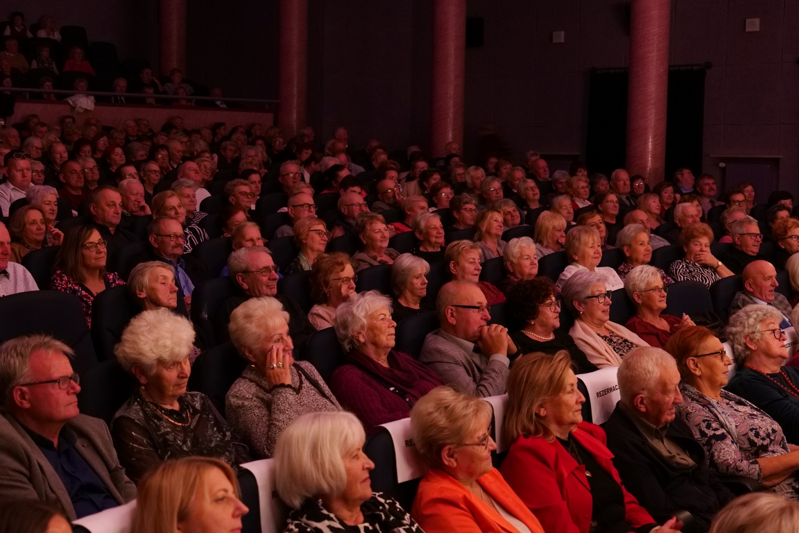 Salę widowiskową wypełniło ponad czterysta osób, licznie dopisali goście, których powitali w imieniu organizatorów członek zarządu powiatu Cezary Błach oraz Anna Jóżwik, przewodnicząca Rady Seniorów Powiatu Skarżyskiego. Poza panią minister, wśród gości był wicewojewoda świętokrzyski Michał Skotnicki, władze powiatu i gminne, dyrektor MCK-u Agnieszka Włodarczyk-Mazurek. W programie wydarzenia znalazł się wyjątkowy koncert zespołu śpiewaków i wirtuozów instrumentalistów ARTES ENSEMBLE pod dyrekcją artystyczną Andrzeja Janaszka. Muzycy przenieśli nas w klimat dwudziestolecia międzywojennego, a w programie widowiskowego koncertu usłyszeliśmy m.in. niezapomniane przeboje Hanki Ordonówny, szlagiery Zuli Pogorzelskiej, wielkie przeboje pierwszego amanta polskiego przedwojennego kina – Eugeniusza Bodo czy przepiękne klasyczne „Tango milonga” w stylowej interpretacji Mieczysława Fogga.