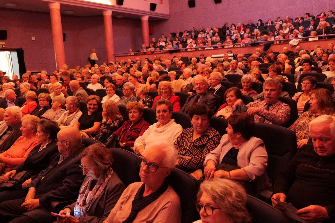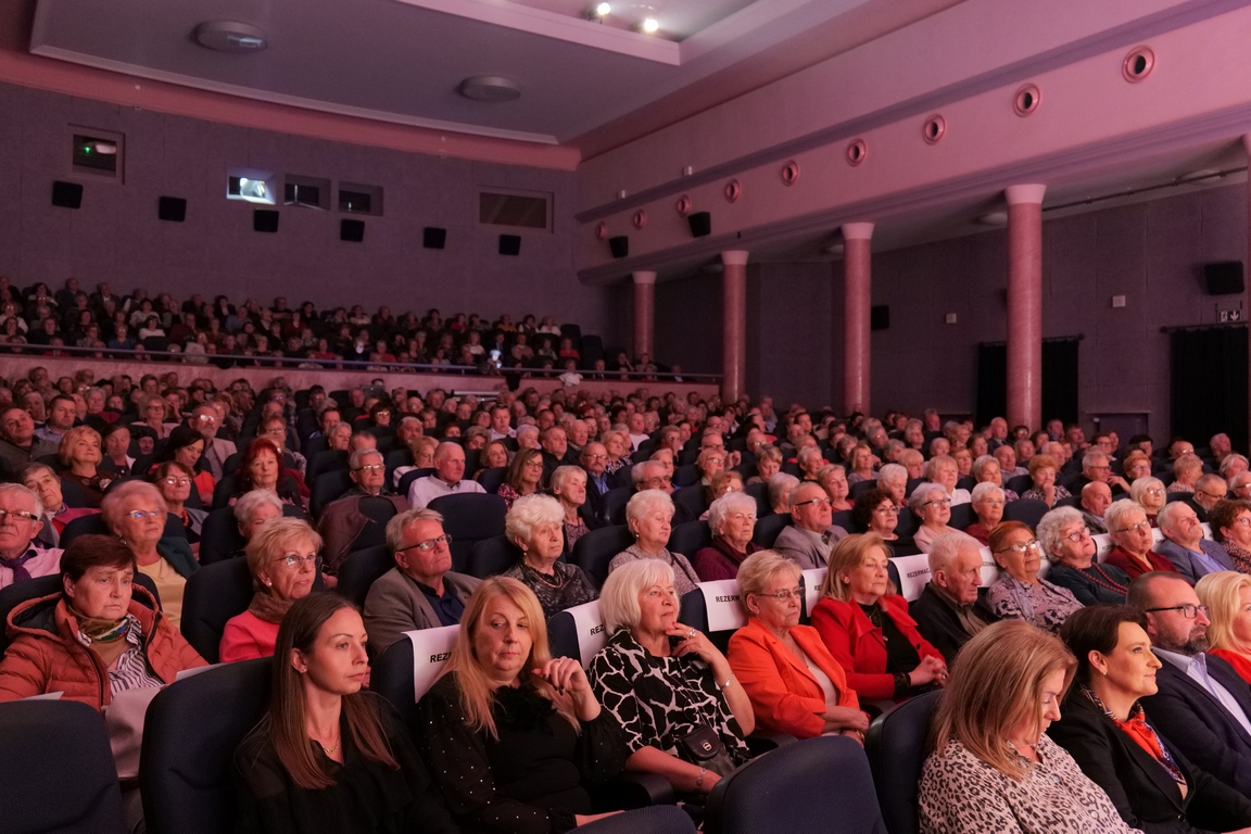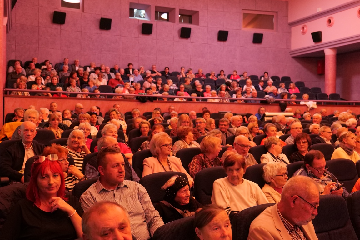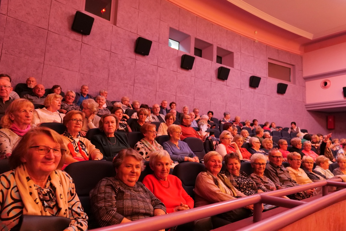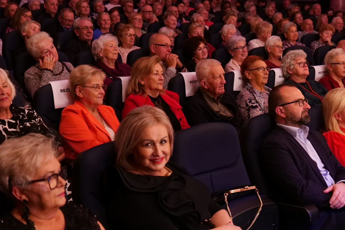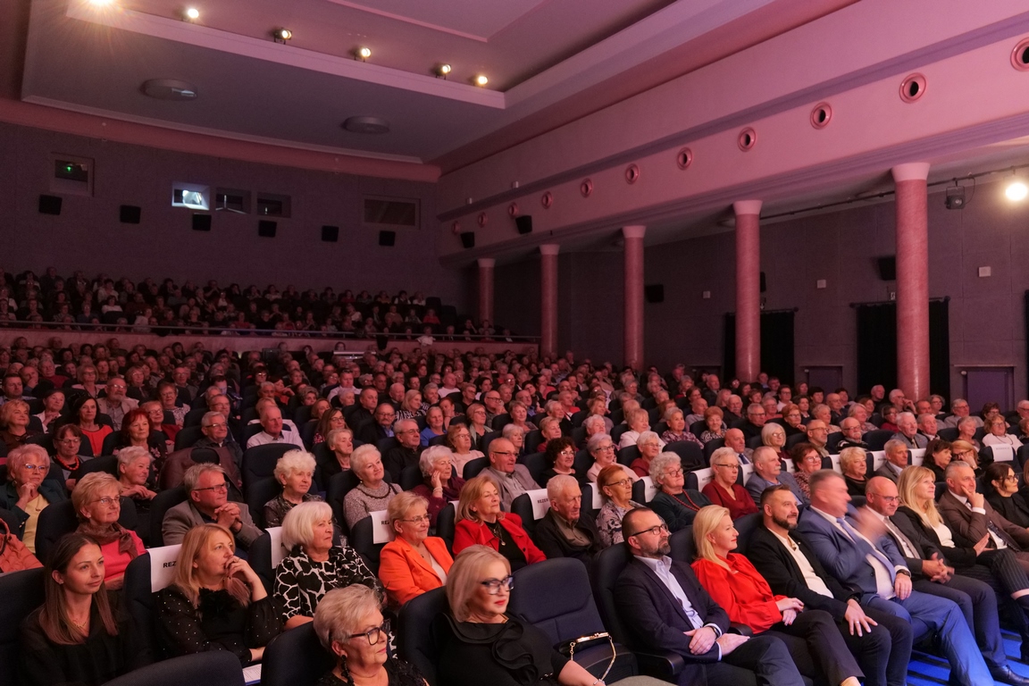 Salę widowiskową wypełniło ponad czterysta osób, licznie dopisali goście, których powitali w imieniu organizatorów członek zarządu powiatu Cezary Błach oraz Anna Jóżwik, przewodnicząca Rady Seniorów Powiatu Skarżyskiego. Poza panią minister, wśród gości był wicewojewoda świętokrzyski Michał Skotnicki, władze powiatu i gminne, dyrektor MCK-u Agnieszka Włodarczyk-Mazurek. W programie wydarzenia znalazł się wyjątkowy koncert zespołu śpiewaków i wirtuozów instrumentalistów ARTES ENSEMBLE pod dyrekcją artystyczną Andrzeja Janaszka. Muzycy przenieśli nas w klimat dwudziestolecia międzywojennego, a w programie widowiskowego koncertu usłyszeliśmy m.in. niezapomniane przeboje Hanki Ordonówny, szlagiery Zuli Pogorzelskiej, wielkie przeboje pierwszego amanta polskiego przedwojennego kina – Eugeniusza Bodo czy przepiękne klasyczne „Tango milonga” w stylowej interpretacji Mieczysława Fogga.
