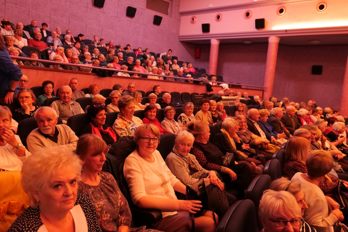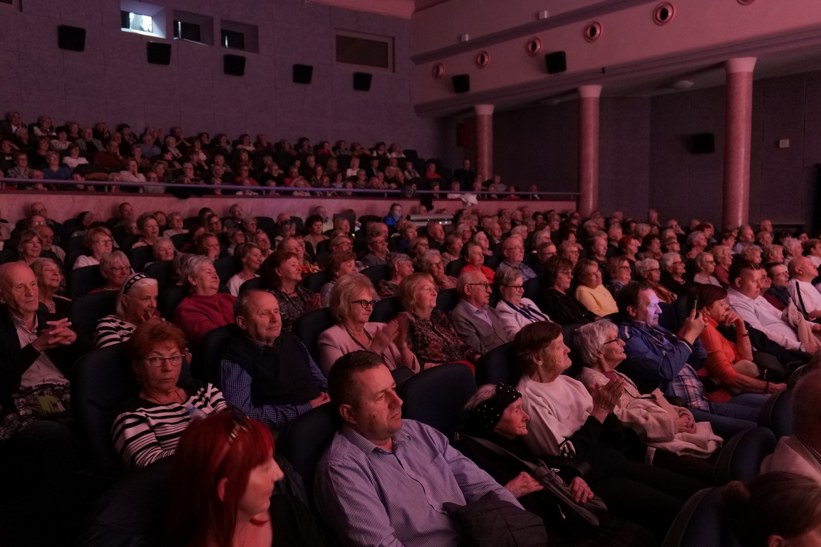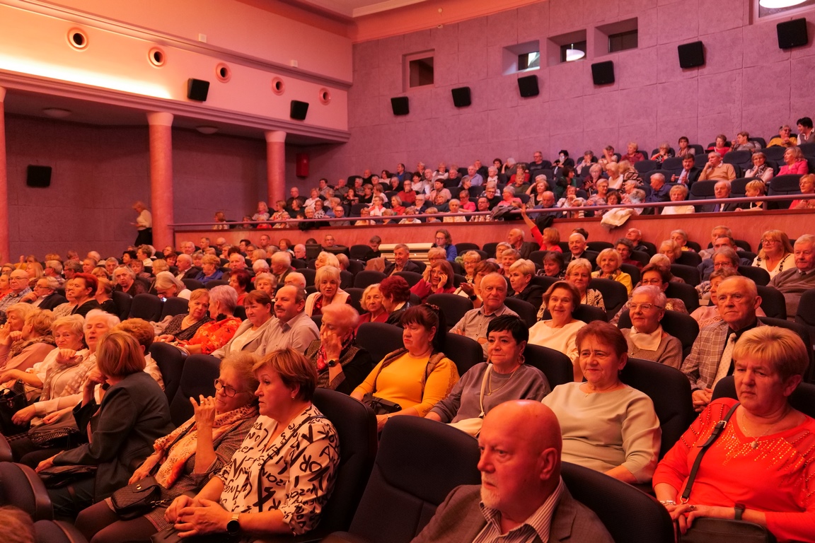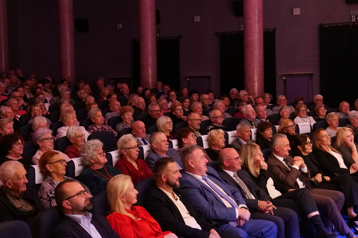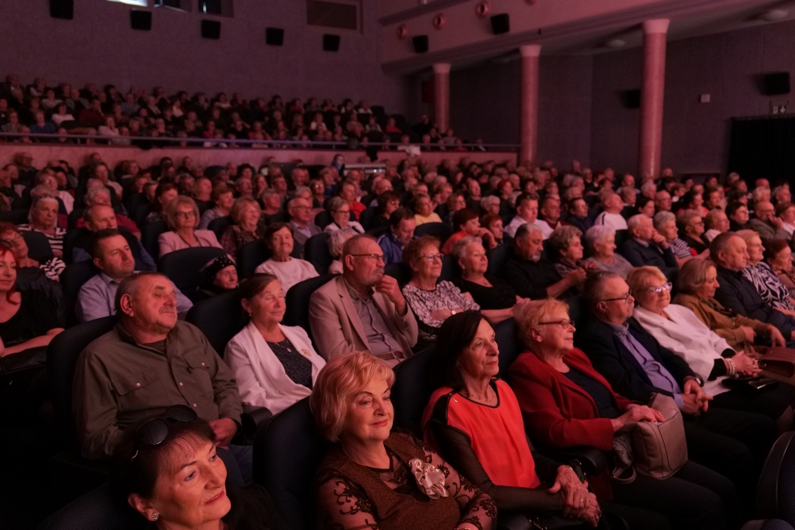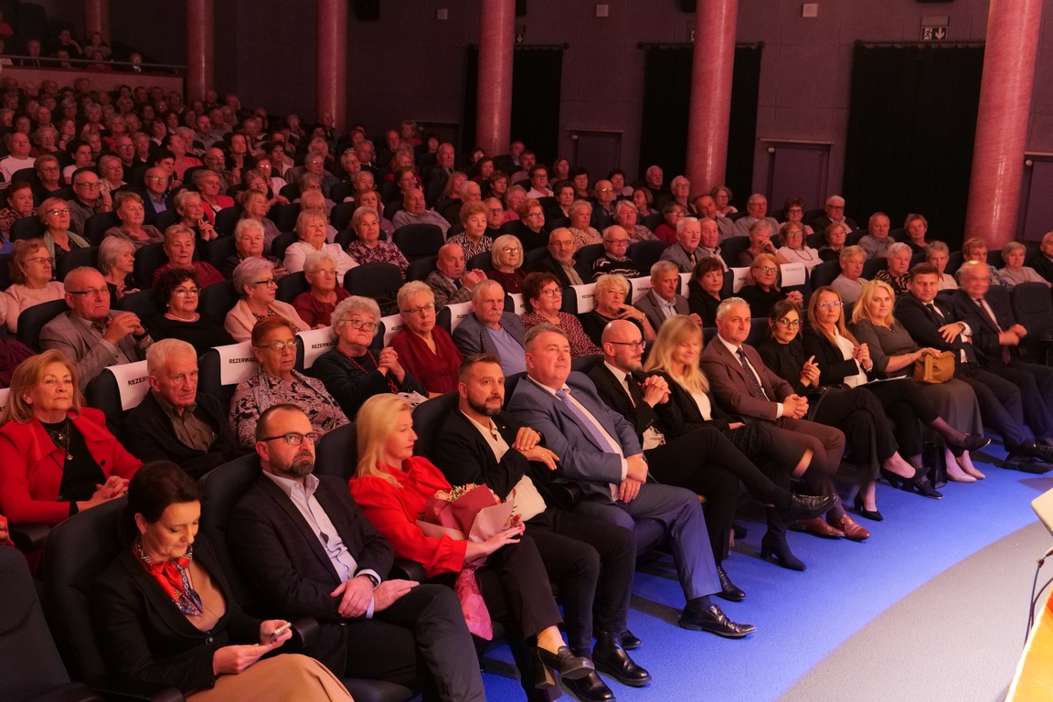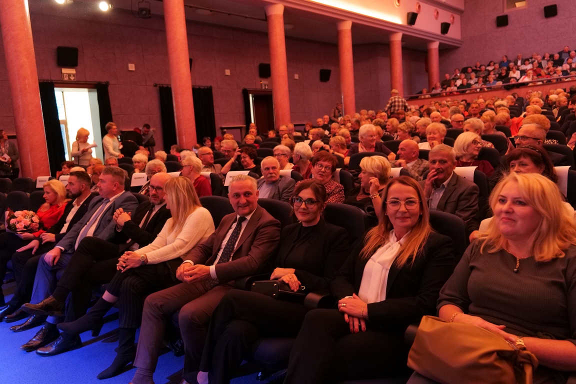 Salę widowiskową wypełniło ponad czterysta osób, licznie dopisali goście, których powitali w imieniu organizatorów członek zarządu powiatu Cezary Błach oraz Anna Jóżwik, przewodnicząca Rady Seniorów Powiatu Skarżyskiego. Poza panią minister, wśród gości był wicewojewoda świętokrzyski Michał Skotnicki, władze powiatu i gminne, dyrektor MCK-u Agnieszka Włodarczyk-Mazurek. W programie wydarzenia znalazł się wyjątkowy koncert zespołu śpiewaków i wirtuozów instrumentalistów ARTES ENSEMBLE pod dyrekcją artystyczną Andrzeja Janaszka. Muzycy przenieśli nas w klimat dwudziestolecia międzywojennego, a w programie widowiskowego koncertu usłyszeliśmy m.in. niezapomniane przeboje Hanki Ordonówny, szlagiery Zuli Pogorzelskiej, wielkie przeboje pierwszego amanta polskiego przedwojennego kina – Eugeniusza Bodo czy przepiękne klasyczne „Tango milonga” w stylowej interpretacji Mieczysława Fogga.