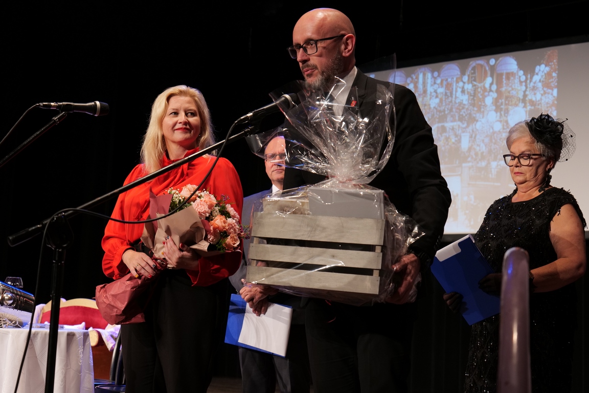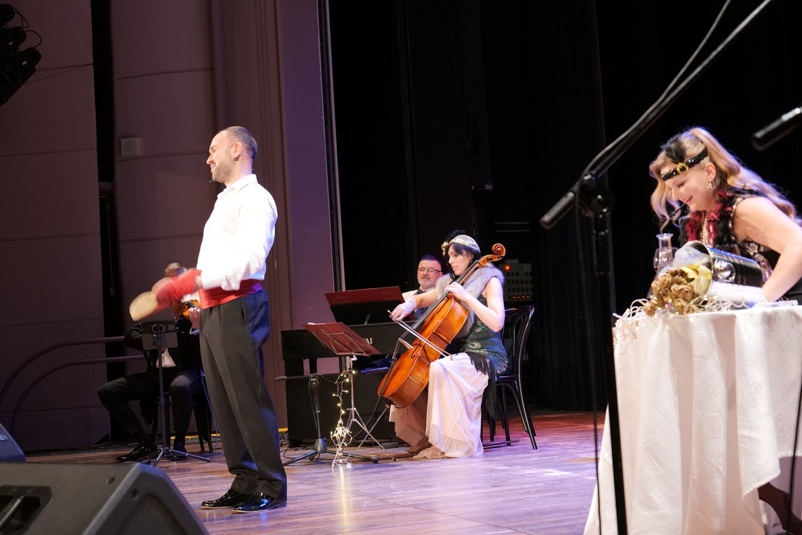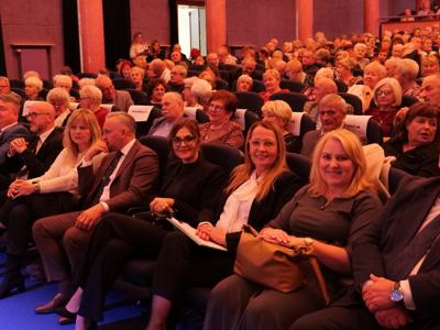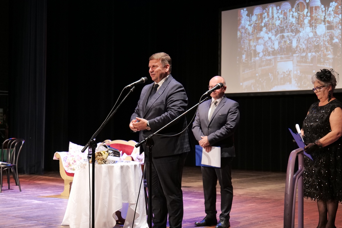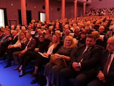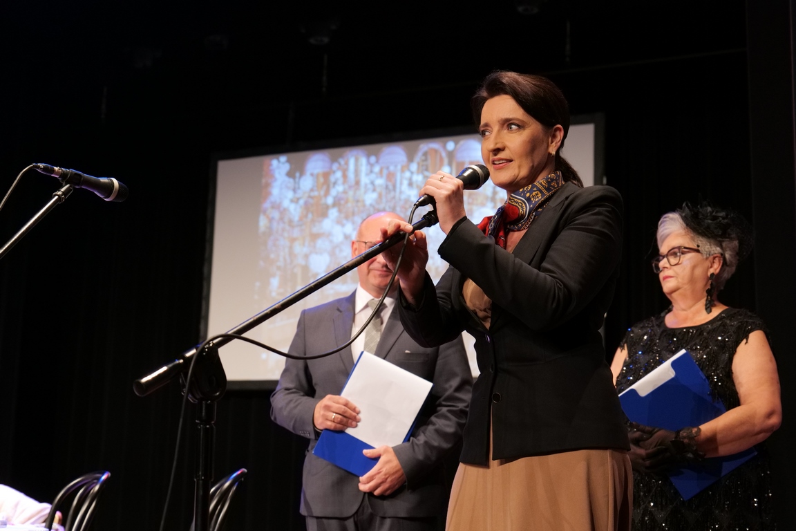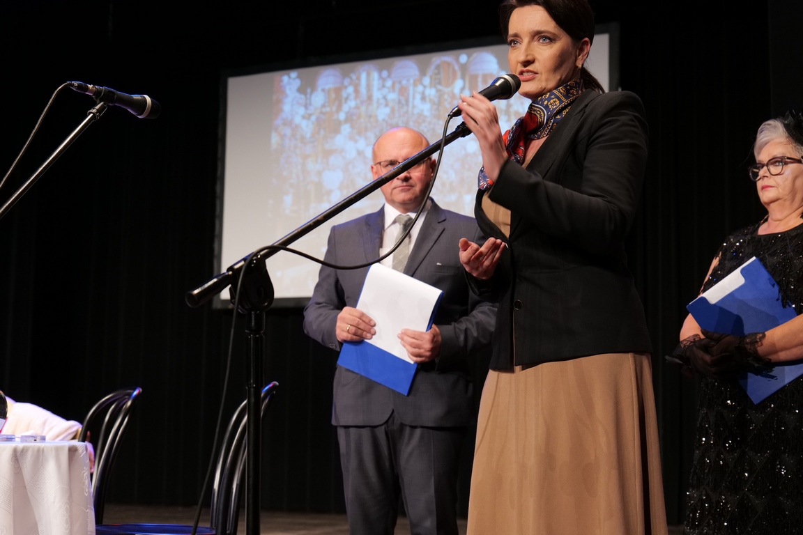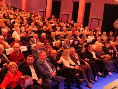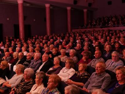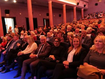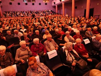 Salę widowiskową wypełniło ponad czterysta osób, licznie dopisali goście, których powitali w imieniu organizatorów członek zarządu powiatu Cezary Błach oraz Anna Jóżwik, przewodnicząca Rady Seniorów Powiatu Skarżyskiego. Poza panią minister, wśród gości był wicewojewoda świętokrzyski Michał Skotnicki, władze powiatu i gminne, dyrektor MCK-u Agnieszka Włodarczyk-Mazurek. W programie wydarzenia znalazł się wyjątkowy koncert zespołu śpiewaków i wirtuozów instrumentalistów ARTES ENSEMBLE pod dyrekcją artystyczną Andrzeja Janaszka. Muzycy przenieśli nas w klimat dwudziestolecia międzywojennego, a w programie widowiskowego koncertu usłyszeliśmy m.in. niezapomniane przeboje Hanki Ordonówny, szlagiery Zuli Pogorzelskiej, wielkie przeboje pierwszego amanta polskiego przedwojennego kina – Eugeniusza Bodo czy przepiękne klasyczne „Tango milonga” w stylowej interpretacji Mieczysława Fogga.