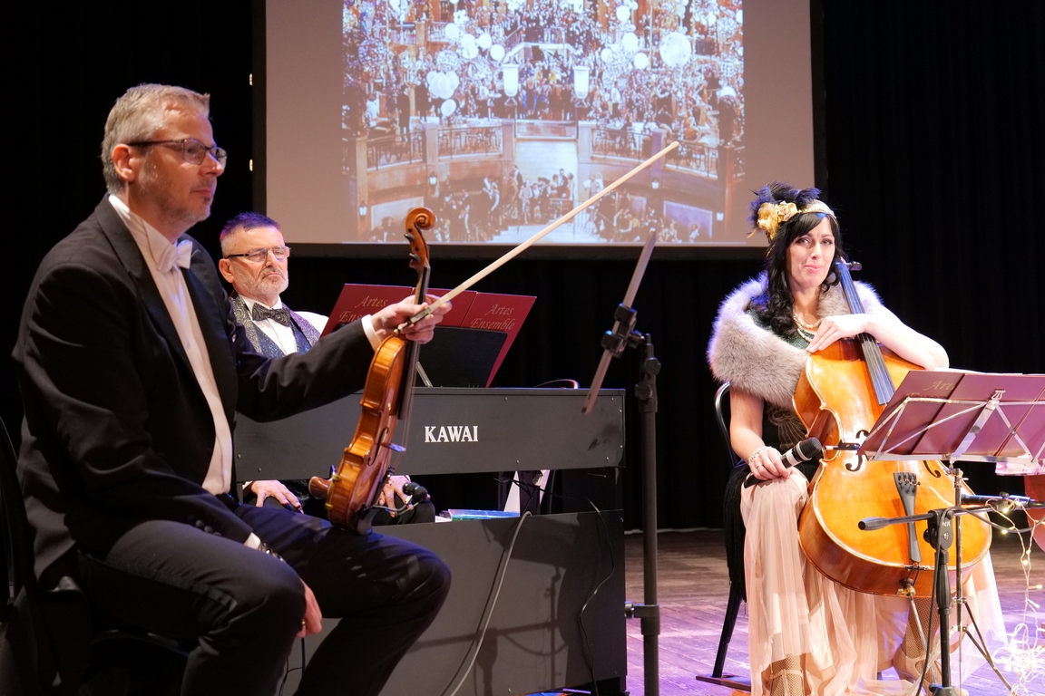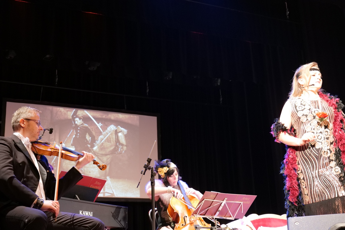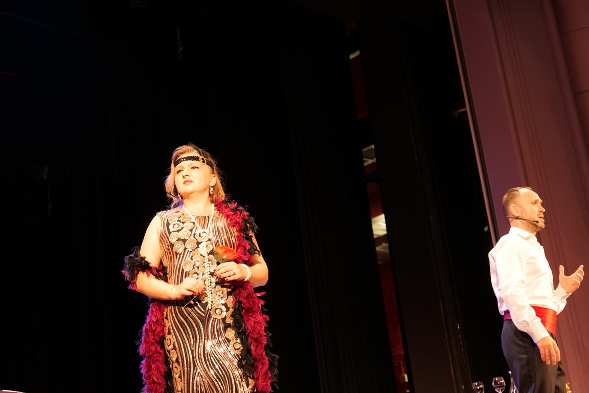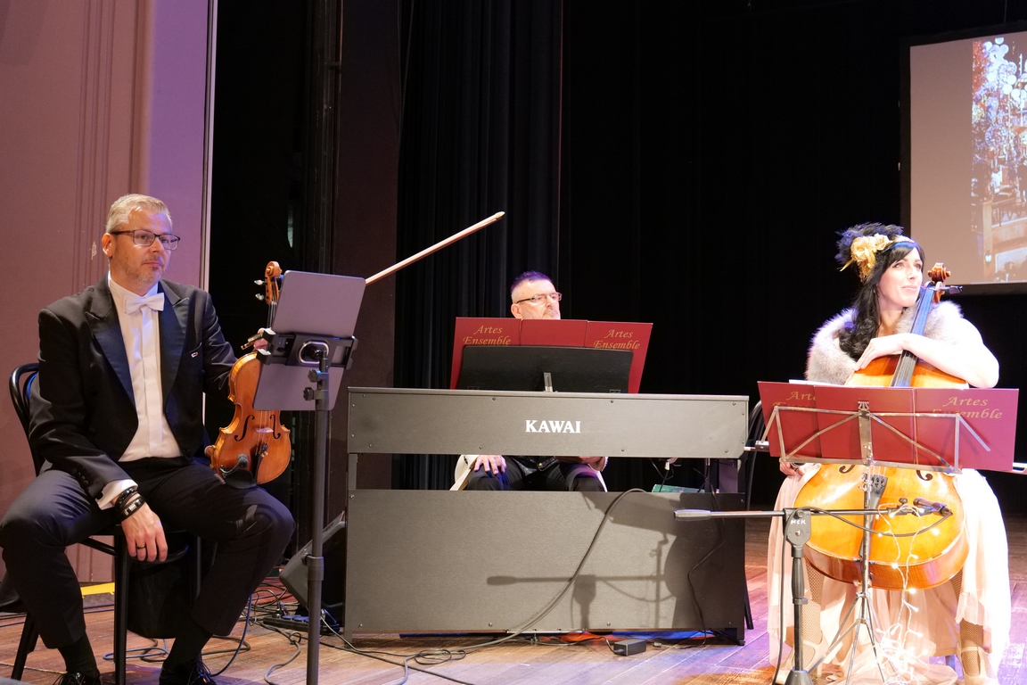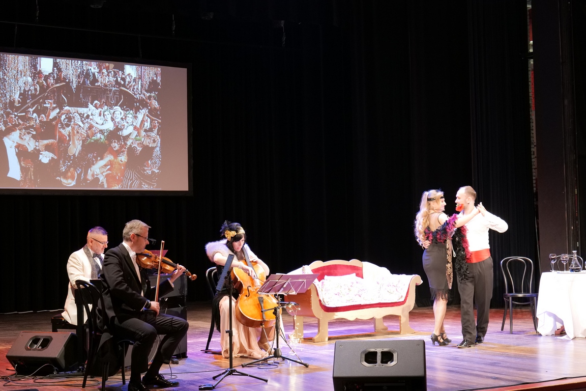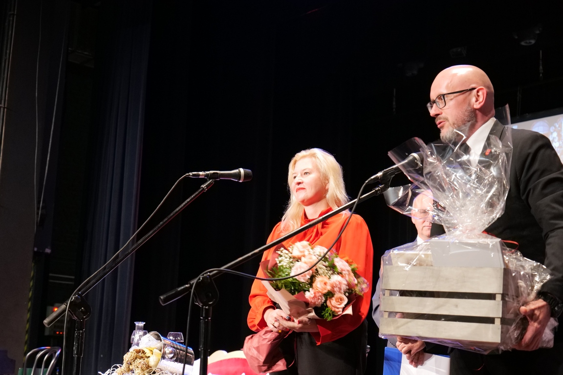 Salę widowiskową wypełniło ponad czterysta osób, licznie dopisali goście, których powitali w imieniu organizatorów członek zarządu powiatu Cezary Błach oraz Anna Jóżwik, przewodnicząca Rady Seniorów Powiatu Skarżyskiego. Poza panią minister, wśród gości był wicewojewoda świętokrzyski Michał Skotnicki, władze powiatu i gminne, dyrektor MCK-u Agnieszka Włodarczyk-Mazurek. W programie wydarzenia znalazł się wyjątkowy koncert zespołu śpiewaków i wirtuozów instrumentalistów ARTES ENSEMBLE pod dyrekcją artystyczną Andrzeja Janaszka. Muzycy przenieśli nas w klimat dwudziestolecia międzywojennego, a w programie widowiskowego koncertu usłyszeliśmy m.in. niezapomniane przeboje Hanki Ordonówny, szlagiery Zuli Pogorzelskiej, wielkie przeboje pierwszego amanta polskiego przedwojennego kina – Eugeniusza Bodo czy przepiękne klasyczne „Tango milonga” w stylowej interpretacji Mieczysława Fogga.