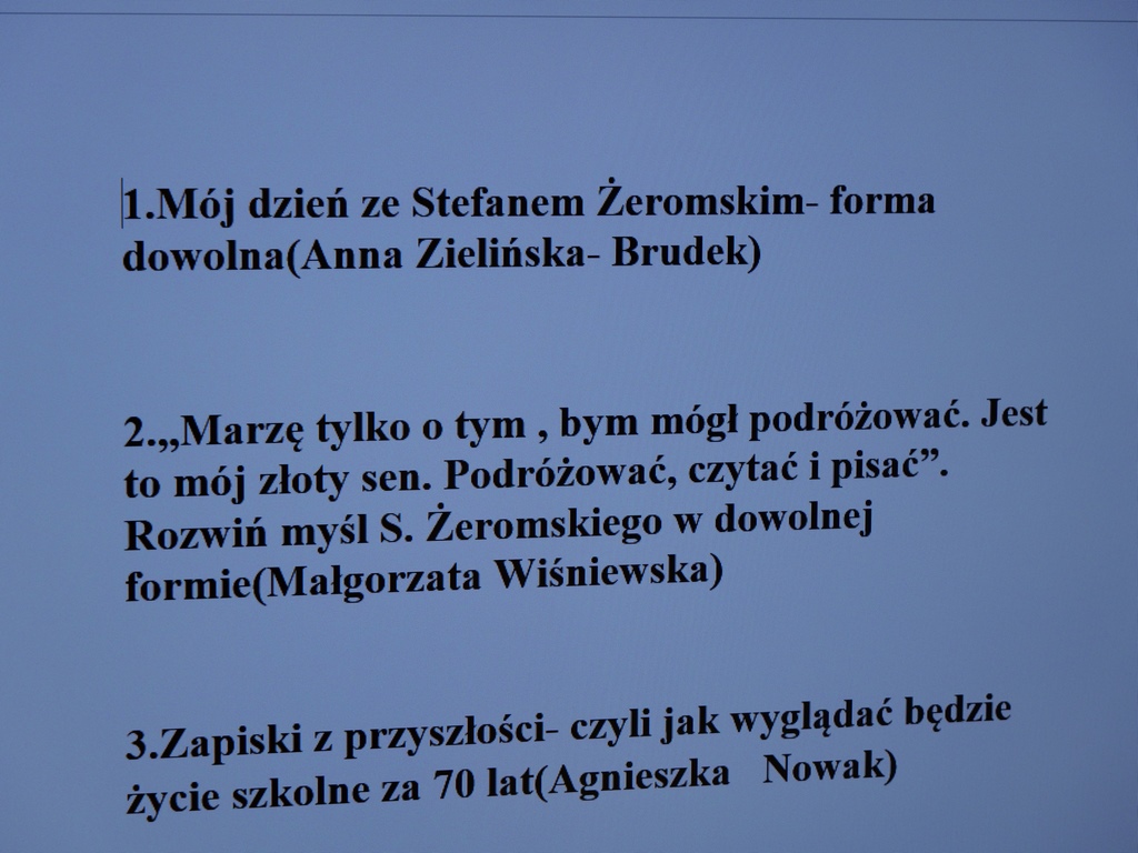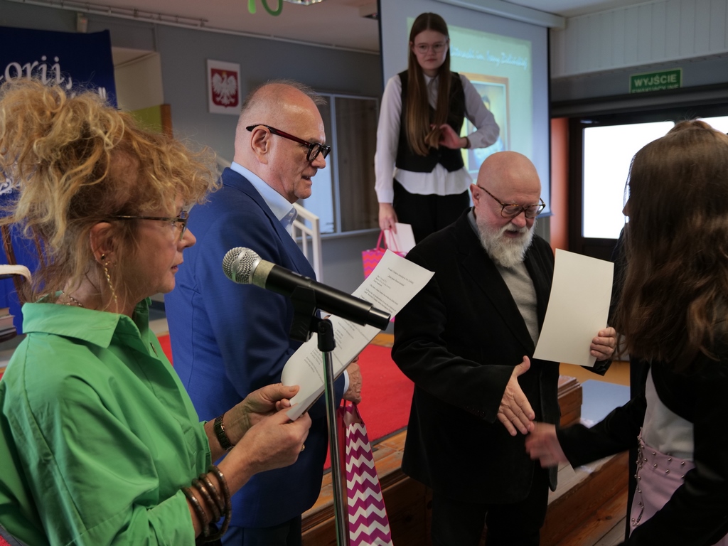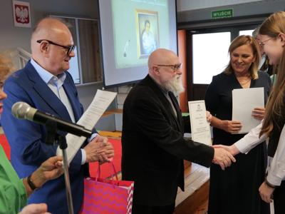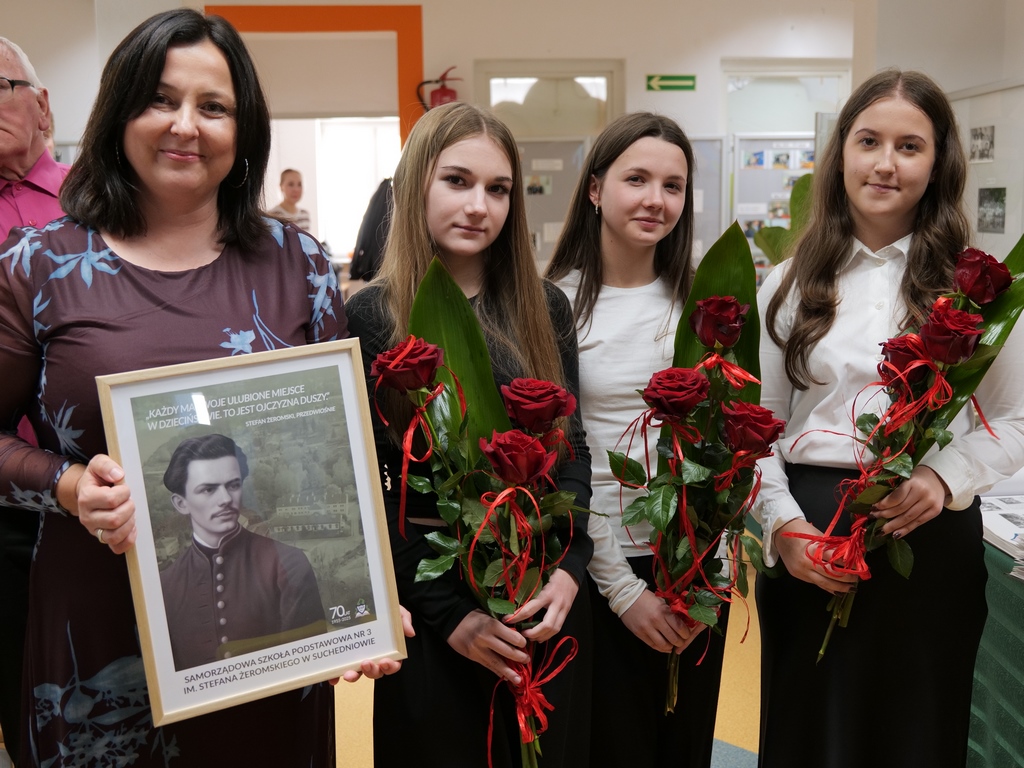Podziękowania dla opiekunów i dyplomy dla wszystkich uczestników konkursu wręczyli podczas obchodów jubileuszowych dyrektor szkoły Renata Wikło, Anna Salwa, Sławomir Zieliński, a zwycięzcom także prof. Jerzy Bralczyk. Zwyciężyła Julia Wiśniewska (SP 3 Suchedniów), drugie miejsce zajęła Paulina Kowalczyk (SP Parszów), a trzecie Wiktoria Nowak (SP Ostojów). Upominki dla wszystkich ufundowały także władze miasta, a wręczyli je burmistrz Dariusz Miernik i sekretarz miasta Renata Sidor.