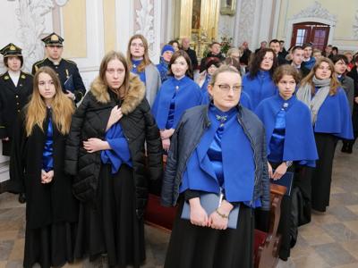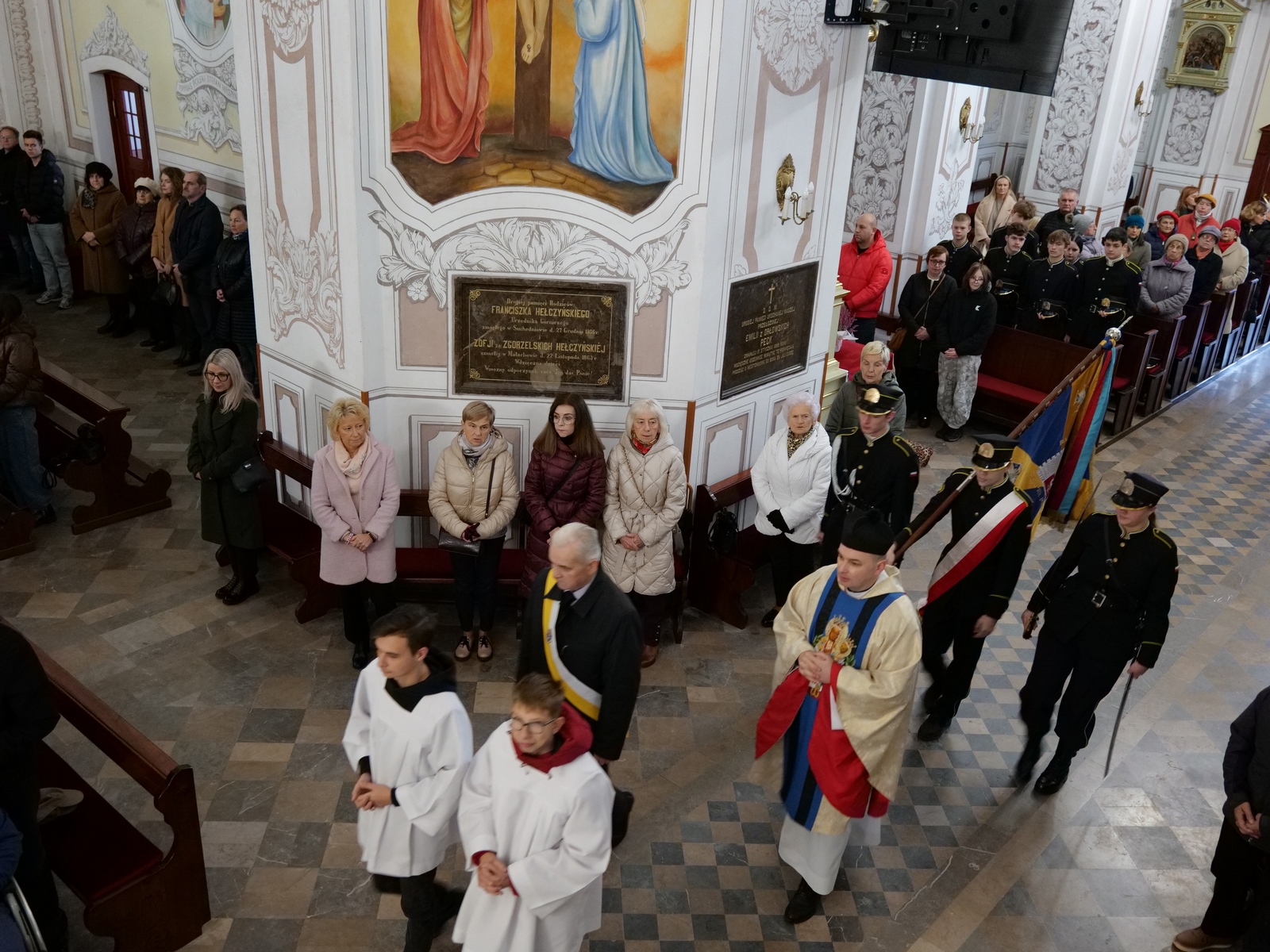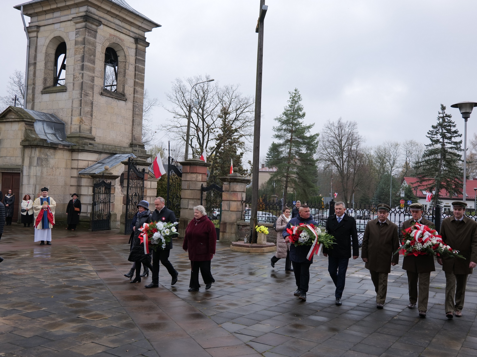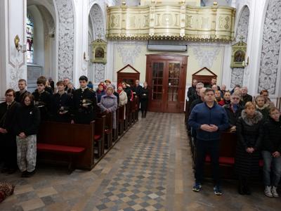 Przed nabożeństwem delegacje złożyły wiązanki kwiatów pod tablicami pamiątkowymi wmurowanymi w mury świątyni. Mszy św. przewodniczył ks. proboszcz Daruisz Pląsek, wziął w niej udział burmistrz Dariusz Miernik i członek zarządu powiatu Tadeusz Bałchanowski. Śpiew podczas Mszy poprowadziły Chór Parafialny i Chór Akademicki Politechniki Świętokrzyskiej .