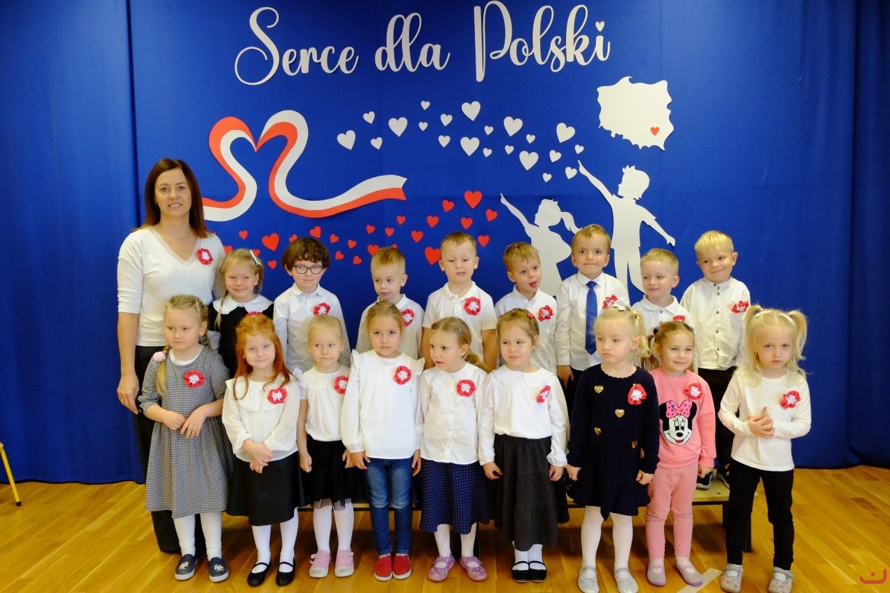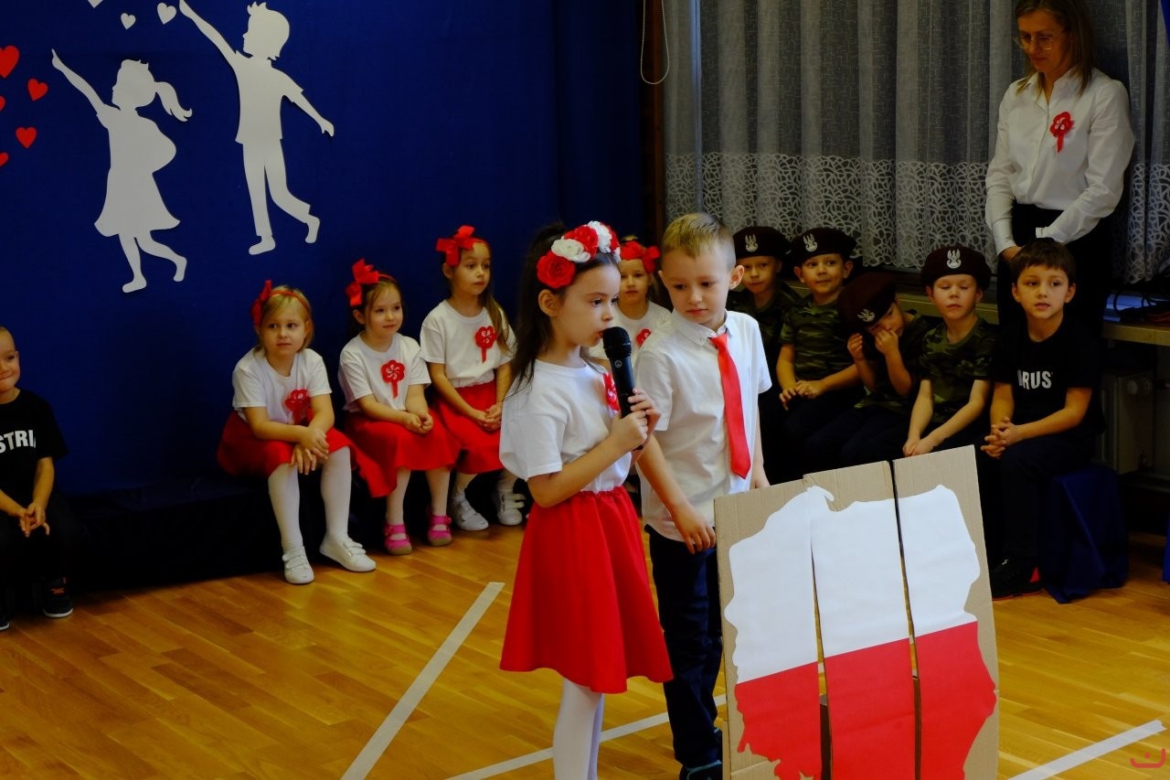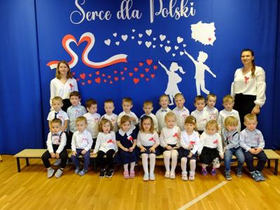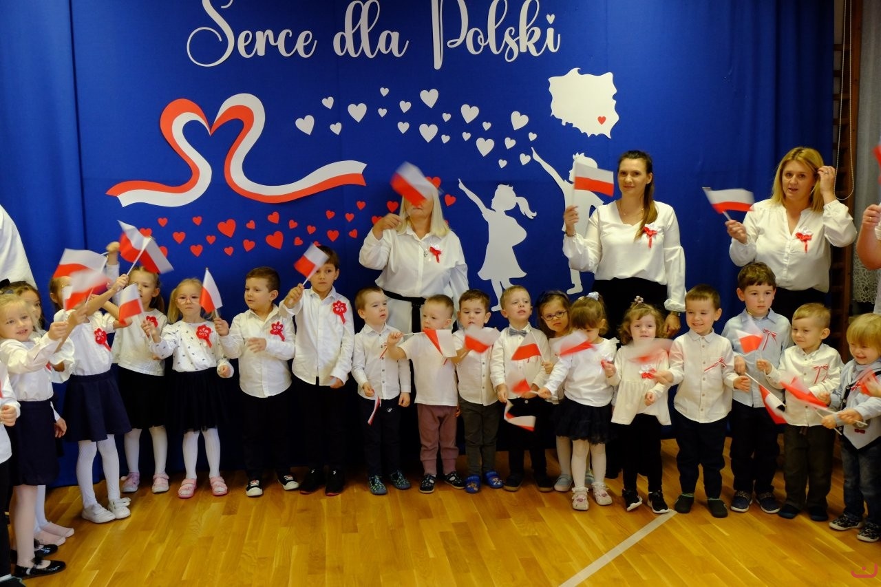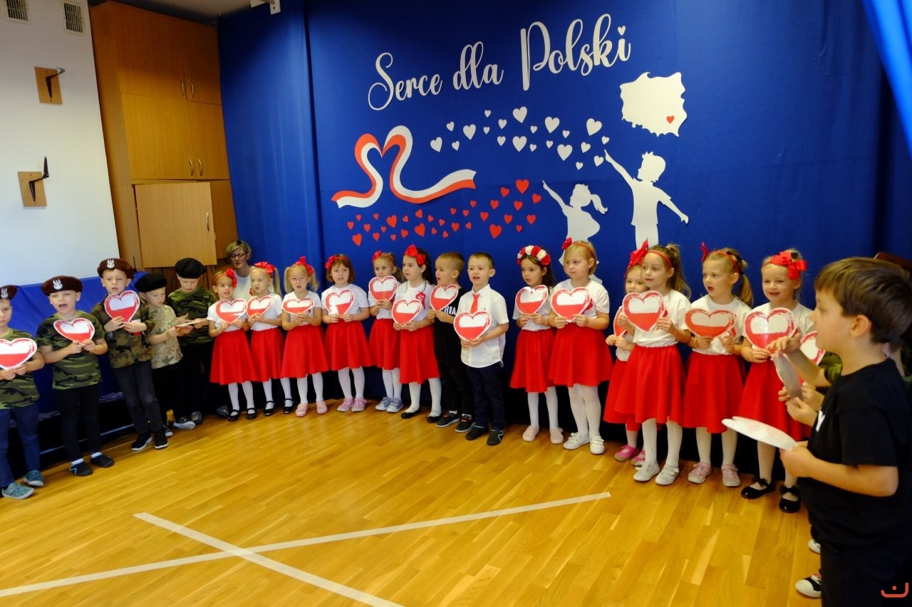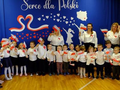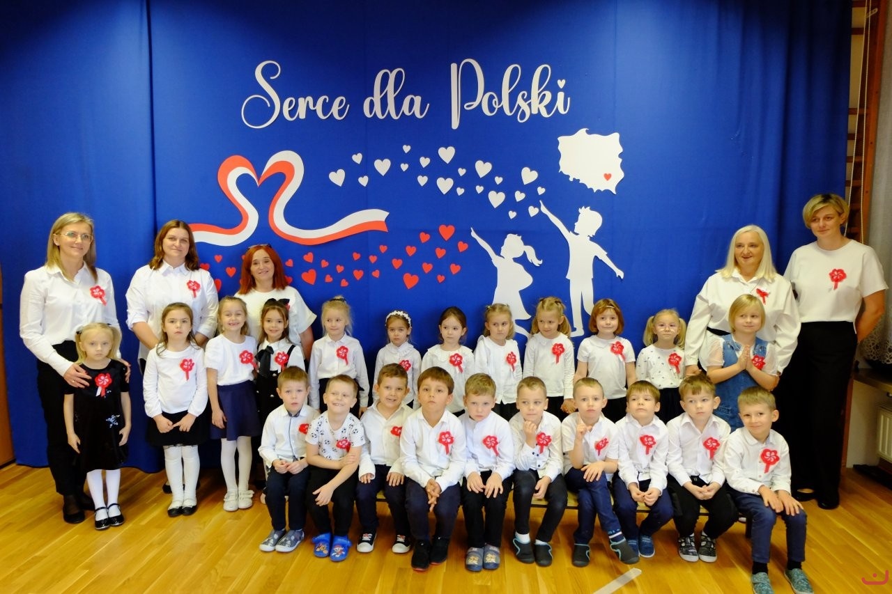 Pielęgnując tradycje oraz patriotyzm u dzieci, w dniu 7 listopada 2025 roku w Przedszkolu Samorządowym uroczyście obchodziliśmy 107. rocznicę odzyskania niepodległości przez nasz kraj. Z tej okazji odbyła się uroczystość, podczas której dzieci z dumą uczciły pamięć o tych, którzy walczyli o wolność Polski. Od rana w salach panował wyjątkowy, patriotyczny nastrój. Przedszkolaki przyszły ubrane w galowe stroje. W nastrój tego dnia wprowadziły nas pieśni patriotyczne, które rozbrzmiewały w holu przedszkola. W godzinach dopołudniowych cała społeczność przedszkolna, personel oraz zaproszeni Rodzice zebrali się na sali gimnastycznej, aby uroczyście świętować. Wszyscy z powagą i w skupieniu obejrzeli montaż słowno-muzyczny pt:"Serce dla Polski" przygotowany przez grupę Delfinki. Starszaki słowami wierszy, piosenkami patriotycznymi i tańcem oddały szacunek symbolom narodowym, symbolom walki o wolność i zwycięstwo oraz okazały miłość do Ojczyzny. Każdy przedszkolak z dumą w sercu odśpiewał hymn „Mazurek Dąbrowskiego”. Była to prawdziwa lekcja historii i patriotyzmu. Tego dnia wzięliśmy udział w akcji MEN „ Szkoła Do Hymnu” i o symbolicznej godzinie 11.11 odśpiewaliśmy hymn. Był to wyjątkowy i wzruszający dzień, który na długo pozostanie w sercach przedszkolaków i przyczyni się do kształtowania patriotycznych postaw.