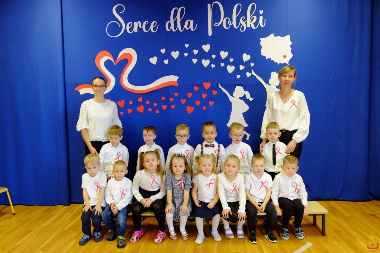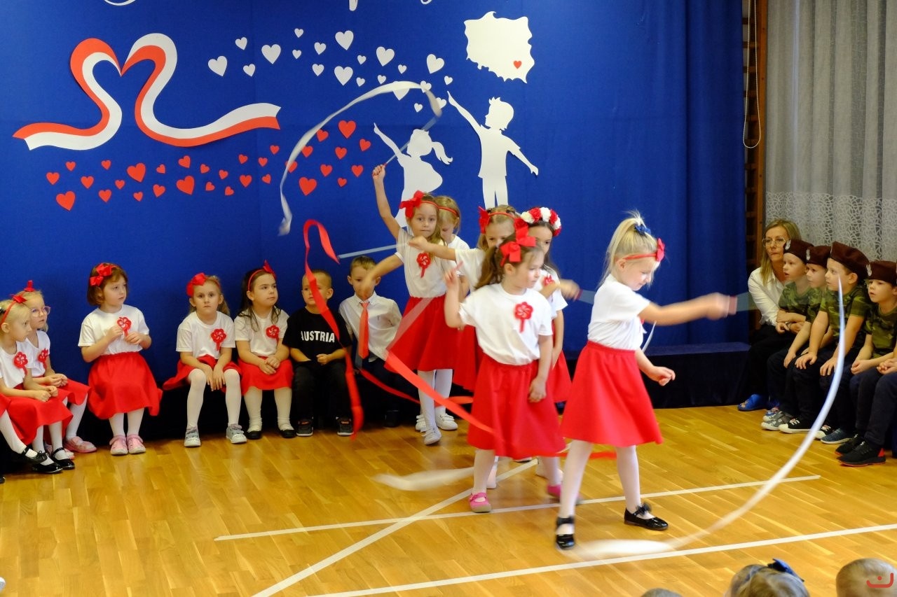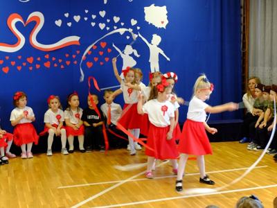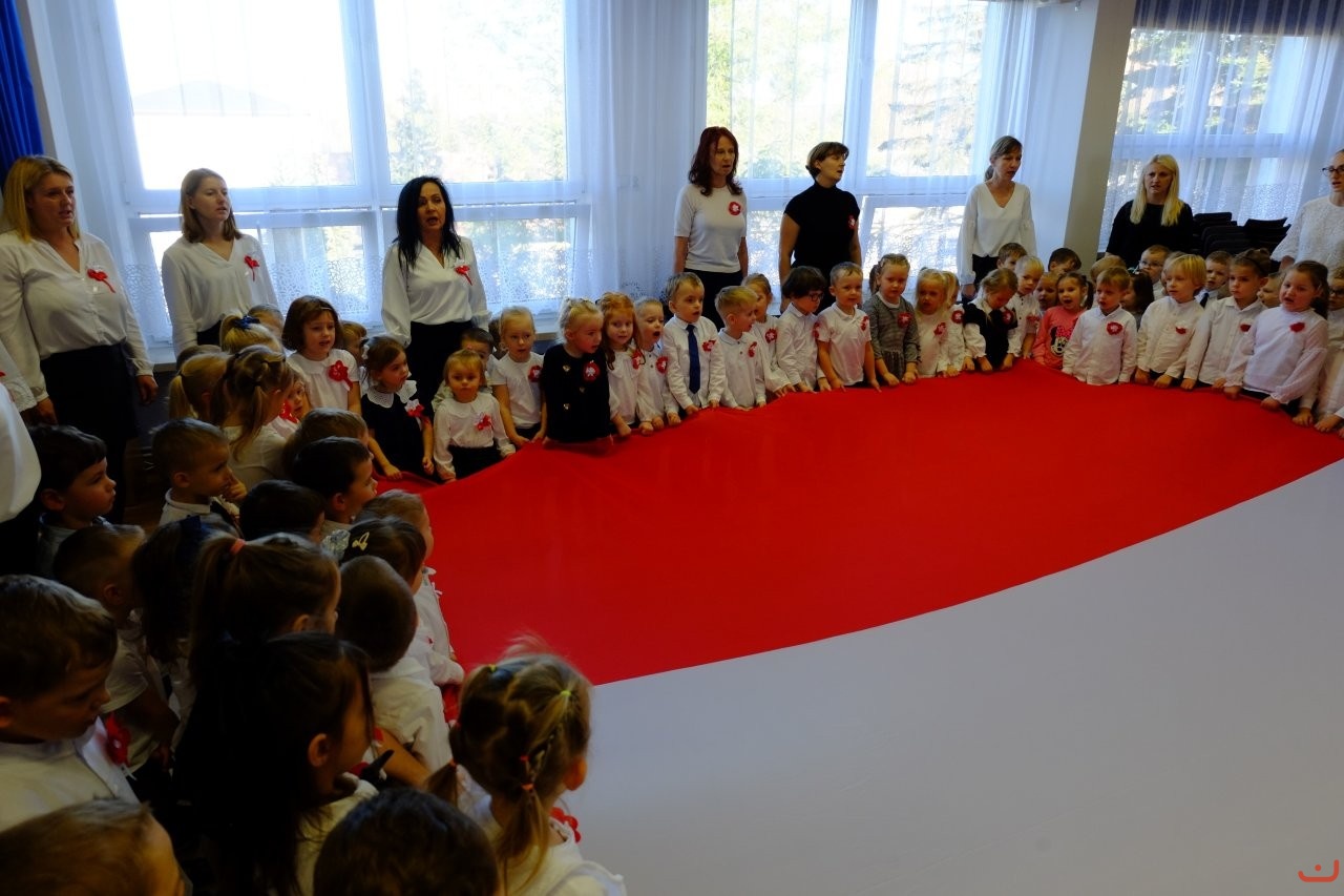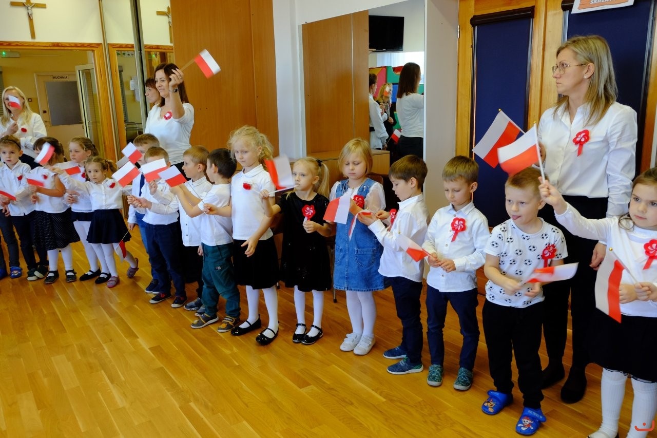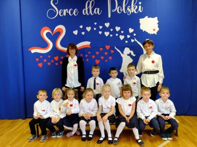 Pielęgnując tradycje oraz patriotyzm u dzieci, w dniu 7 listopada 2025 roku w Przedszkolu Samorządowym uroczyście obchodziliśmy 107. rocznicę odzyskania niepodległości przez nasz kraj. Z tej okazji odbyła się uroczystość, podczas której dzieci z dumą uczciły pamięć o tych, którzy walczyli o wolność Polski. Od rana w salach panował wyjątkowy, patriotyczny nastrój. Przedszkolaki przyszły ubrane w galowe stroje. W nastrój tego dnia wprowadziły nas pieśni patriotyczne, które rozbrzmiewały w holu przedszkola. W godzinach dopołudniowych cała społeczność przedszkolna, personel oraz zaproszeni Rodzice zebrali się na sali gimnastycznej, aby uroczyście świętować. Wszyscy z powagą i w skupieniu obejrzeli montaż słowno-muzyczny pt:"Serce dla Polski" przygotowany przez grupę Delfinki. Starszaki słowami wierszy, piosenkami patriotycznymi i tańcem oddały szacunek symbolom narodowym, symbolom walki o wolność i zwycięstwo oraz okazały miłość do Ojczyzny. Każdy przedszkolak z dumą w sercu odśpiewał hymn „Mazurek Dąbrowskiego”. Była to prawdziwa lekcja historii i patriotyzmu. Tego dnia wzięliśmy udział w akcji MEN „ Szkoła Do Hymnu” i o symbolicznej godzinie 11.11 odśpiewaliśmy hymn. Był to wyjątkowy i wzruszający dzień, który na długo pozostanie w sercach przedszkolaków i przyczyni się do kształtowania patriotycznych postaw.