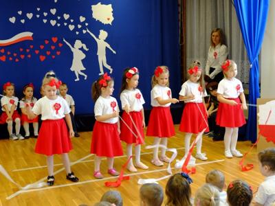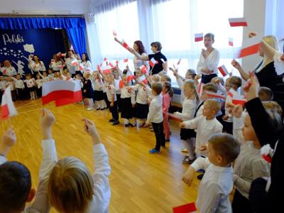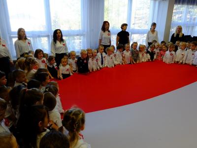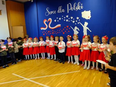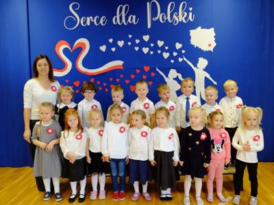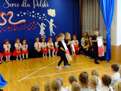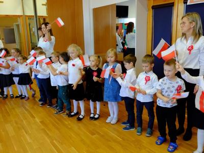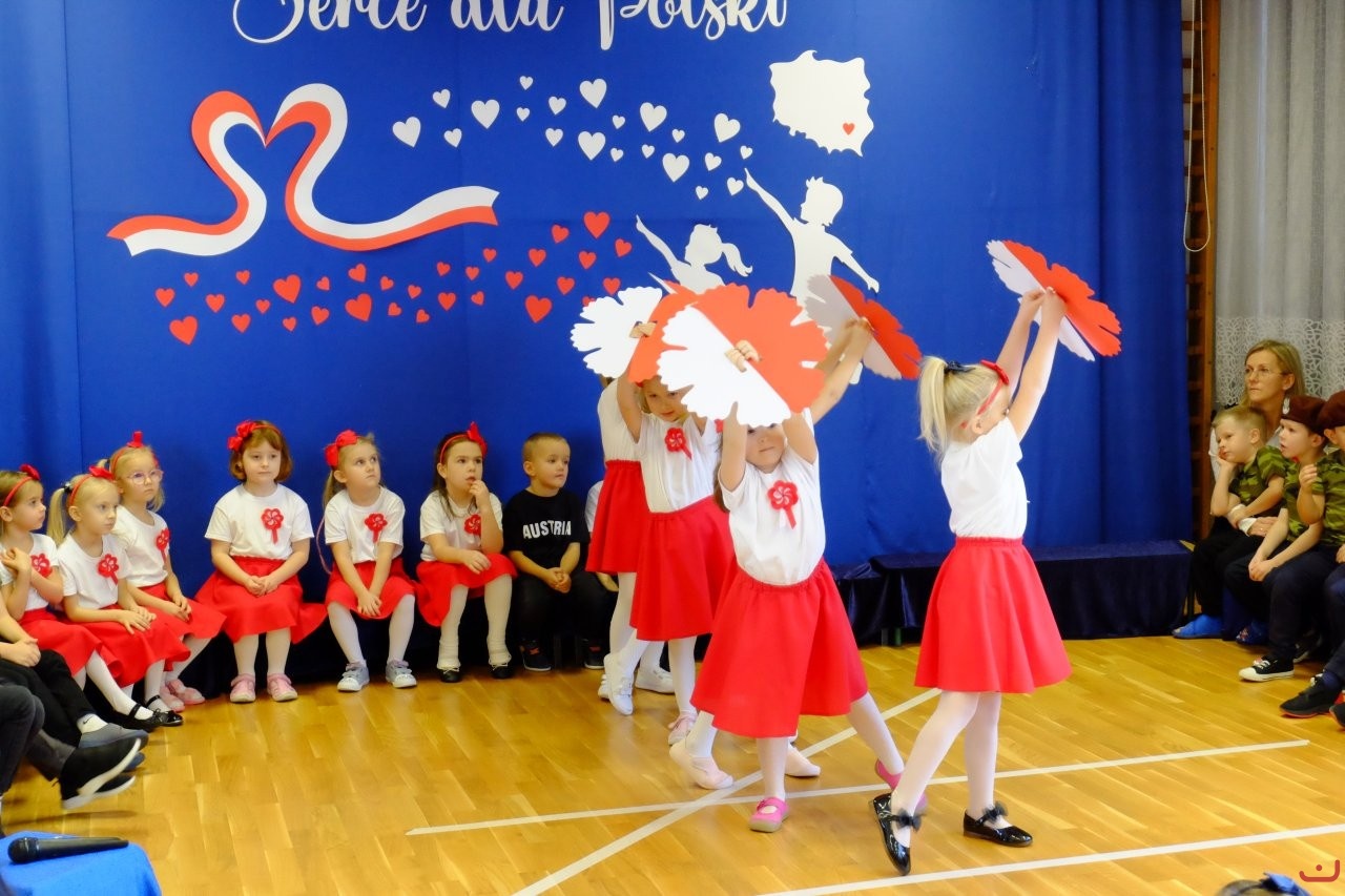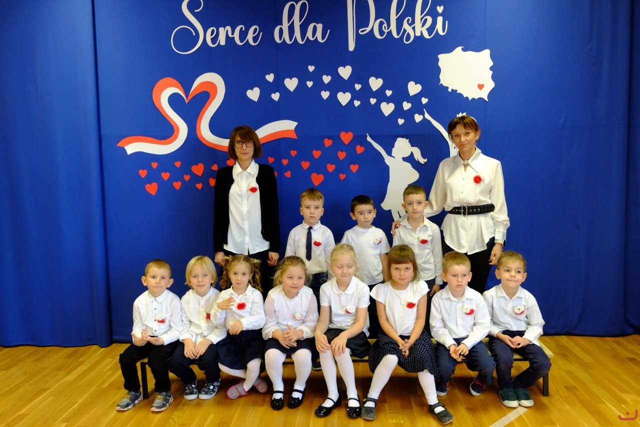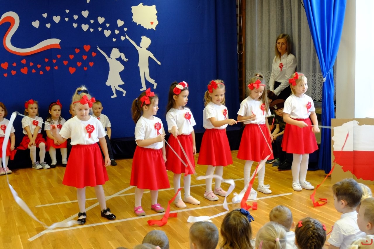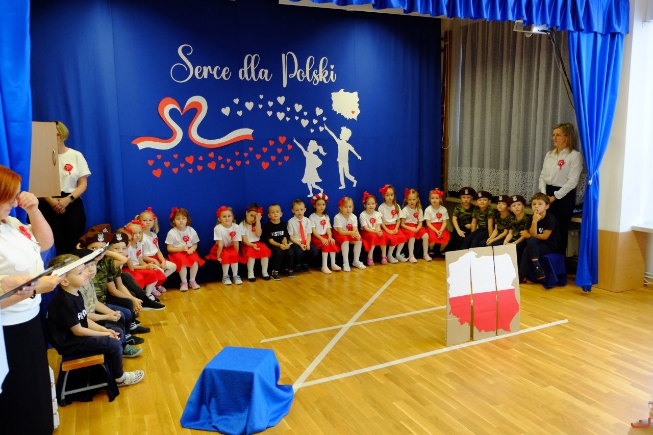 Pielęgnując tradycje oraz patriotyzm u dzieci, w dniu 7 listopada 2025 roku w Przedszkolu Samorządowym uroczyście obchodziliśmy 107. rocznicę odzyskania niepodległości przez nasz kraj. Z tej okazji odbyła się uroczystość, podczas której dzieci z dumą uczciły pamięć o tych, którzy walczyli o wolność Polski. Od rana w salach panował wyjątkowy, patriotyczny nastrój. Przedszkolaki przyszły ubrane w galowe stroje. W nastrój tego dnia wprowadziły nas pieśni patriotyczne, które rozbrzmiewały w holu przedszkola. W godzinach dopołudniowych cała społeczność przedszkolna, personel oraz zaproszeni Rodzice zebrali się na sali gimnastycznej, aby uroczyście świętować. Wszyscy z powagą i w skupieniu obejrzeli montaż słowno-muzyczny pt:"Serce dla Polski" przygotowany przez grupę Delfinki. Starszaki słowami wierszy, piosenkami patriotycznymi i tańcem oddały szacunek symbolom narodowym, symbolom walki o wolność i zwycięstwo oraz okazały miłość do Ojczyzny. Każdy przedszkolak z dumą w sercu odśpiewał hymn „Mazurek Dąbrowskiego”. Była to prawdziwa lekcja historii i patriotyzmu. Tego dnia wzięliśmy udział w akcji MEN „ Szkoła Do Hymnu” i o symbolicznej godzinie 11.11 odśpiewaliśmy hymn. Był to wyjątkowy i wzruszający dzień, który na długo pozostanie w sercach przedszkolaków i przyczyni się do kształtowania patriotycznych postaw.