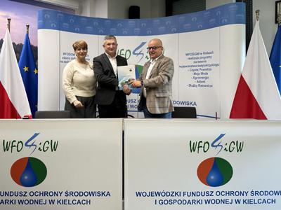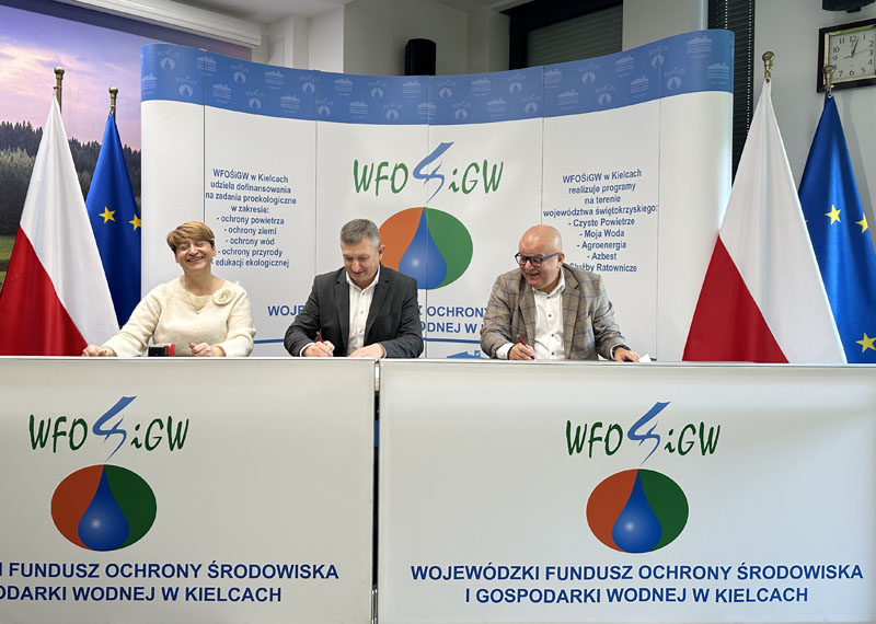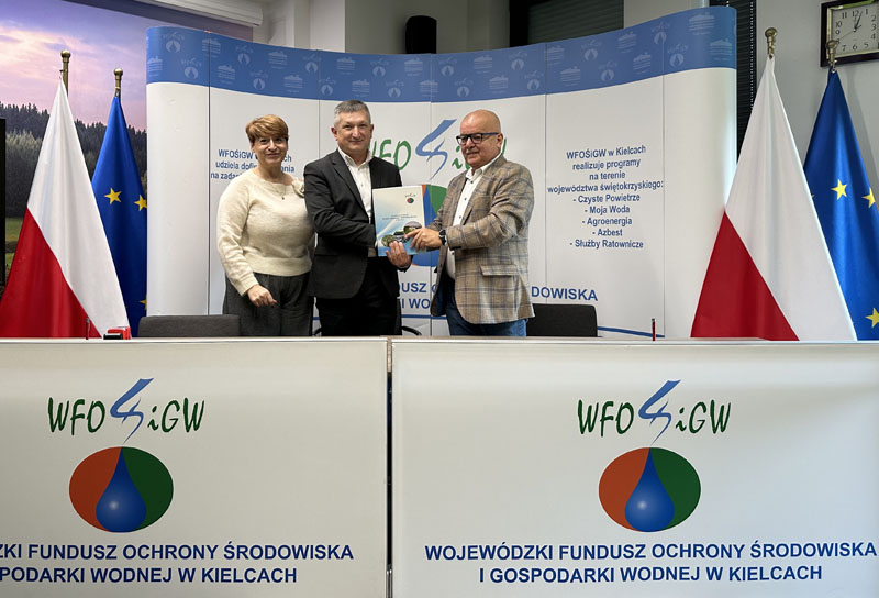 W dniu 13 listopada 2025 r. w siedzibie Wojewódzkiego Funduszu Ochrony Środowiska i Gospodarki Wodnej w Kielcach Prezes Zarządu Wojewódzkiego Funduszu Ochrony Środowiska i Gospodarki Wodnej w Kielcach Pan Jacek Skórski i Burmistrz Miasta i Gminy Suchedniów Pan Dariusz Miernik wraz ze Skarbnikiem Panią Dorotą Dyką podpisali umowę w ramach „Ogólnopolskiego programu finansowania służb ratowniczych Część 3) Modernizacja energetyczna budynków Ochotniczych Straży Pożarnych” na realizację zadania pn. „Termomodernizacja budynku OSP Suchedniów”, które zostanie dofinansowane w formie dotacji do 276.278,00 zł.