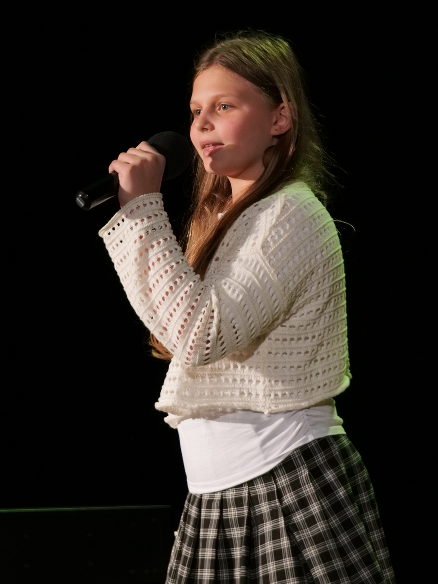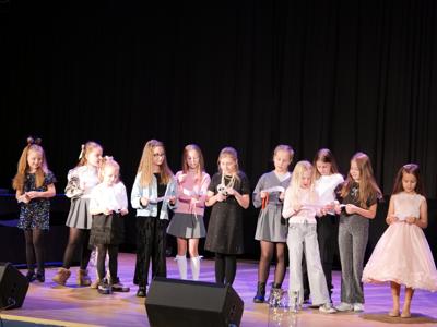 Na scenie sali widowiskowej zobaczyliśmy i wysłuchali pięknego wykonania utworów następujących artystów: Michalina Barzyk, Alicja Jaworska, Karolina Pająk, Alicja Skiba, duet Aurelia Rędzia i Roma Korytowska, Konstancja Herman, Franciszek Ochab (zagrał na pianinie pięć utworów), Oliwia Kozłowska, duet Alicja Kabała i Rozalia Rędzia, Michalina Kocia, Lena Rymarczyk, Kamila Guza (przepięknie zaśpiewała utwór „Kantyczka z lotu ptaka” Jacka Kaczmarskiego), Alicja Prońko, Laura Gabrala, Maja Odorowska, Anna Kowalik, Nadia Zielińska (śpiew i gra na pianinie z akompaniamentem Malwiny Ozimskiej), Weronika Pokrzywińska i Paulina Antoniak.