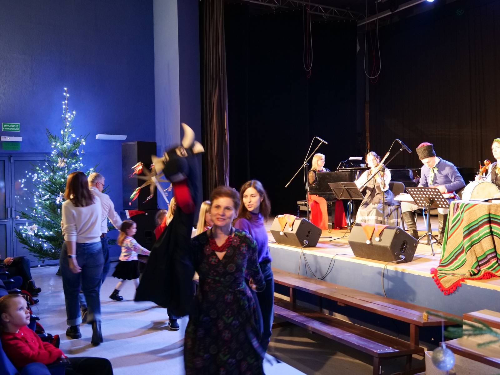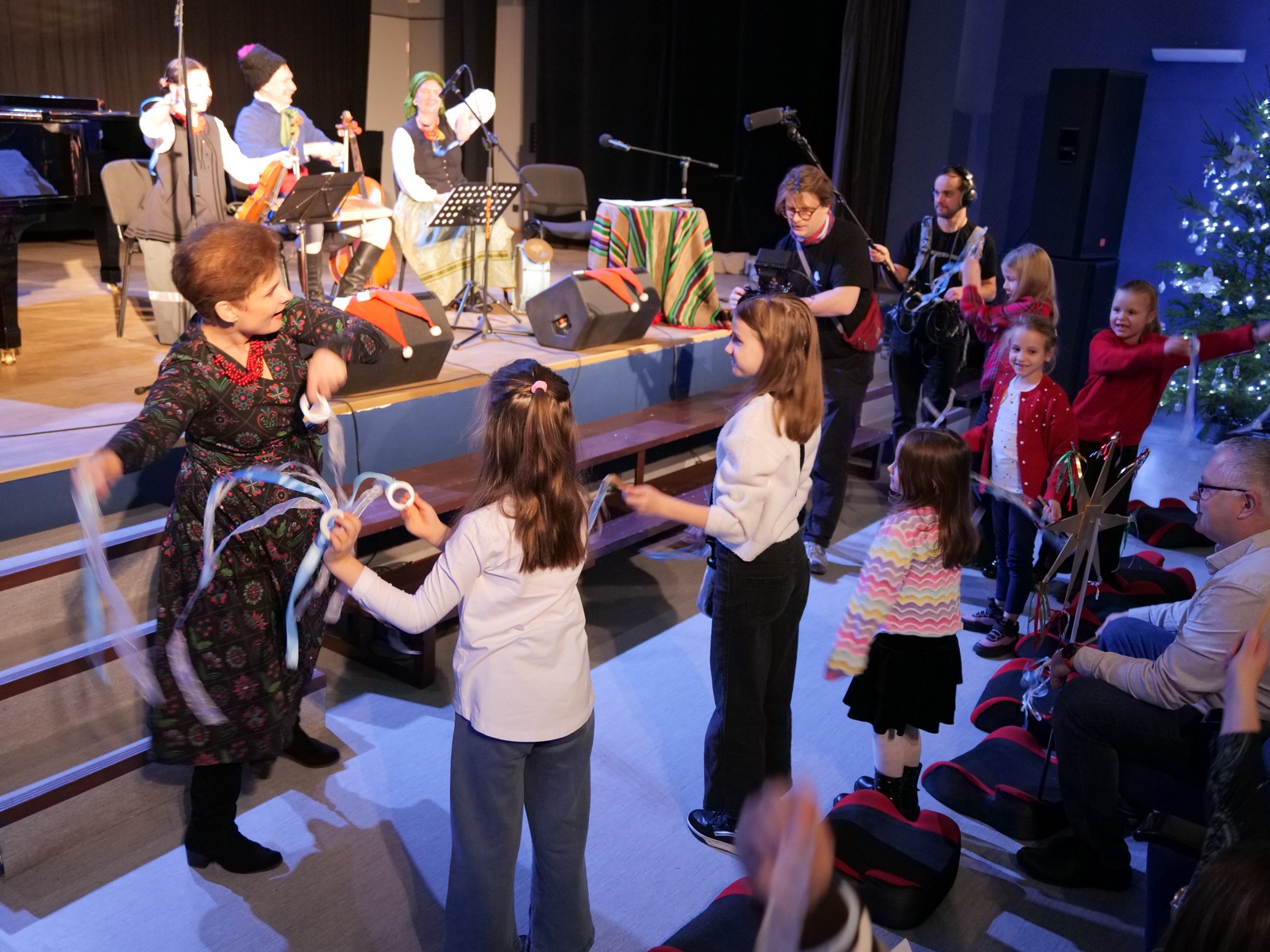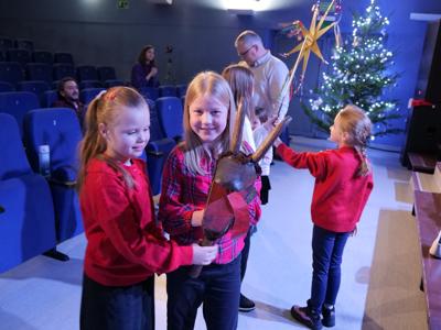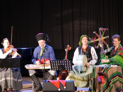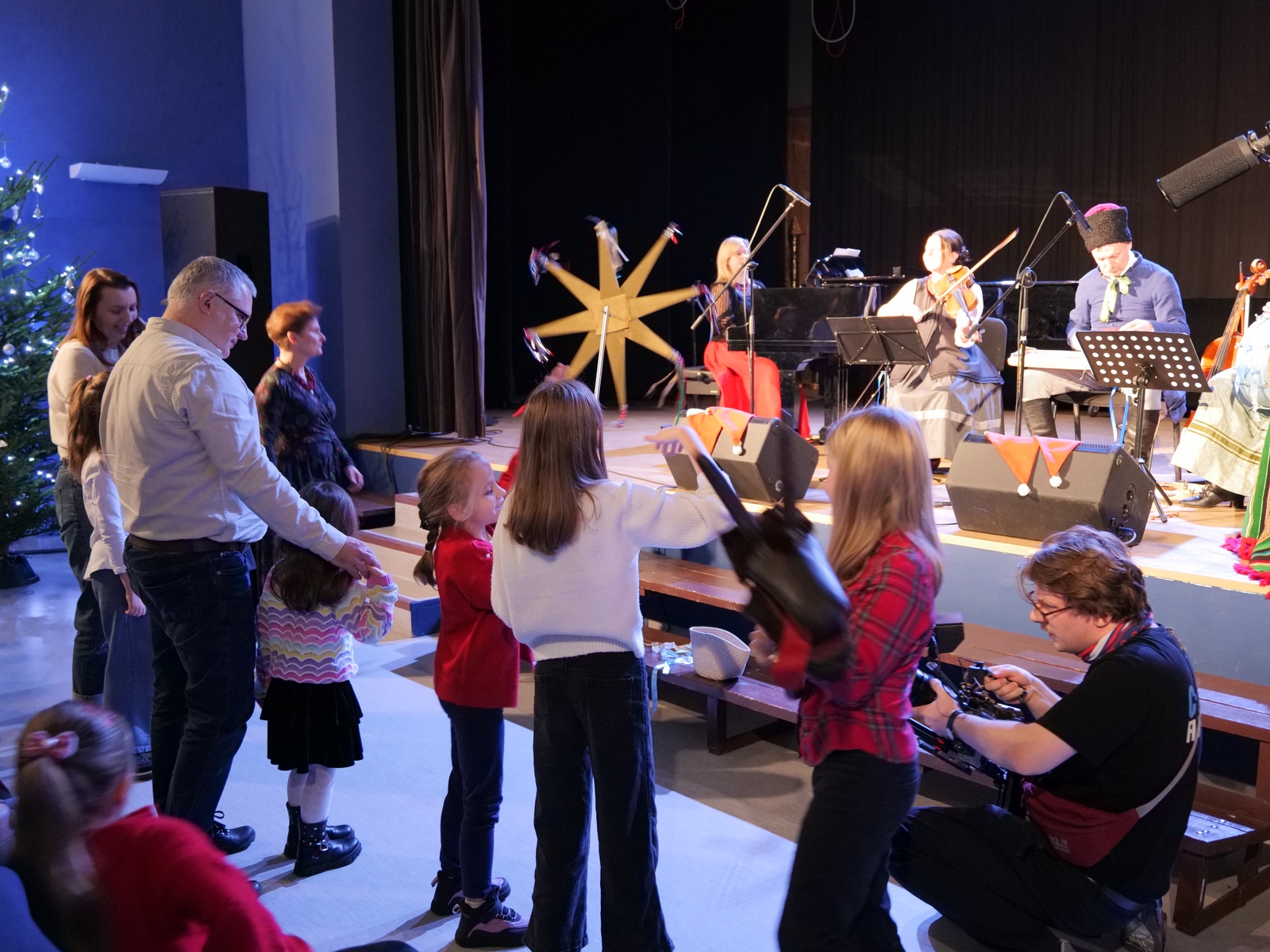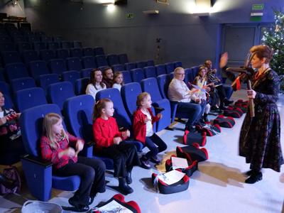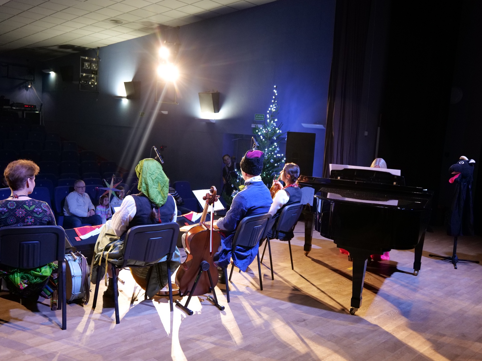 W ramach „Kolędowania z Fryckiem”, w sali widowiskowej wystąpili: Katarzyna Hushta - fortepian. Olena Yeremenko – skrzypce, Serhij Postolnikov - basy, skrzypce, Agata Weber - baraban, bęben obręczowy oraz Aleksandra Tkaczyk – scenariusz, słowo o muzyce, wspólne kolędowanie. Wysłuchaliśmy krótkiej opowieść o tradycji kolędowania domowego, słuchaliśmy utworów Fryderyka Chopina granych oraz tradycyjnych kolęd wykonywanych. Była to też okazja do wspólnego muzykowania i śpiewanie dawnych pastorałek i kolęd, a nawet ich… zatańczenia!