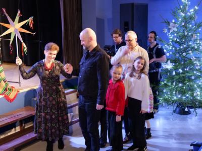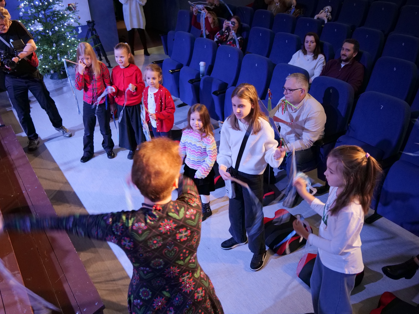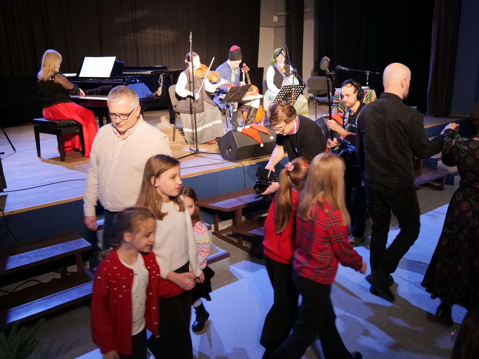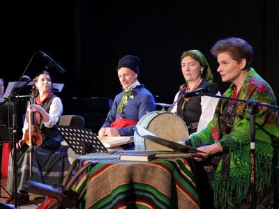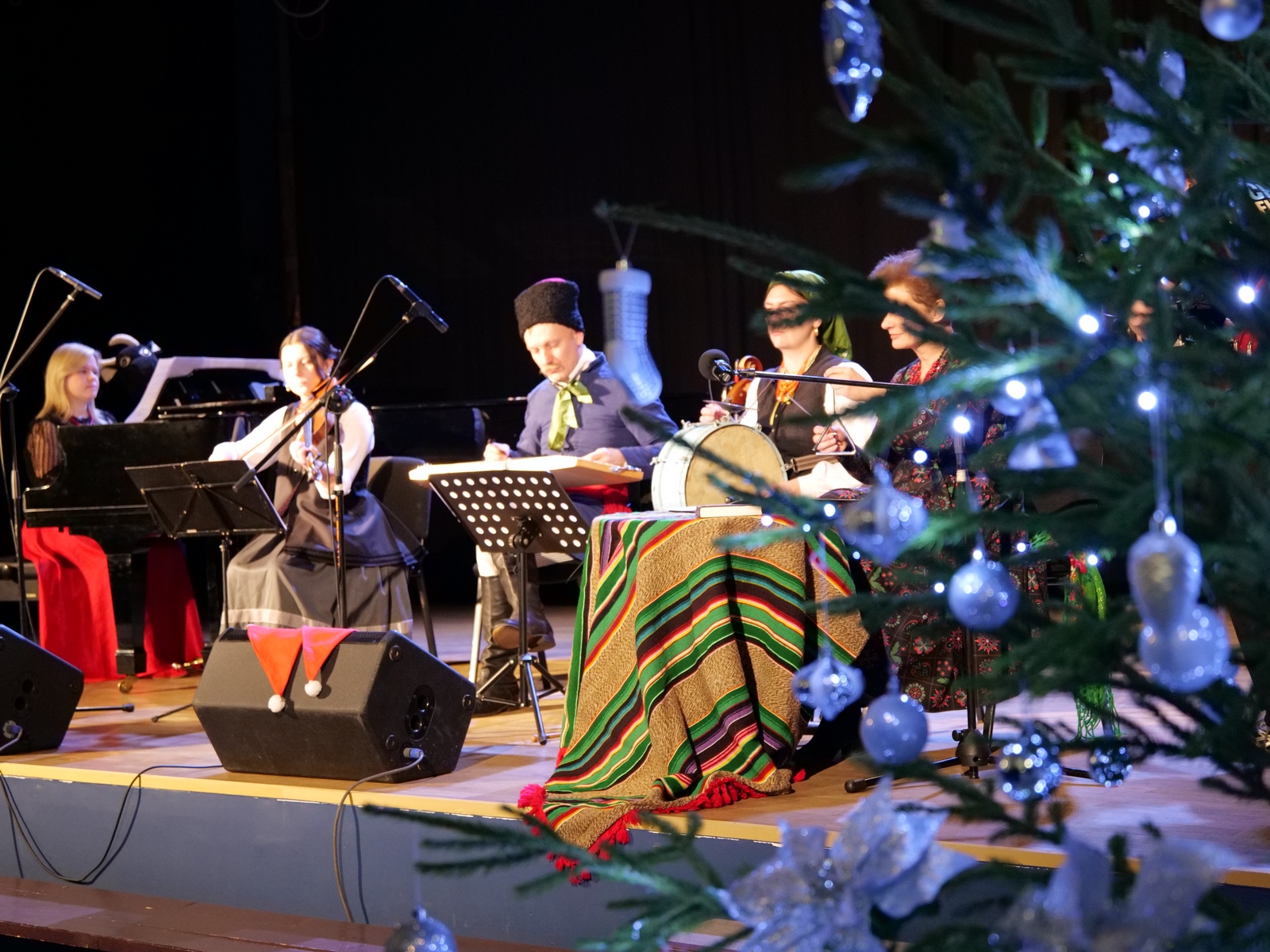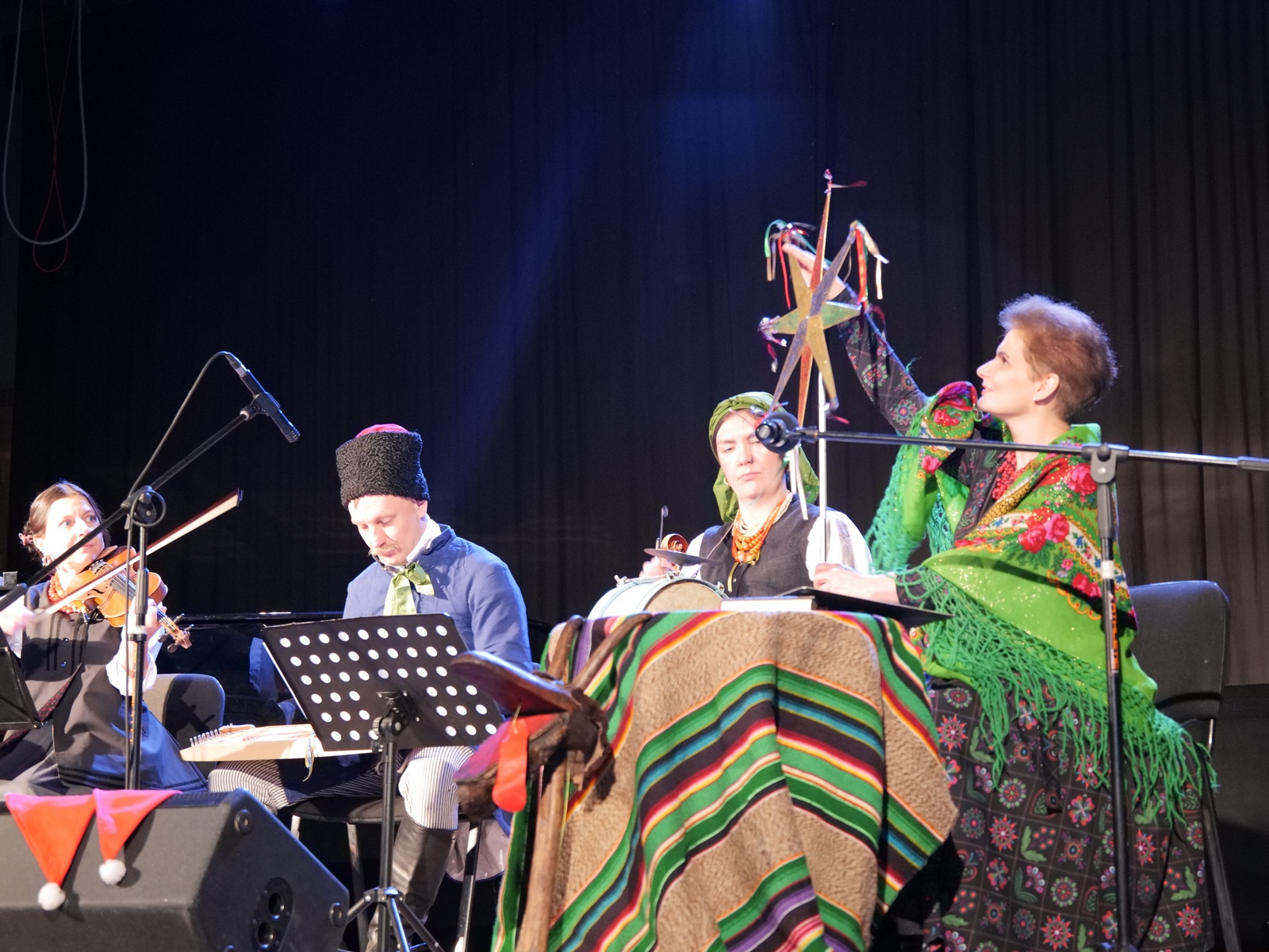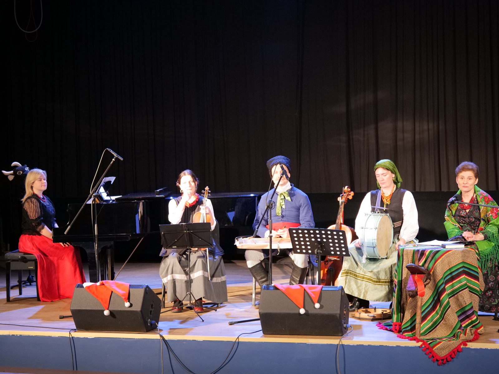 W ramach „Kolędowania z Fryckiem”, w sali widowiskowej wystąpili: Katarzyna Hushta - fortepian. Olena Yeremenko – skrzypce, Serhij Postolnikov - basy, skrzypce, Agata Weber - baraban, bęben obręczowy oraz Aleksandra Tkaczyk – scenariusz, słowo o muzyce, wspólne kolędowanie. Wysłuchaliśmy krótkiej opowieść o tradycji kolędowania domowego, słuchaliśmy utworów Fryderyka Chopina granych oraz tradycyjnych kolęd wykonywanych. Była to też okazja do wspólnego muzykowania i śpiewanie dawnych pastorałek i kolęd, a nawet ich… zatańczenia!