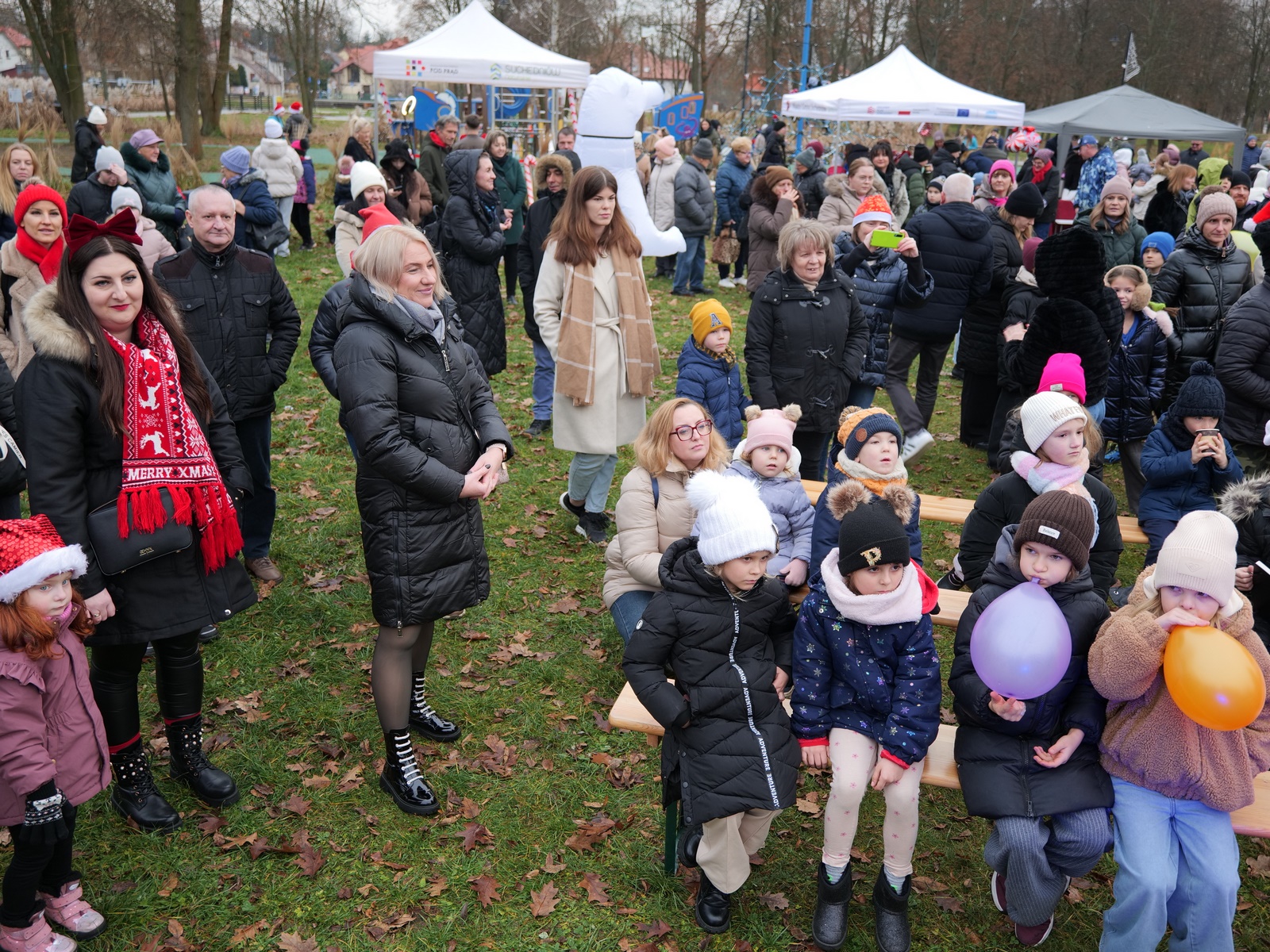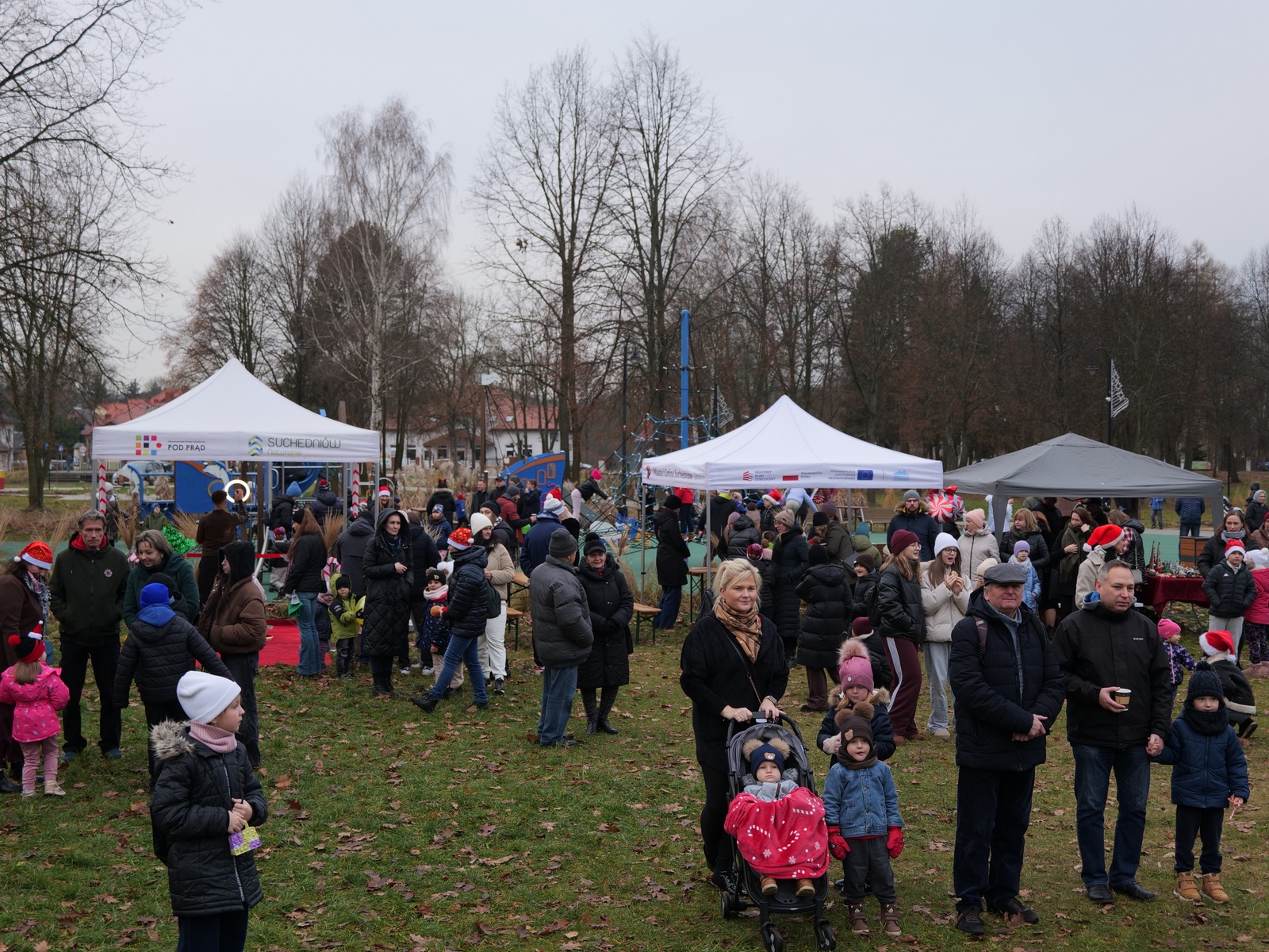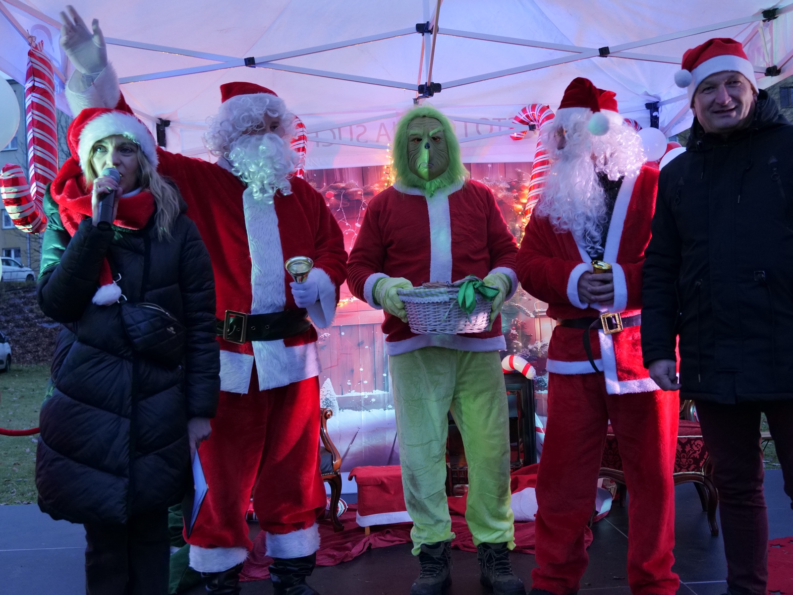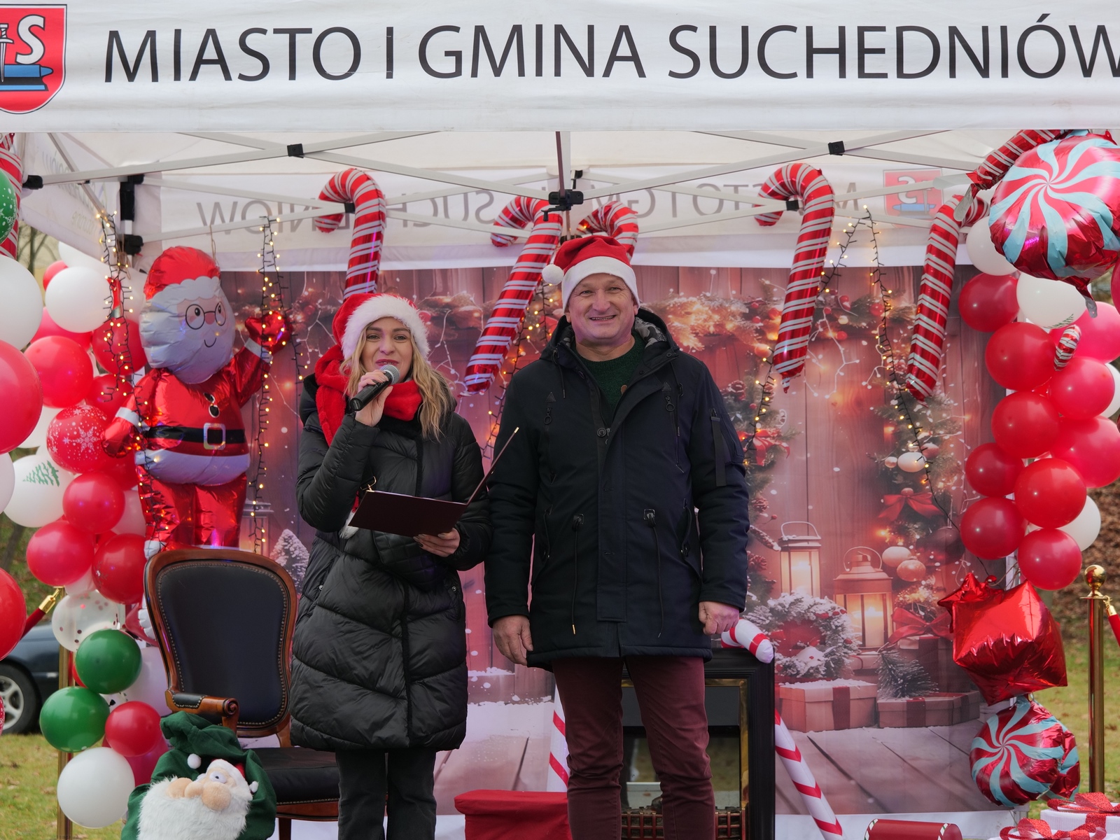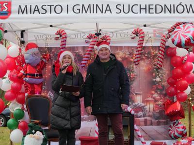 Tuż po 14.00 sygnał do rozpoczęcia zabawy dał burmistrz Dariusz Miernik, a prowadzenie wydarzenia przejęła perfekcyjna jak zwykle Katarzyna Michta-Połeć. Wkrótce do parku przybyli… czterej Mikołajowie, w tym jeden z Ukrainy i jeden maskotka oraz biały Niedźwiedź. Z ich rąk do dzieciaków popłynęły prezenty i upominki, robiono sobie z nimi pamiątkowe fotografie. Była też loteria fantowa, warsztaty malowania pierniczków przygotowane przez KGW Ostojów plus kakao z piankami i zimowa herbatka, czyli idealny zimowy zestaw! Koło Gospodyń Wiejskich Ostojów. Antek Bolechowski stawił się z Fotobudką 360, gdzie kręcono szalone świąteczne filmiki w przebraniach. Kluby Seniora w Suchedniowie i w Michniowie przygotowały słodkie przekąski, była kKiełbaska z koksownika , a od Piekarni „Jedynka” pyszne rogaliki. Kraina Szczęścia przyjechała z cudowną, podświetlaną karuzelą, a animacje ruchowe poprowadzili niezastąpieni Agnieszka Fidelak i Jacek ze Stacji Dobra Zabawa. Pojawił się też ten zły, czyli Grinch, ale tym razem zabawy nie udało my się zepsuć. Kulminacyjnym momentem było zapalnie świątecznej choinki.