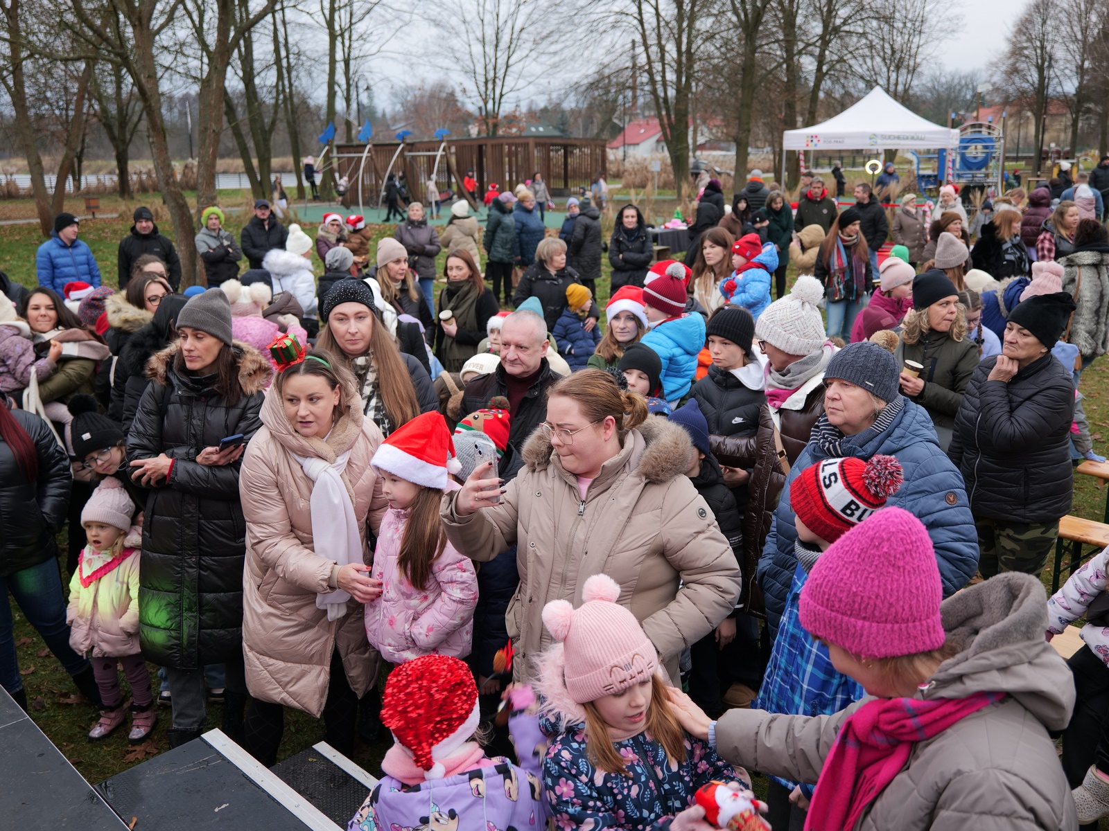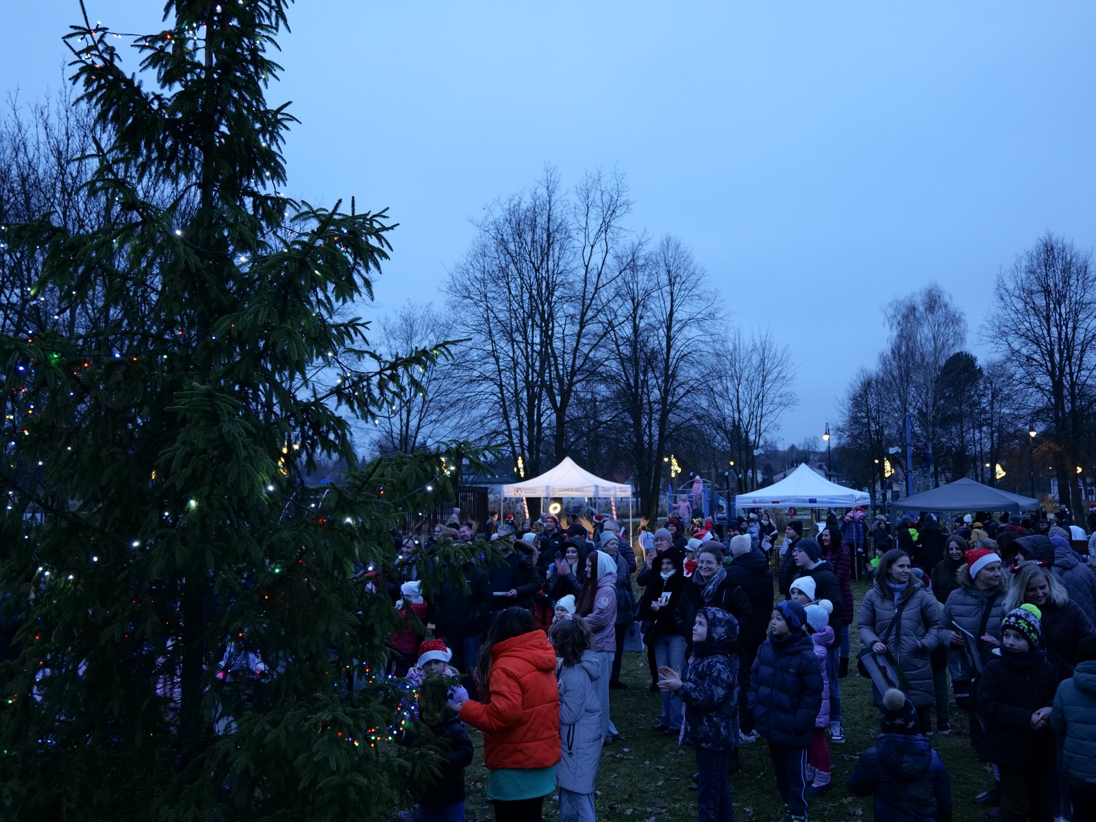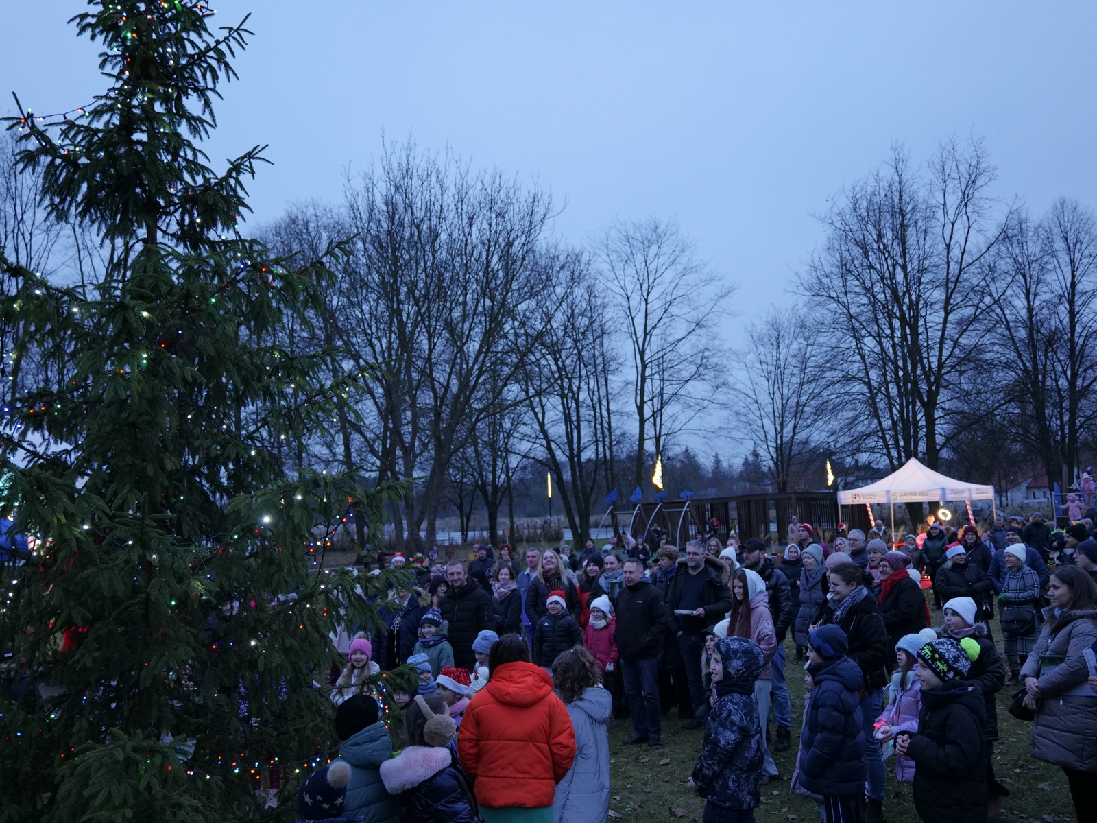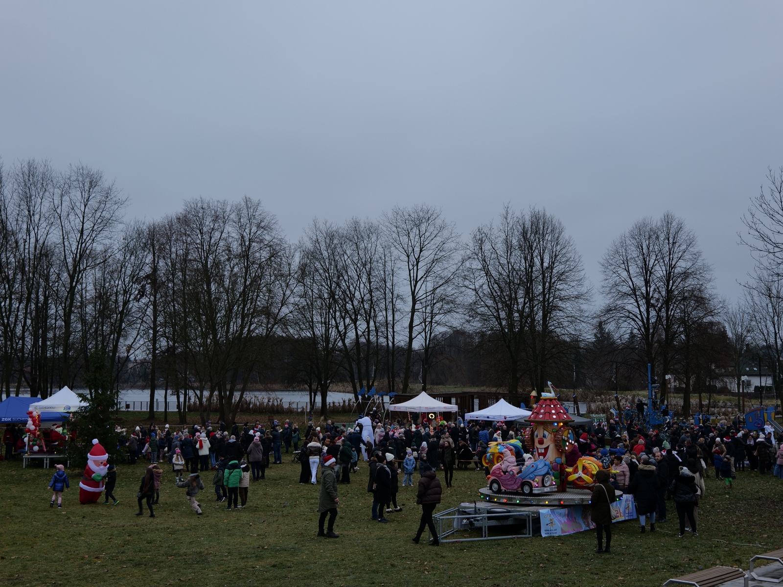 Tuż po 14.00 sygnał do rozpoczęcia zabawy dał burmistrz Dariusz Miernik, a prowadzenie wydarzenia przejęła perfekcyjna jak zwykle Katarzyna Michta-Połeć. Wkrótce do parku przybyli… czterej Mikołajowie, w tym jeden z Ukrainy i jeden maskotka oraz biały Niedźwiedź. Z ich rąk do dzieciaków popłynęły prezenty i upominki, robiono sobie z nimi pamiątkowe fotografie. Była też loteria fantowa, warsztaty malowania pierniczków przygotowane przez KGW Ostojów plus kakao z piankami i zimowa herbatka, czyli idealny zimowy zestaw! Koło Gospodyń Wiejskich Ostojów. Antek Bolechowski stawił się z Fotobudką 360, gdzie kręcono szalone świąteczne filmiki w przebraniach. Kluby Seniora w Suchedniowie i w Michniowie przygotowały słodkie przekąski, była kKiełbaska z koksownika , a od Piekarni „Jedynka” pyszne rogaliki. Kraina Szczęścia przyjechała z cudowną, podświetlaną karuzelą, a animacje ruchowe poprowadzili niezastąpieni Agnieszka Fidelak i Jacek ze Stacji Dobra Zabawa. Pojawił się też ten zły, czyli Grinch, ale tym razem zabawy nie udało my się zepsuć. Kulminacyjnym momentem było zapalnie świątecznej choinki.