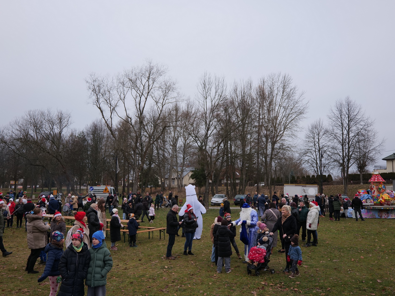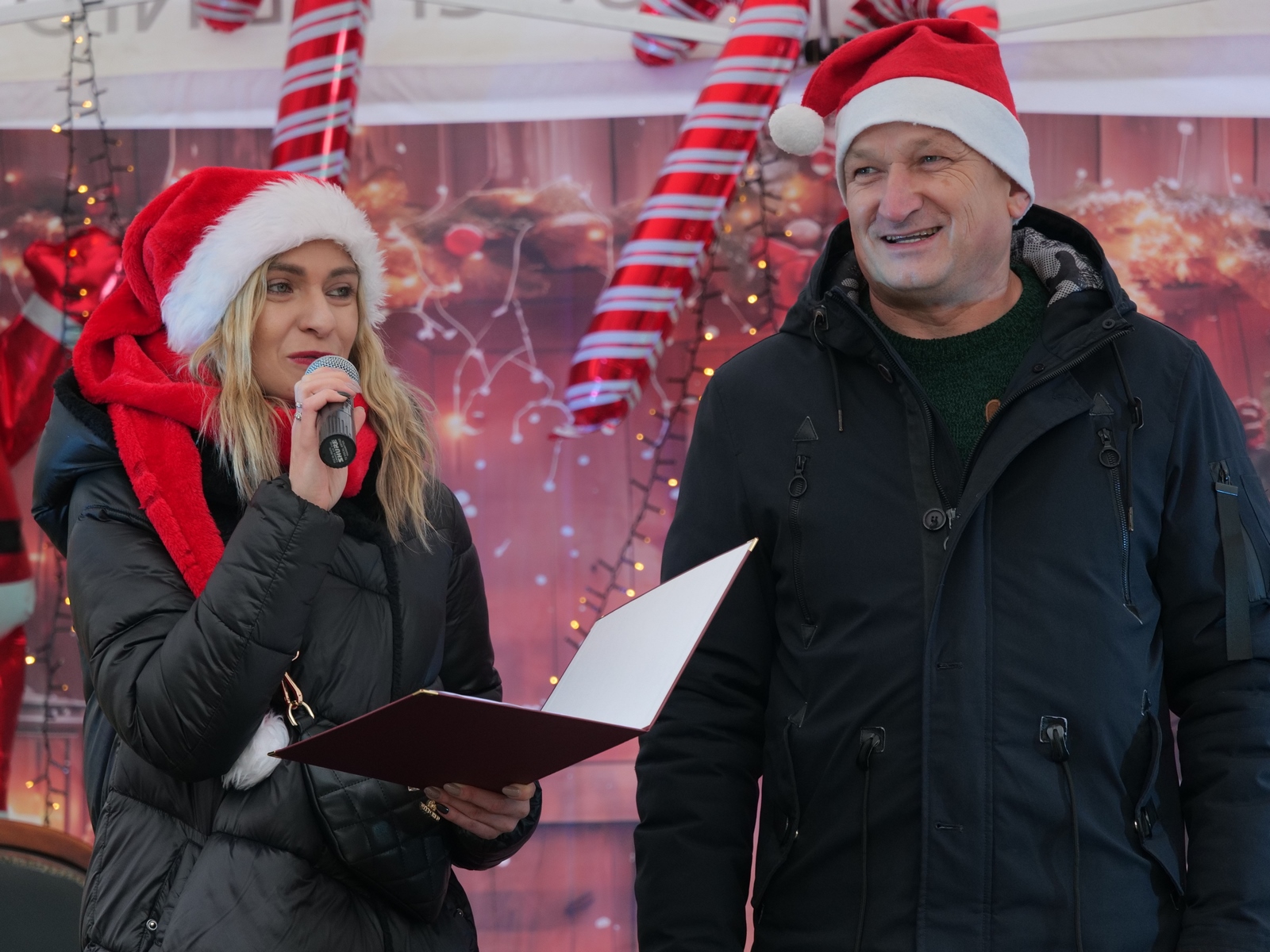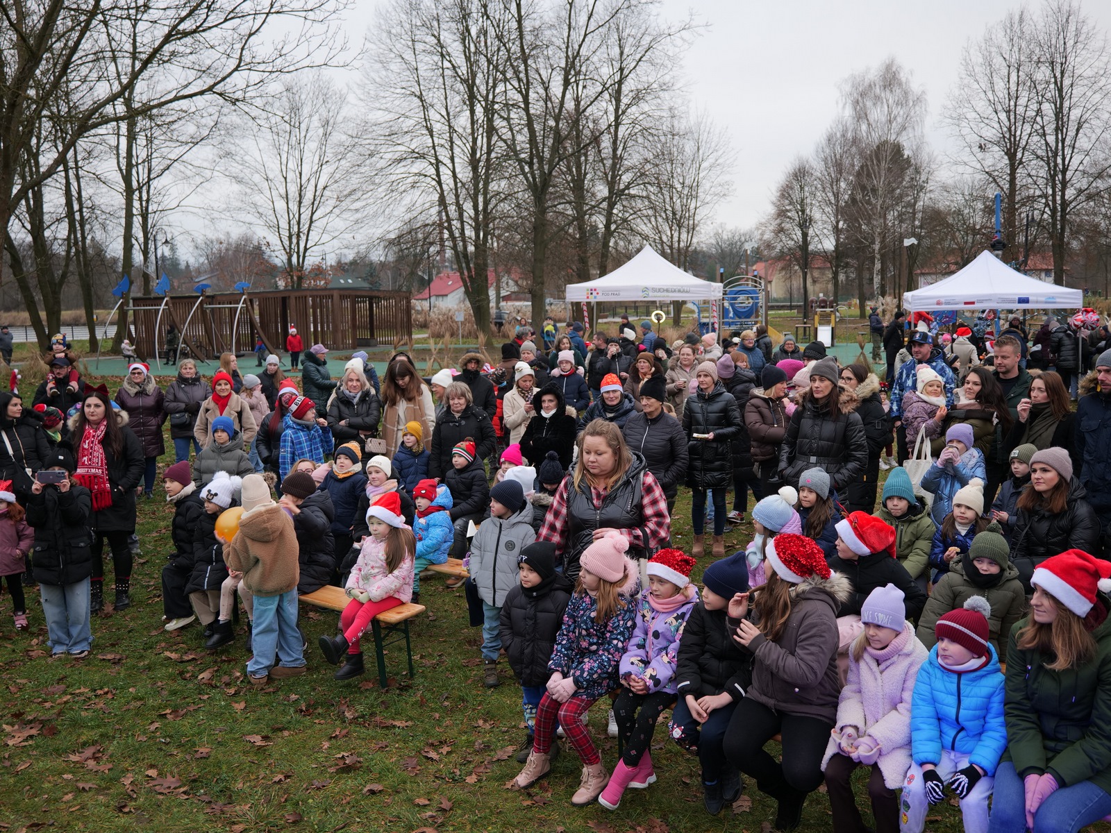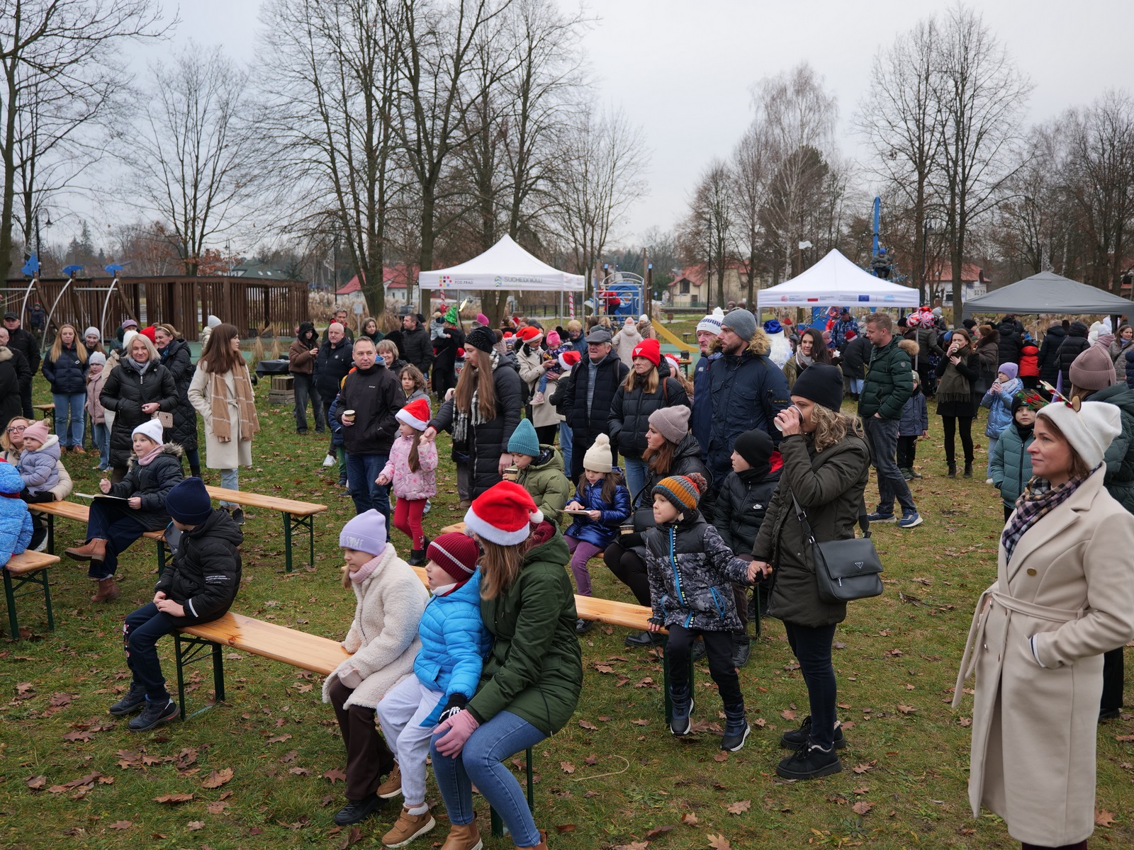 Tuż po 14.00 sygnał do rozpoczęcia zabawy dał burmistrz Dariusz Miernik, a prowadzenie wydarzenia przejęła perfekcyjna jak zwykle Katarzyna Michta-Połeć. Wkrótce do parku przybyli… czterej Mikołajowie, w tym jeden z Ukrainy i jeden maskotka oraz biały Niedźwiedź. Z ich rąk do dzieciaków popłynęły prezenty i upominki, robiono sobie z nimi pamiątkowe fotografie. Była też loteria fantowa, warsztaty malowania pierniczków przygotowane przez KGW Ostojów plus kakao z piankami i zimowa herbatka, czyli idealny zimowy zestaw! Koło Gospodyń Wiejskich Ostojów. Antek Bolechowski stawił się z Fotobudką 360, gdzie kręcono szalone świąteczne filmiki w przebraniach. Kluby Seniora w Suchedniowie i w Michniowie przygotowały słodkie przekąski, była kKiełbaska z koksownika , a od Piekarni „Jedynka” pyszne rogaliki. Kraina Szczęścia przyjechała z cudowną, podświetlaną karuzelą, a animacje ruchowe poprowadzili niezastąpieni Agnieszka Fidelak i Jacek ze Stacji Dobra Zabawa. Pojawił się też ten zły, czyli Grinch, ale tym razem zabawy nie udało my się zepsuć. Kulminacyjnym momentem było zapalnie świątecznej choinki.