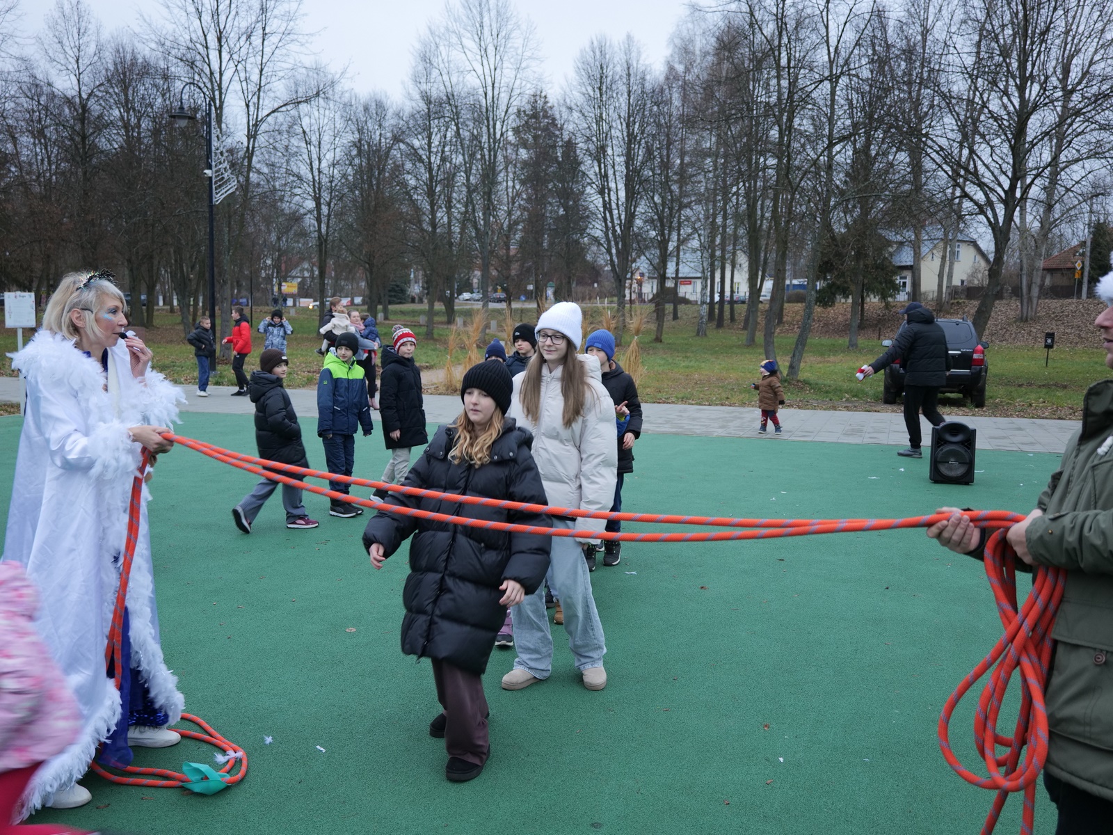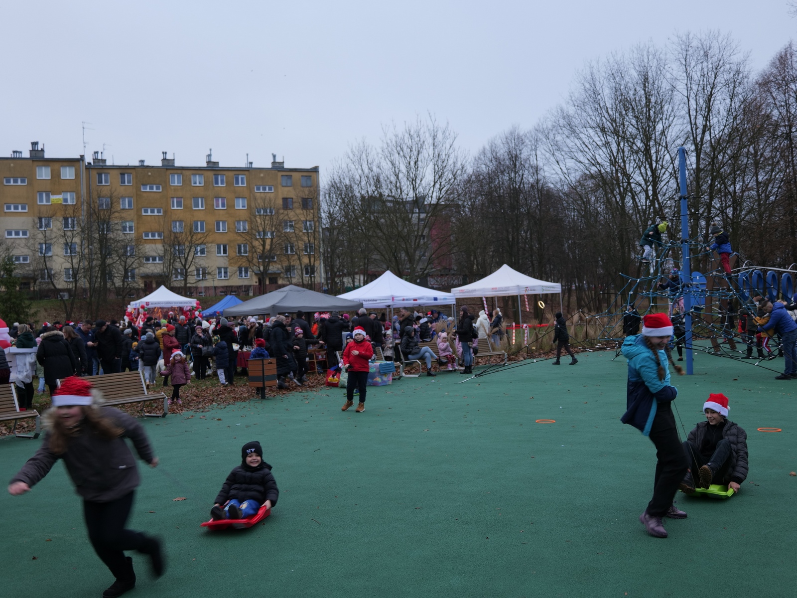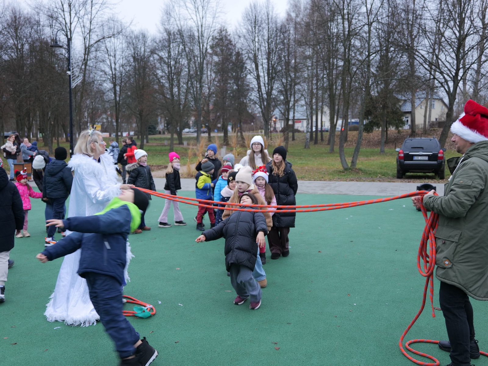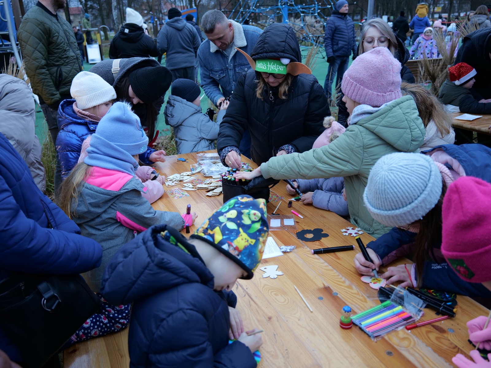 Tuż po 14.00 sygnał do rozpoczęcia zabawy dał burmistrz Dariusz Miernik, a prowadzenie wydarzenia przejęła perfekcyjna jak zwykle Katarzyna Michta-Połeć. Wkrótce do parku przybyli… czterej Mikołajowie, w tym jeden z Ukrainy i jeden maskotka oraz biały Niedźwiedź. Z ich rąk do dzieciaków popłynęły prezenty i upominki, robiono sobie z nimi pamiątkowe fotografie. Była też loteria fantowa, warsztaty malowania pierniczków przygotowane przez KGW Ostojów plus kakao z piankami i zimowa herbatka, czyli idealny zimowy zestaw! Koło Gospodyń Wiejskich Ostojów. Antek Bolechowski stawił się z Fotobudką 360, gdzie kręcono szalone świąteczne filmiki w przebraniach. Kluby Seniora w Suchedniowie i w Michniowie przygotowały słodkie przekąski, była kKiełbaska z koksownika , a od Piekarni „Jedynka” pyszne rogaliki. Kraina Szczęścia przyjechała z cudowną, podświetlaną karuzelą, a animacje ruchowe poprowadzili niezastąpieni Agnieszka Fidelak i Jacek ze Stacji Dobra Zabawa. Pojawił się też ten zły, czyli Grinch, ale tym razem zabawy nie udało my się zepsuć. Kulminacyjnym momentem było zapalnie świątecznej choinki.