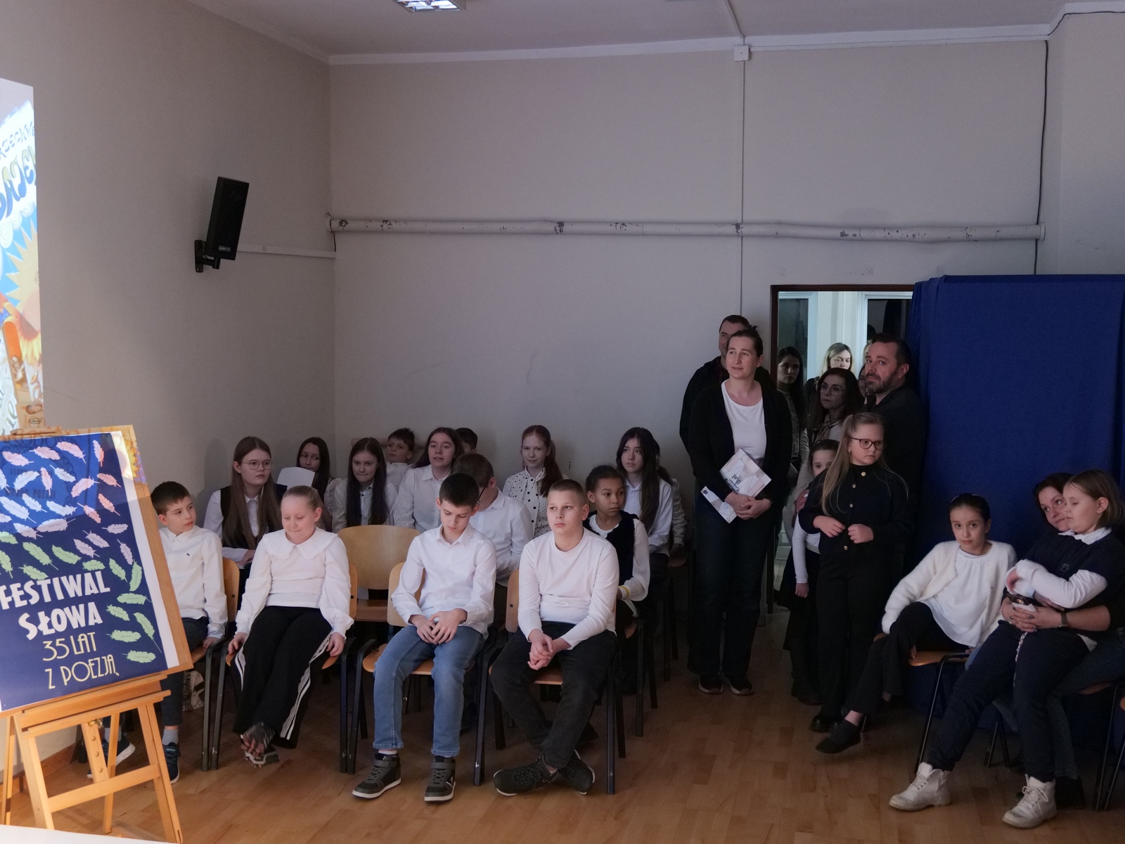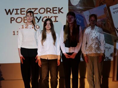 Z okazji Jubileuszowego XXXV Wojewódzkiego Konkursu Recytatorskiego im. Wandy Łyczkowskiej „Festiwal słowa. 35 lat z poezją”, 11 grudnia w Szkole Podstawowej w Ostojowie odbył się „Wieczorek poetycki”, którego uczestników powitała dyrektor szkoły Hanna Miernik.