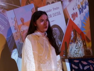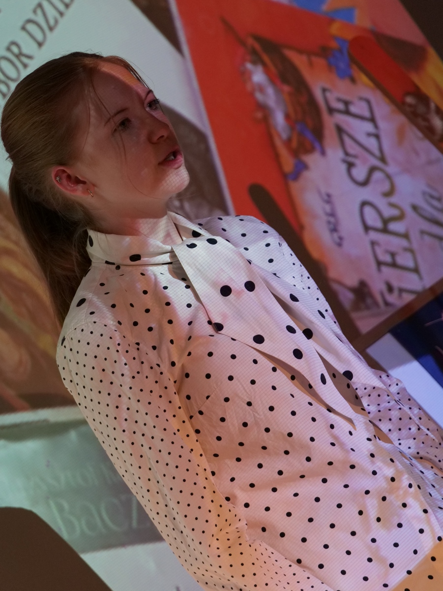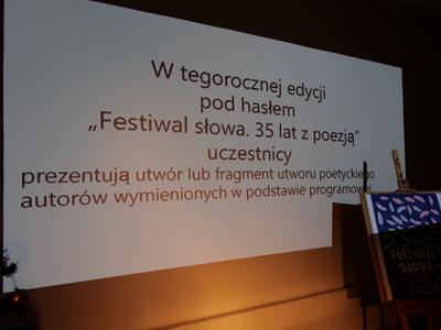 Festiwal, w którym swe umiejętności recytatorskie zaprezentowali niemal wszyscy uczniowie szkoły, poprowadziła polonistka Agnieszka Witczak. Gościem specjalnym była Lajsan Kalmietjewa, jedna z laureatek tegorocznego, 52 Ogólnopolskiego Konkursu Recytatorskiego imienia Leopolda Staffa w Skarżysku – Kamiennej. Zgromadzona publiczność wysłuchała jej wzruszającej interpretacji wiersza czeskiego poety Franciszka Halasy w tłumaczeniu Konstantego Ildefonsa Gałczyńskiego pt. „Ja tam powrócę”.
