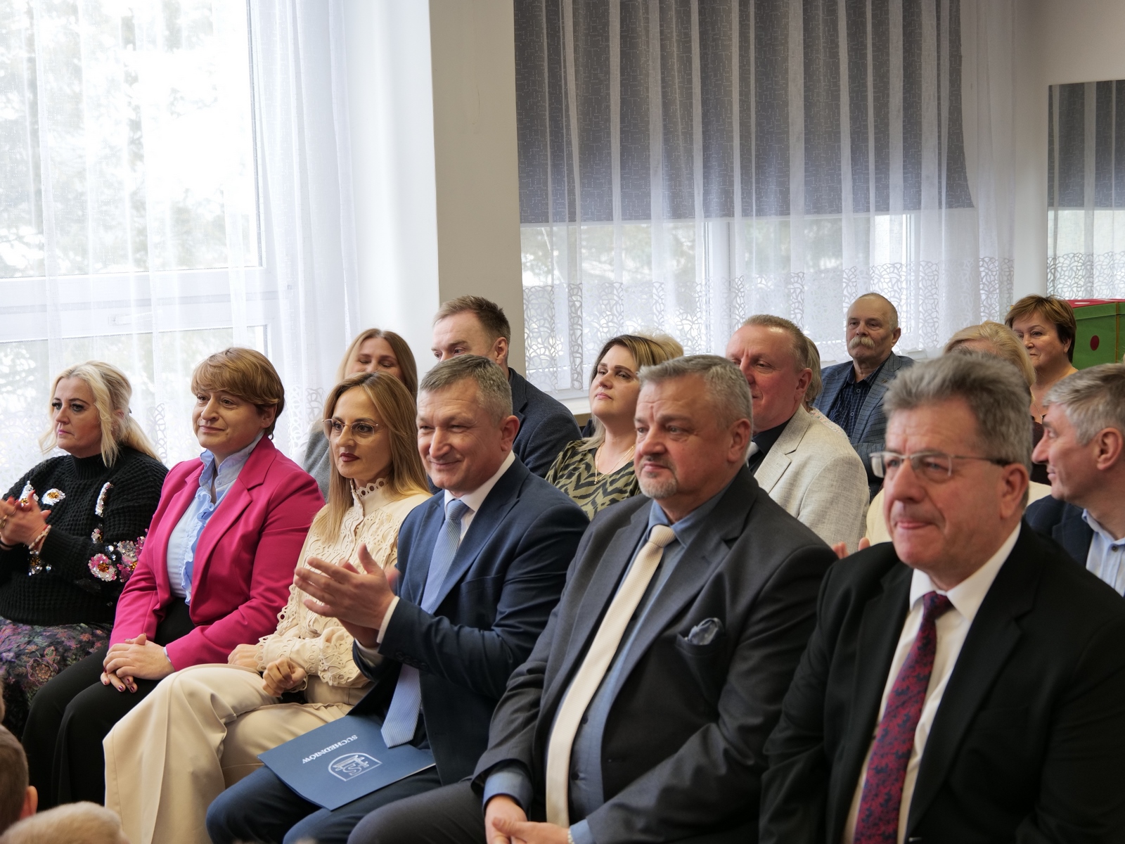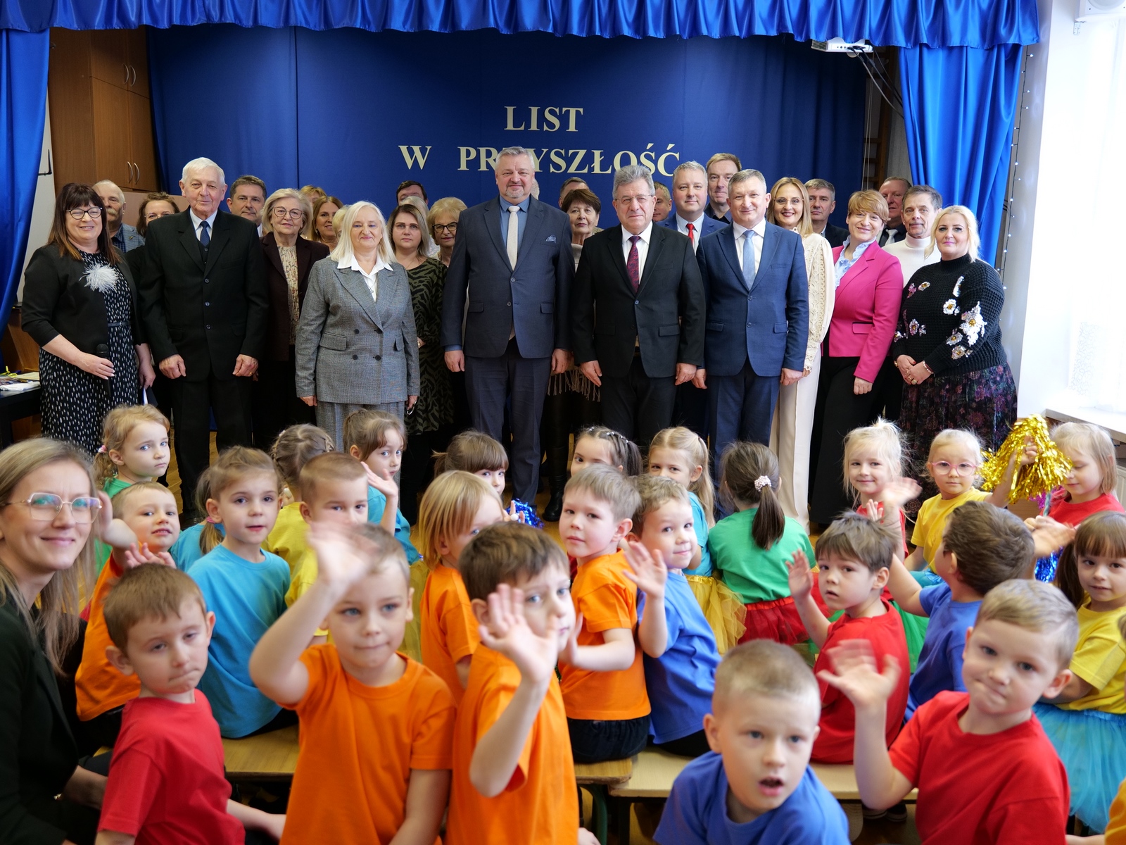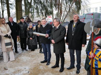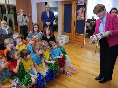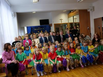 Przybyłych powitały dyrektor placówki Grażyna Milanowicz i pani Magdalena Biskup. Wśród gości byli: wojewoda Józef Bryk, dyrektor Wydziału Infrastruktury i Rozwoju ŚUW w Kielcach Tomasz Łosak, burmistrz Dariusz Miernik, radni rady miejskiej z wiceprzewodniczącymi Anną Salwą i Marcinem Pałacem, sekretarz miasta Renata Sidor, skarbnik Dorota Dyka, naczelnik Wydziału Organizacyjnego magistratu Anna Andrzejewska-Korytowska, przedstawiciele Rady Seniorów z Urszulą Sułek oraz reprezentujący wykonawcę, czyli firmę „Hotex” Marek Snopek i Tomasz Snopek, a także kierownik budowy Wiesław Dąbrowski. Nie mogło na takim wydarzeniu zabraknąć przedszkolaków oraz ich wychowawczyń.