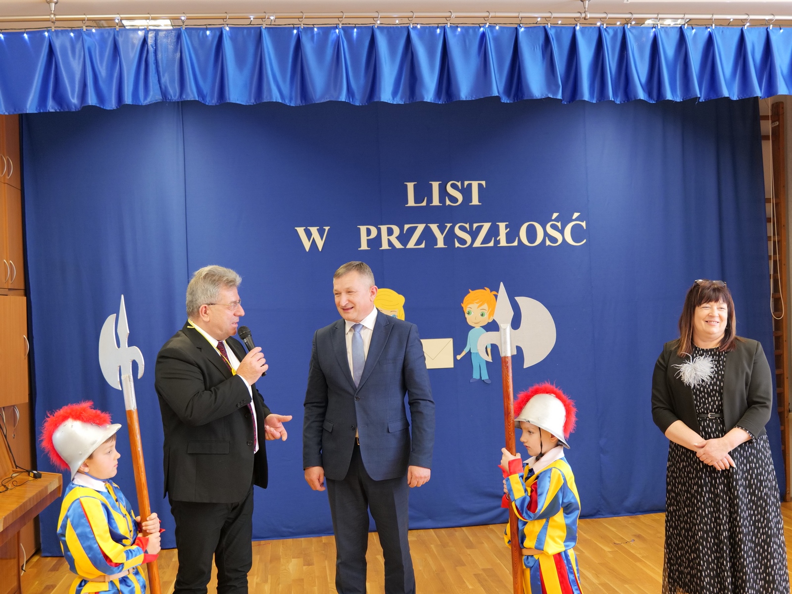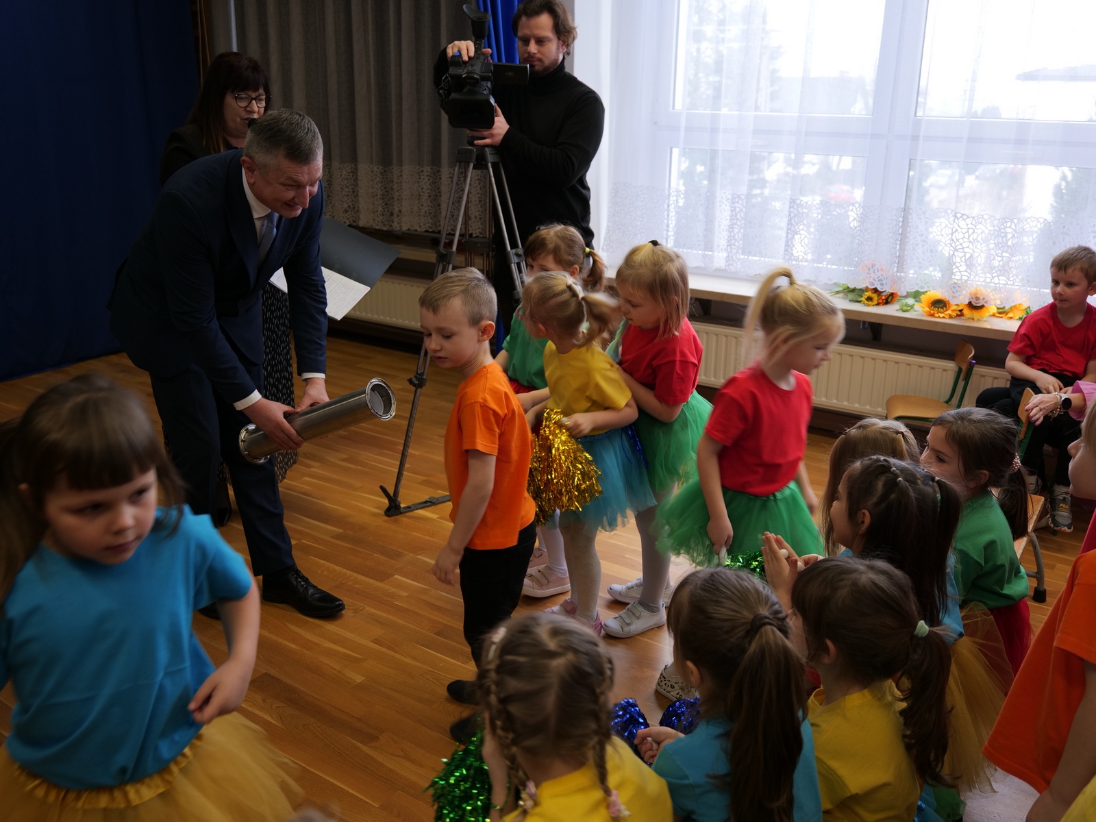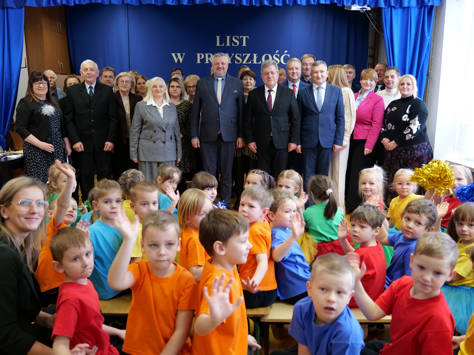 Przybyłych powitały dyrektor placówki Grażyna Milanowicz i pani Magdalena Biskup. Wśród gości byli: wojewoda Józef Bryk, dyrektor Wydziału Infrastruktury i Rozwoju ŚUW w Kielcach Tomasz Łosak, burmistrz Dariusz Miernik, radni rady miejskiej z wiceprzewodniczącymi Anną Salwą i Marcinem Pałacem, sekretarz miasta Renata Sidor, skarbnik Dorota Dyka, naczelnik Wydziału Organizacyjnego magistratu Anna Andrzejewska-Korytowska, przedstawiciele Rady Seniorów z Urszulą Sułek oraz reprezentujący wykonawcę, czyli firmę „Hotex” Marek Snopek i Tomasz Snopek, a także kierownik budowy Wiesław Dąbrowski. Nie mogło na takim wydarzeniu zabraknąć przedszkolaków oraz ich wychowawczyń.