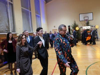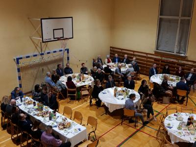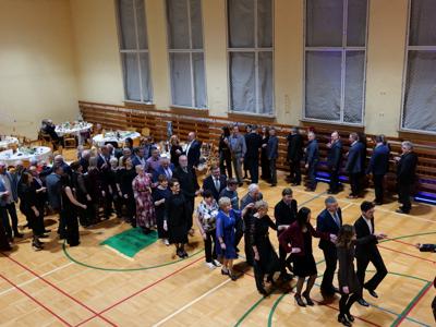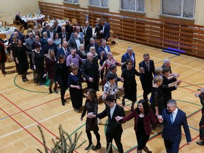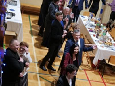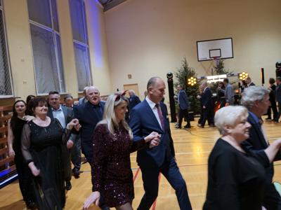 Bal rozpoczął się od wspólnej modlitwy, którą poprowadził ksiądz proboszcz Sławomir Molendowski. Następnie proboszcz wspólnie z burmistrzem Dariuszem Miernikiem powitali przybyłych na wydarzenie, a wieczór muzycznie poprowadził wodzirej Krzysztof Jędrzejewicz. Rozpoczęto Polonezem, a pierwsze pary poprowadzili Magdalena Miernik i ks. Kacper Piotrowski-Stajniak oraz burmistrz z małżonką Darią.