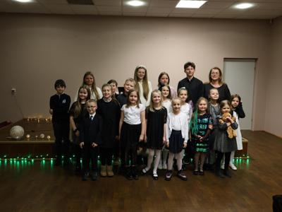 Publiczność miała okazję usłyszeć piękne interpretacje w wykonaniu solistów, duetów oraz trio. Emocje, talent i muzyczna wrażliwość młodych artystów sprawiły, że był to niezapomniany wieczór pełen dźwięków i wzruszeń. Wystąpili: Zosia Odelska, Pola Barsegian, Kaja Gawlińska, Ala Kostępska, Julia Eldursi, Marcelina Kraska, Ala Jaworska z mamą, Aurelia Harenza, Leon Bernatek, Aurelia Rędzia, Lena Rymarczyk, Ala Prońko z mamą i bratem, Piotr Pałgan, Lena Ziewiec, Nela Gawlińska, Nina Kraska, Kuba Markiewicz i Tymon Cholewa.