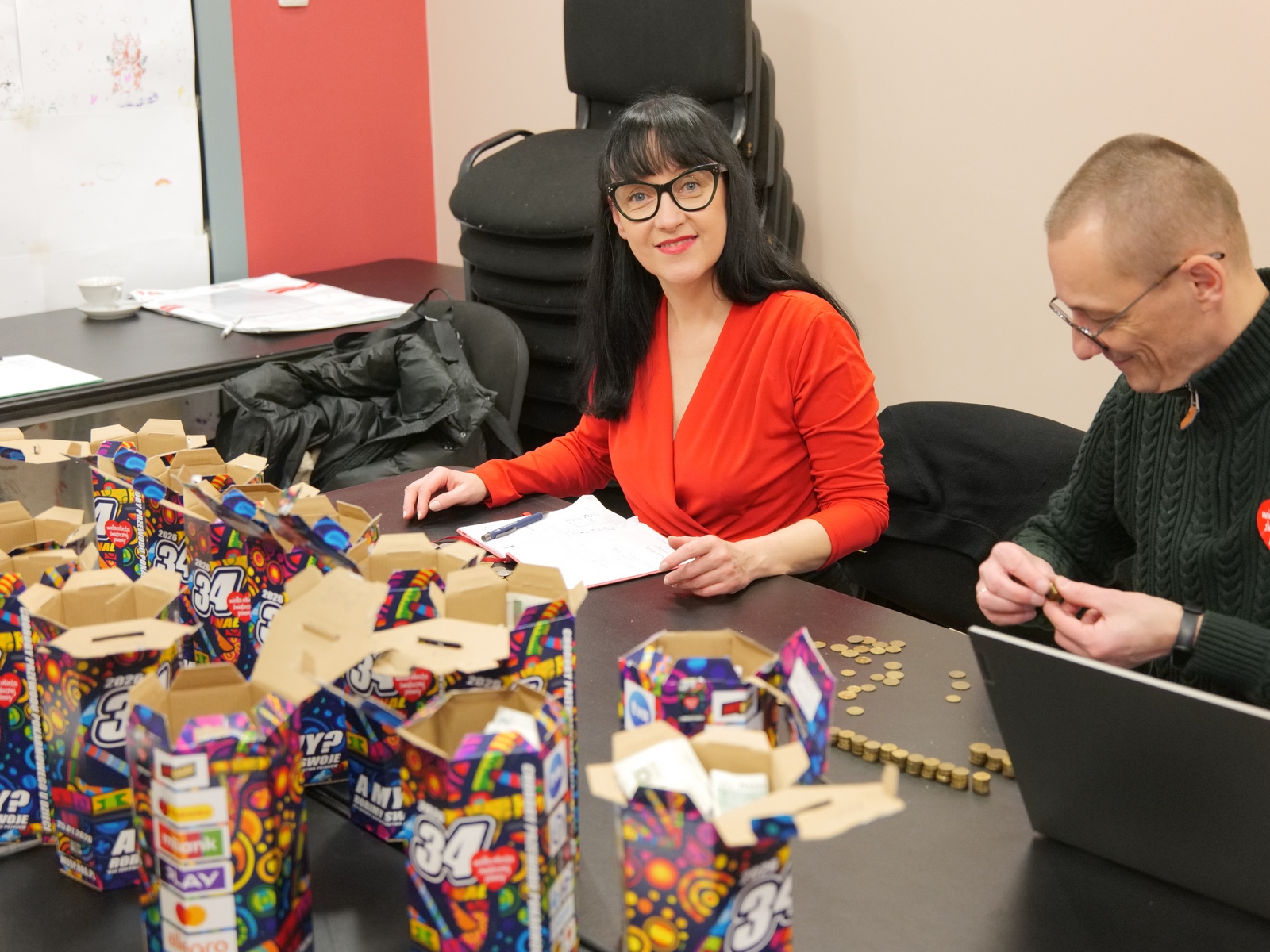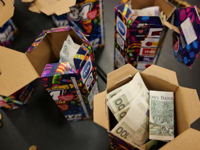 Nasza stała ekipa licząca pieniądze w dniu Finału, czyli Anna Świtek, Anita Sołkiewicz, Izabela Wędrychowska, Maciej Obarski.